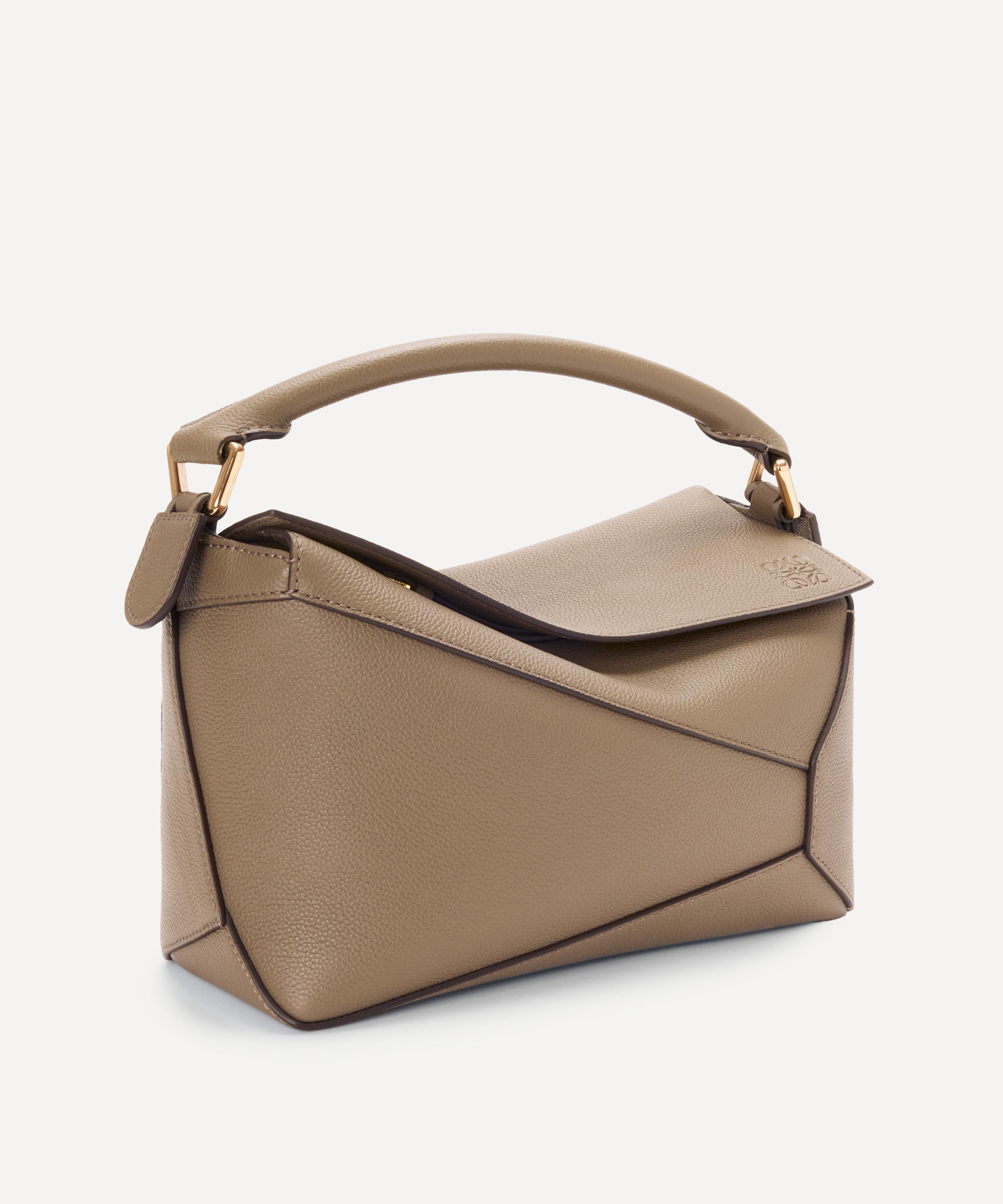 The iconic Puzzle top handle bag from Spanish fashion house Loewe showcases an innovative folding design that can be adapted for any outfit or occasion.