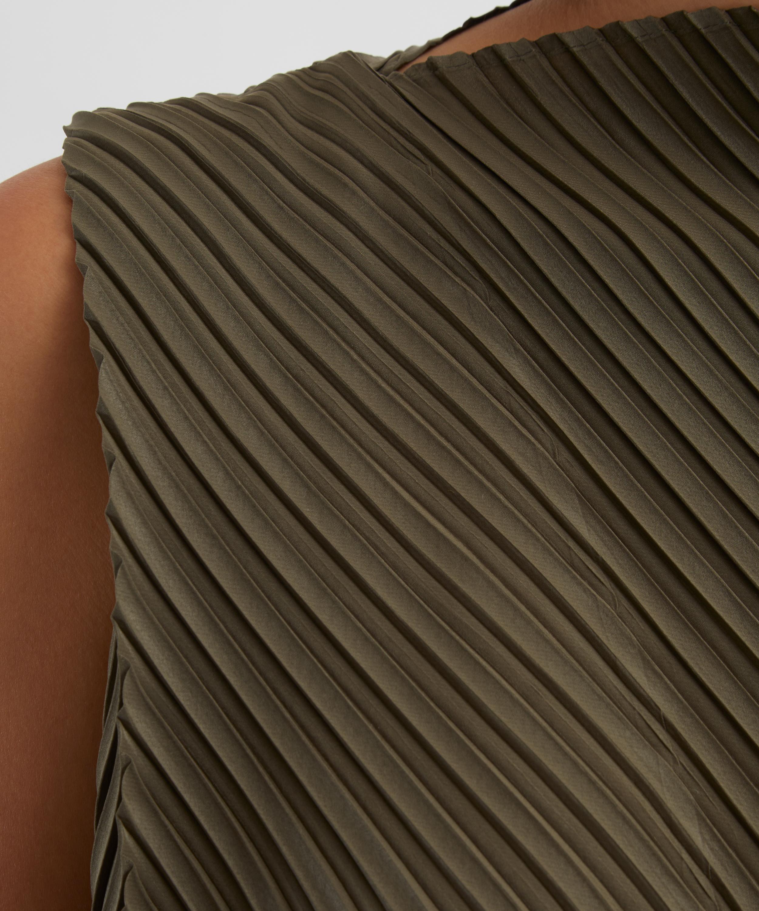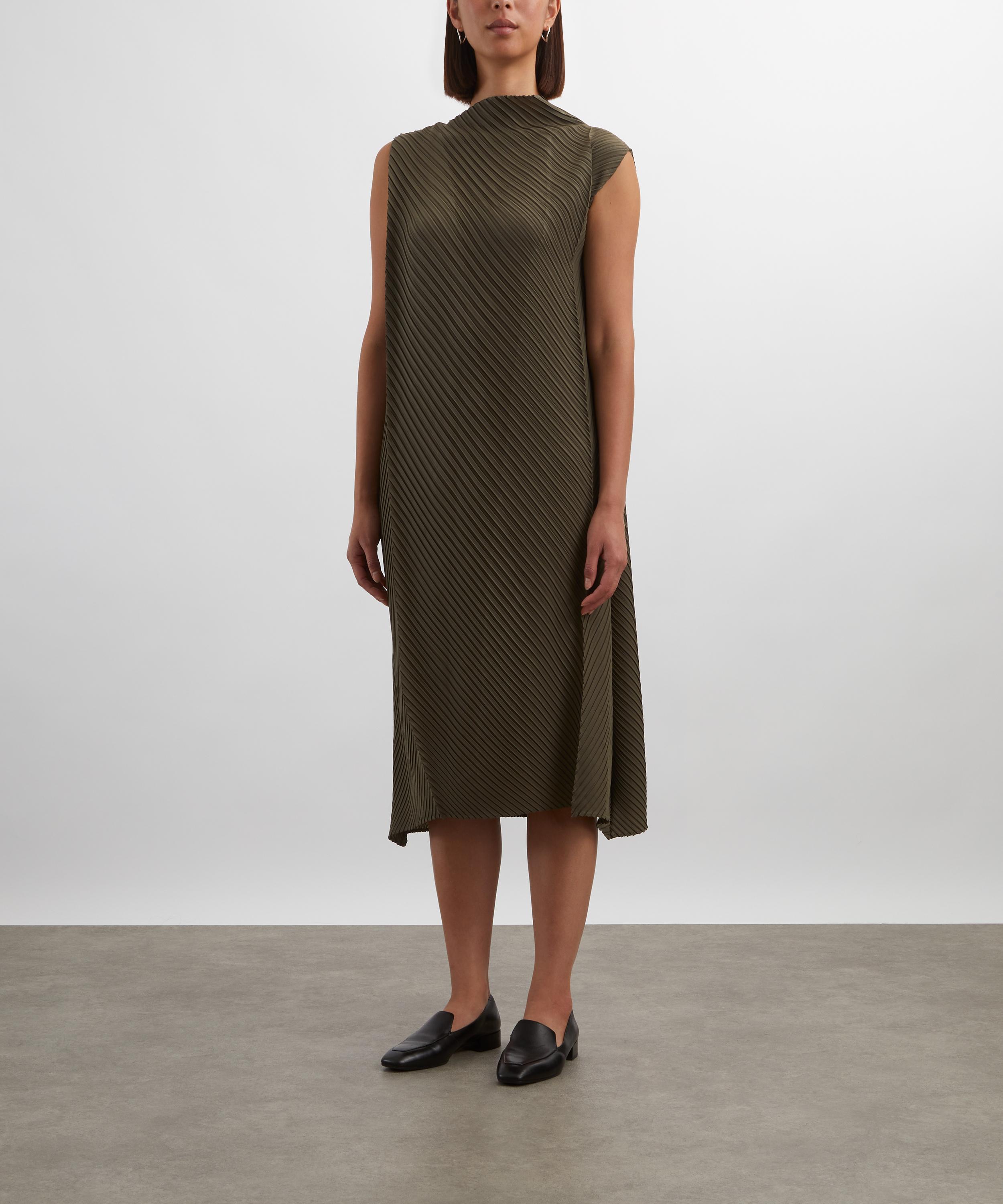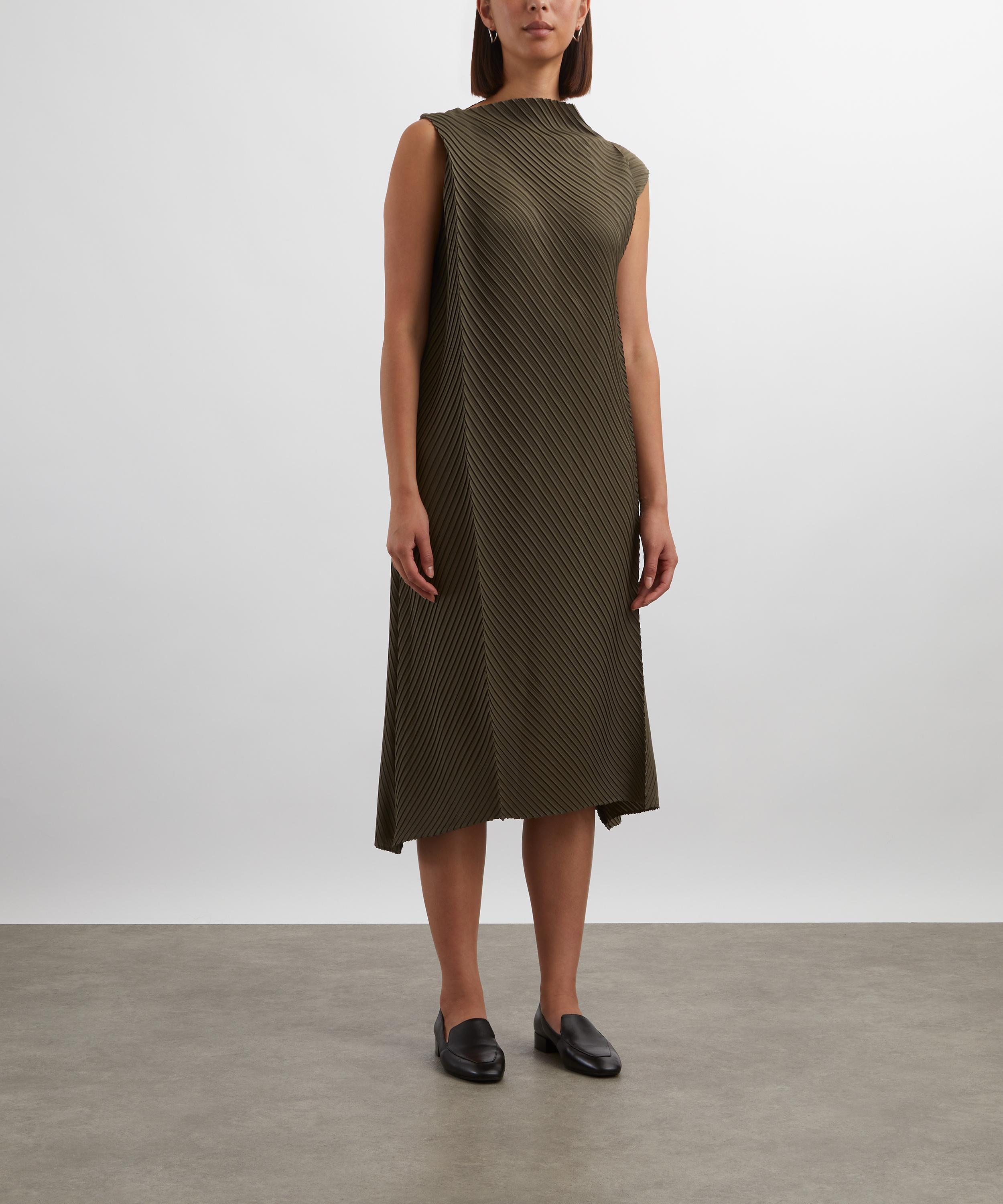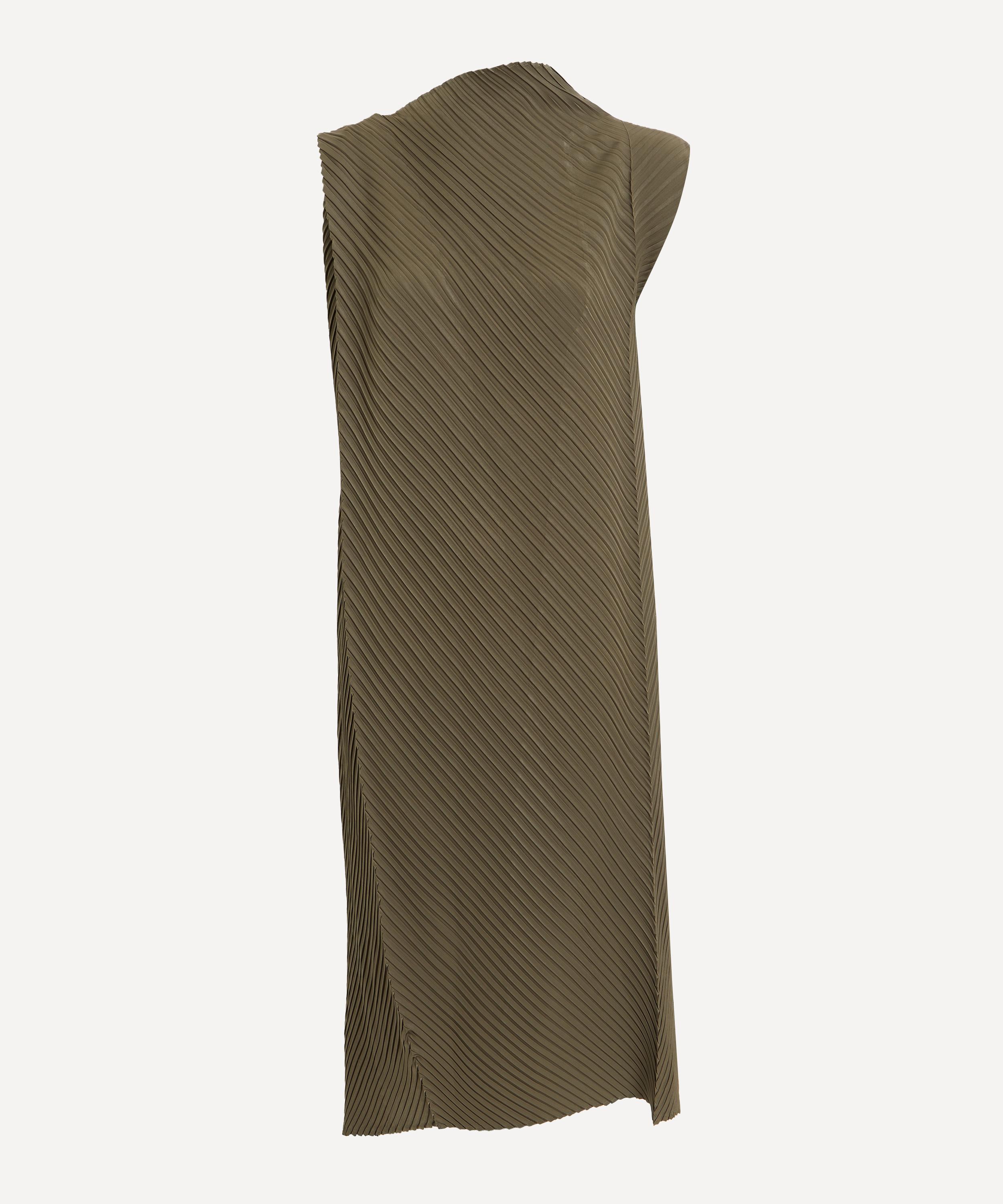 Issey Miyake’s conceptual approach brings a sculptural aesthetic to everyday dressing – reflected in the SOFT FOLD PLEATS Khaki Dress.