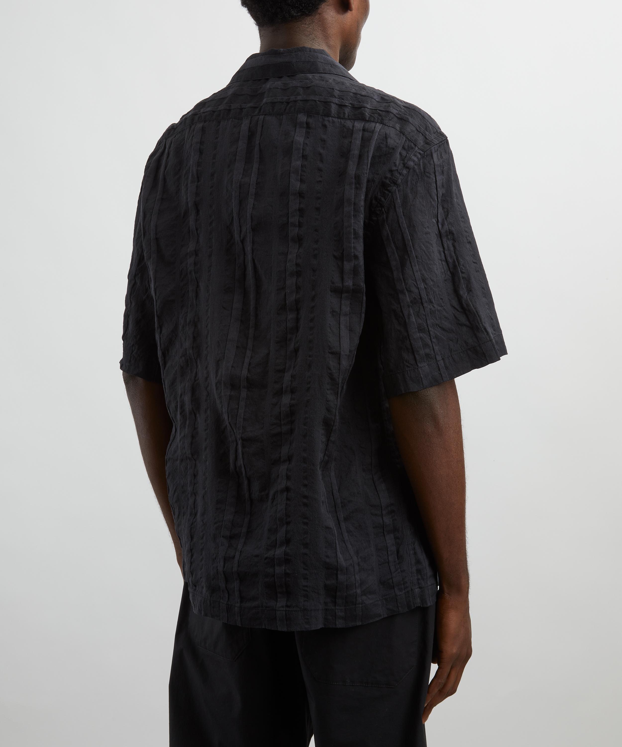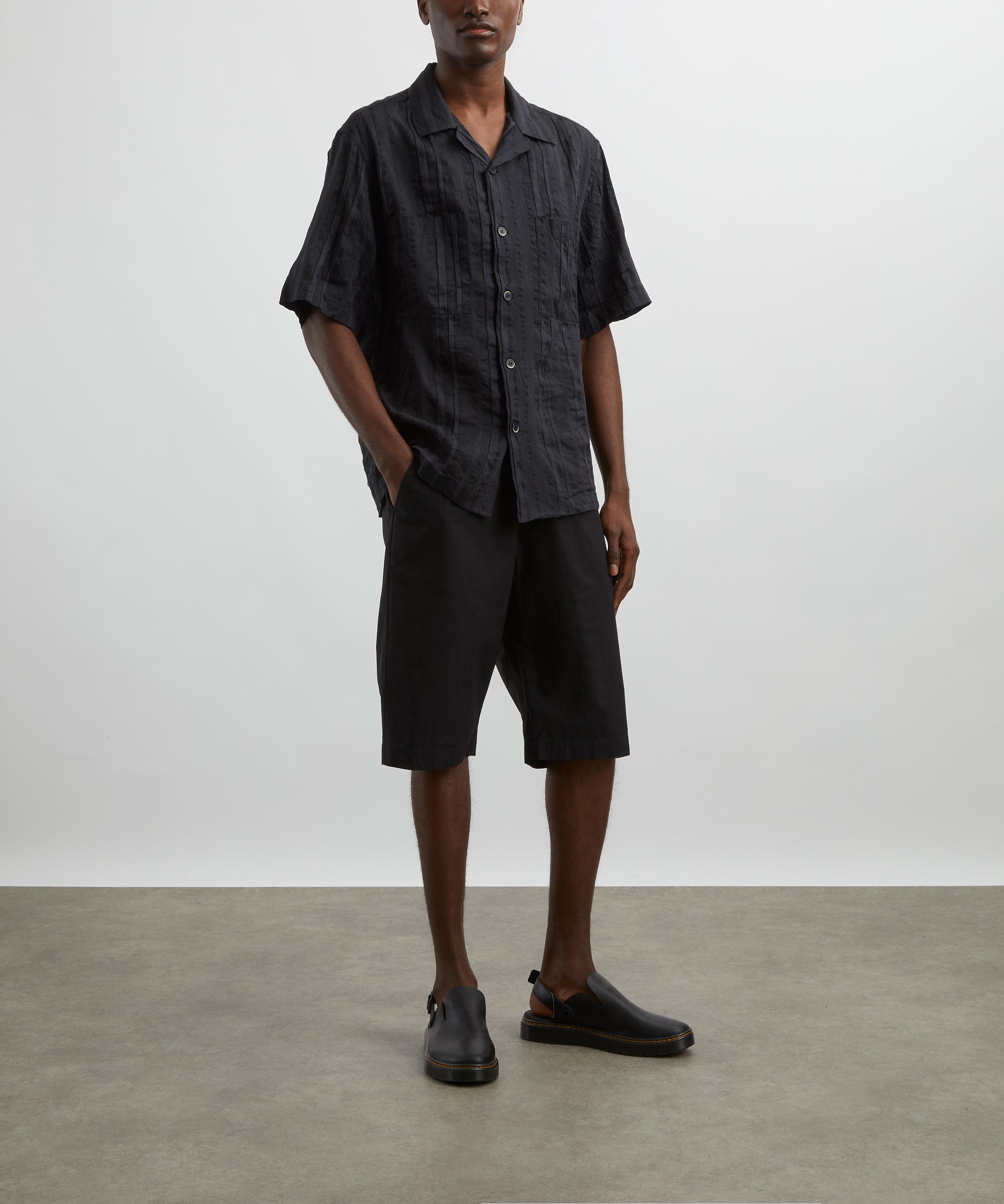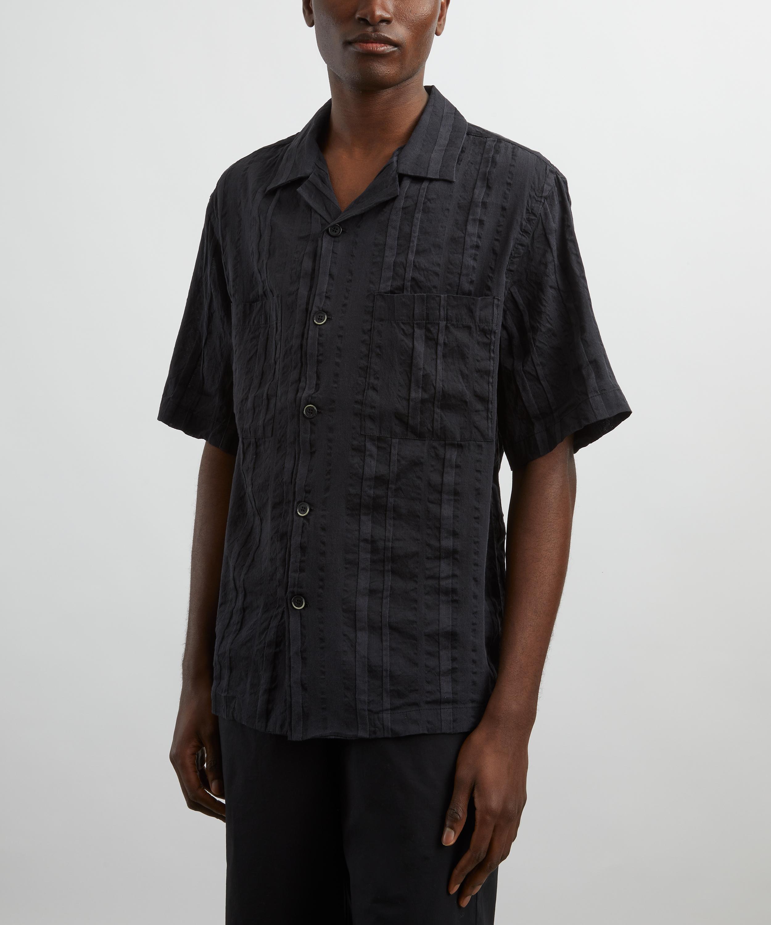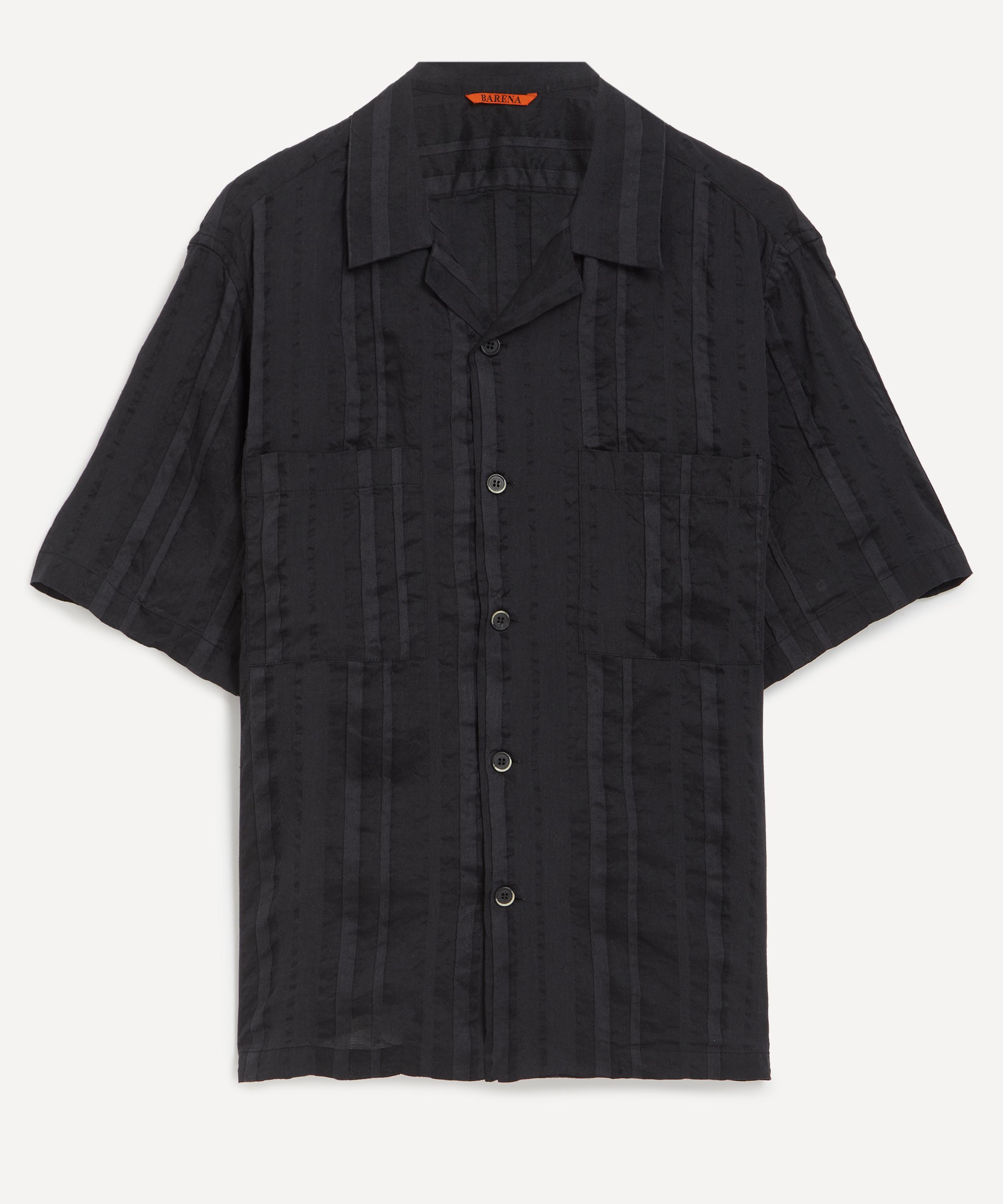 Cut from a striped linen and cotton blend for a relaxed, boxy fit, the Solan shirt adds an effortless touch of refinement to your casual wardrobe during the warmer months. With its camp collar, chest patch pockets and short sleeves, it exudes a laid-back yet polished look.