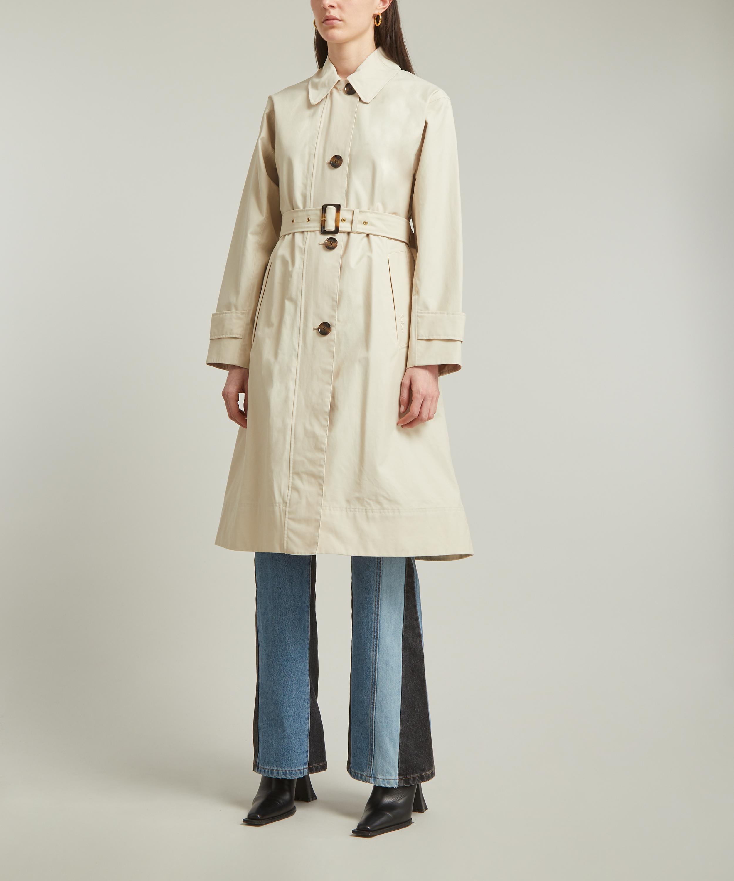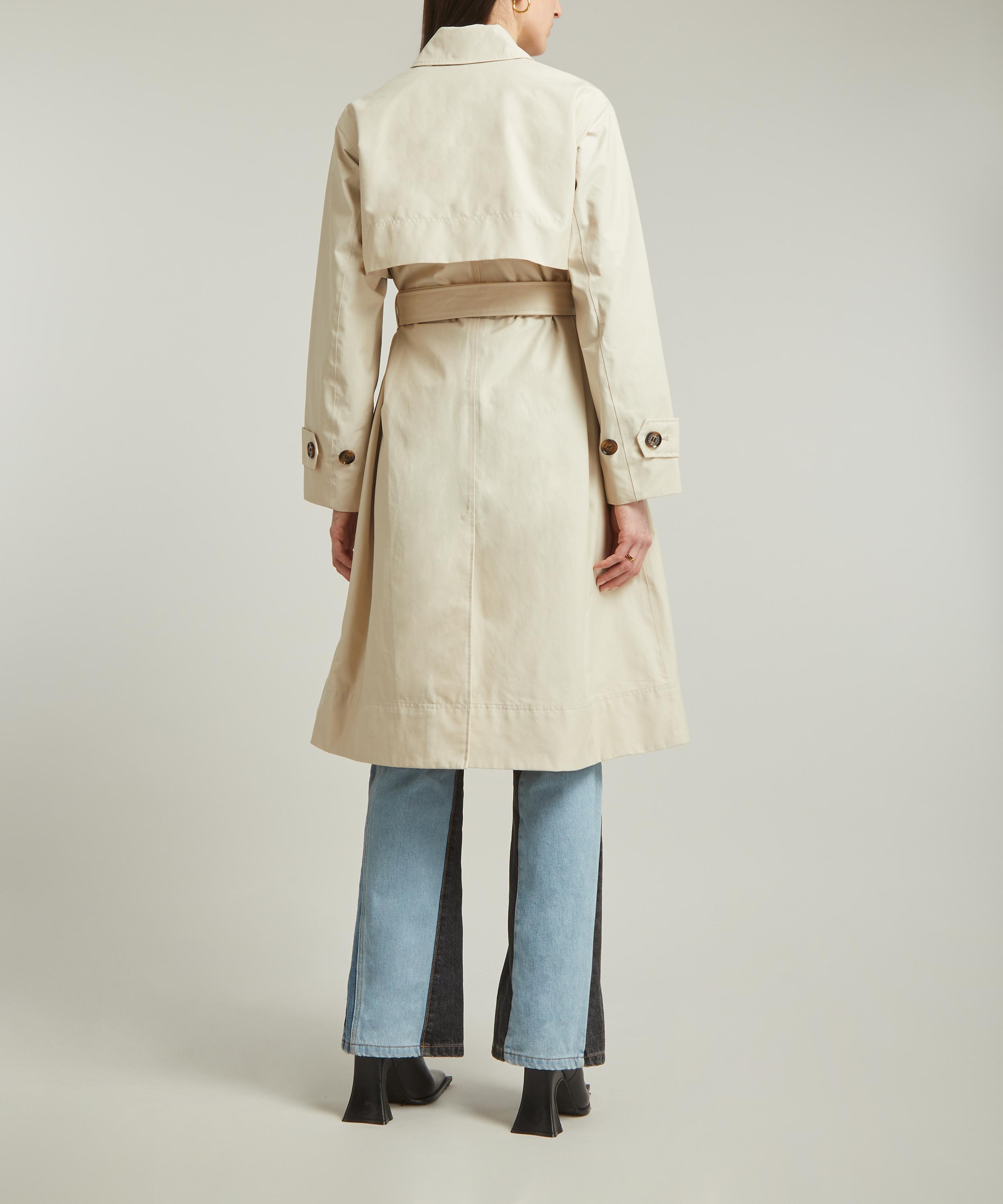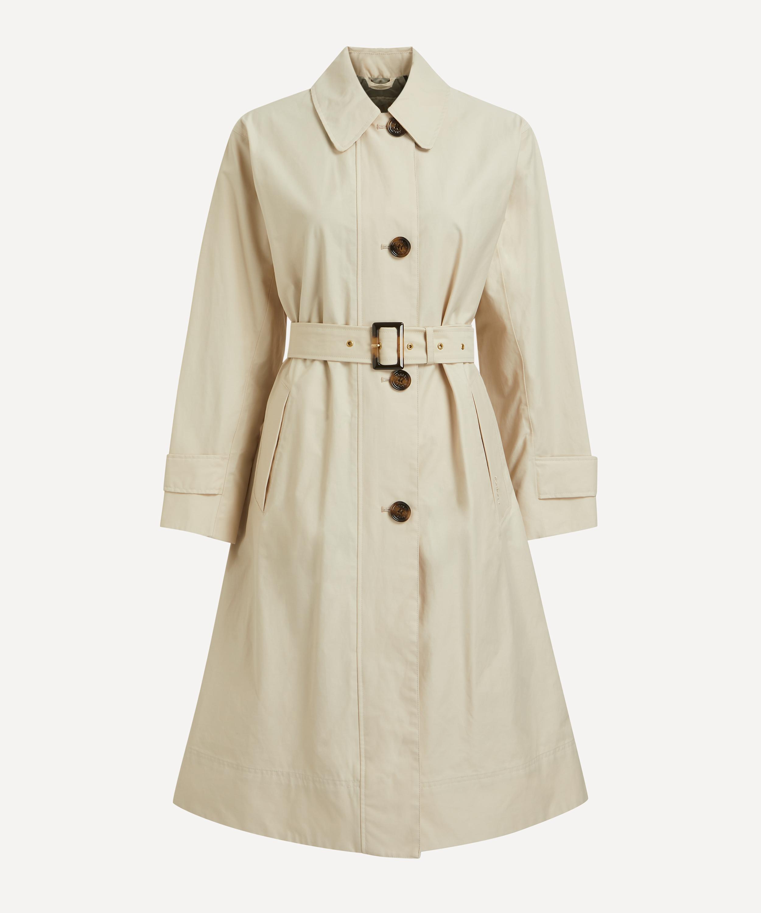A chic and versatile addition to your outerwear edit, this relaxed, trench-style coat balances fashion and functionality with its time-honoured details, including a belted waist, cuffed sleeves, and welt pockets. Finished with tortoiseshell fittings for a premium look, its showerproof fabric and storm flap provide extra protection from the elements.
