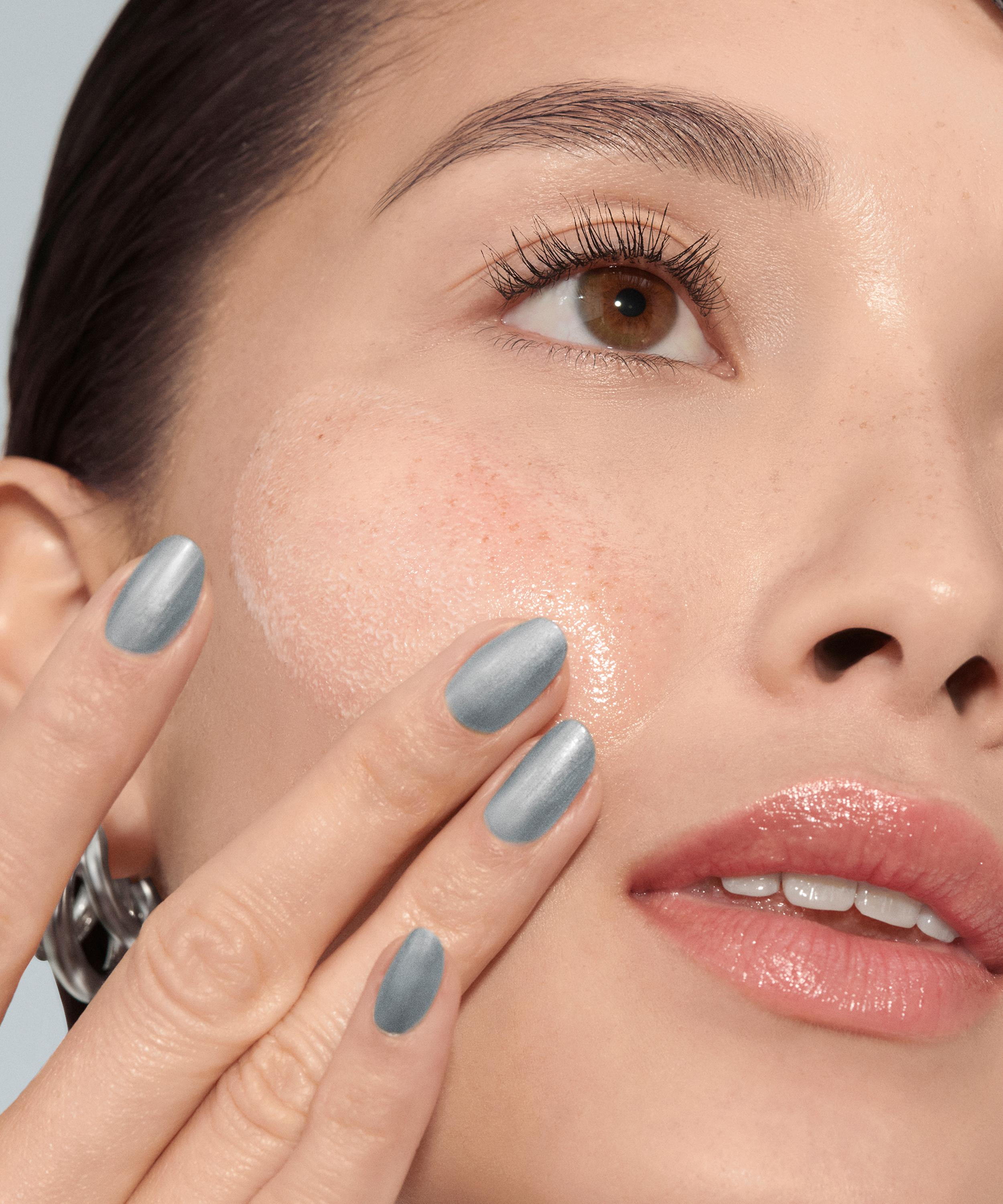 Massage onto dry skin with dry hands, starting at cheeks, then nose, forehead, temples, jawline, chin, and upper lip. Gently sweep across closed eyes and lips. Wet hands, then massage again to emulsify. Rinse and pat dry.