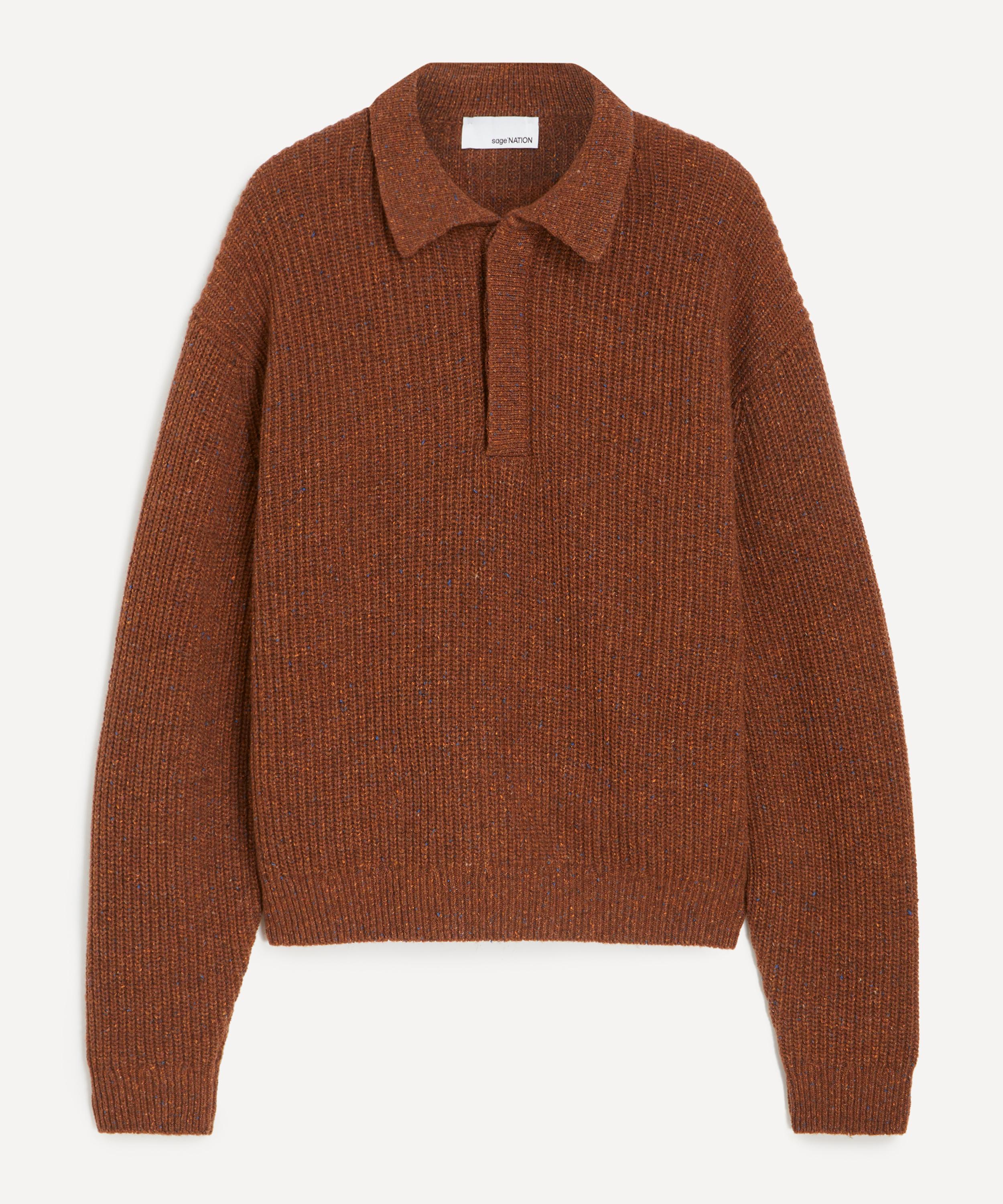 The Speckled Rust Polo Knit from SAGE NATION blends the brand’s Japanese and British heritage, merging precision craftsmanship with contemporary design.