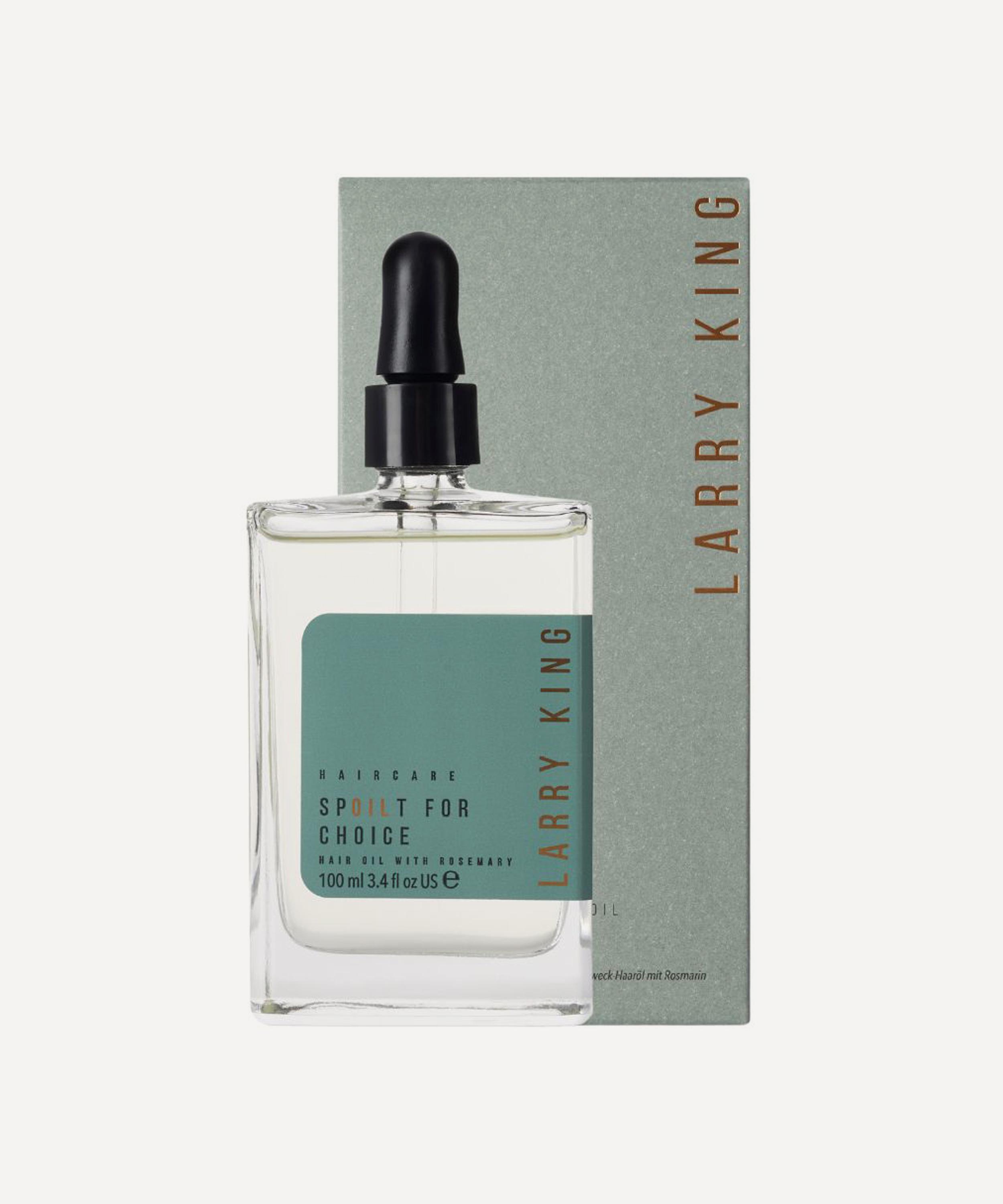 The Spoilt For Choice Hair Oil from Larry King Hair is set to earn its' place on any vanity or bathroom shelf, delivering a versatile, multi-tasking formula that will transform your hair care regime. Replete with deeply nourishing botanical oils, including rosemary, jojoba and argan, this lavish oil helps strengthen and hydrate hair to leave you with sumptuously soft tresses - use as an intensely conditioning mask or as part of your daily styling routine to maintain health and shine.