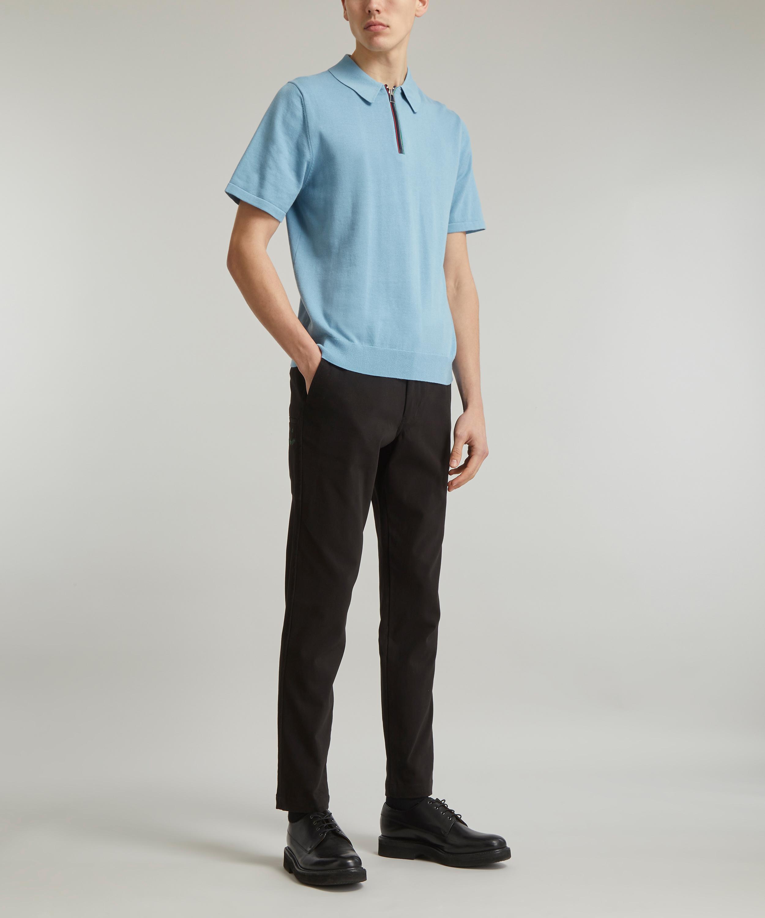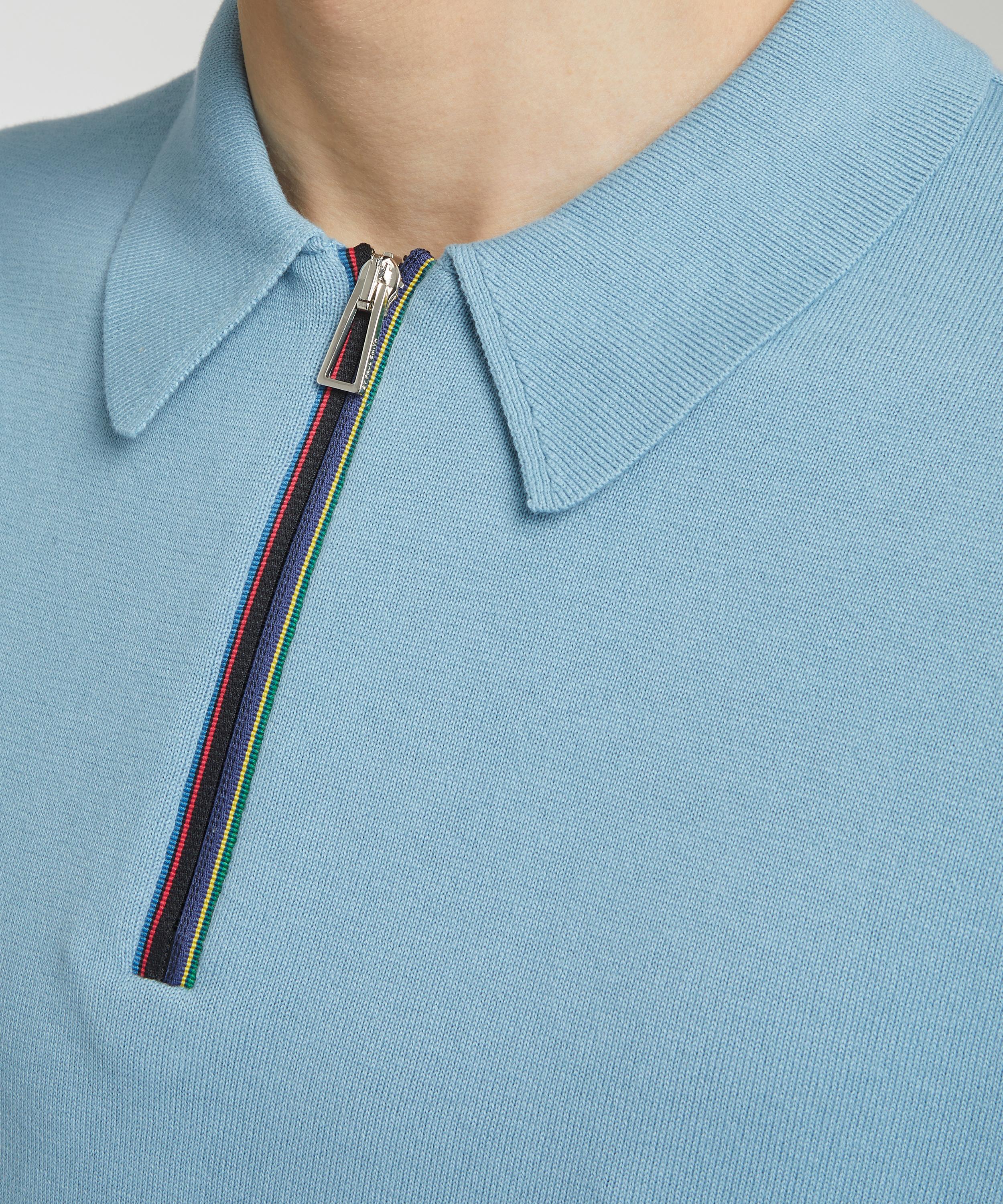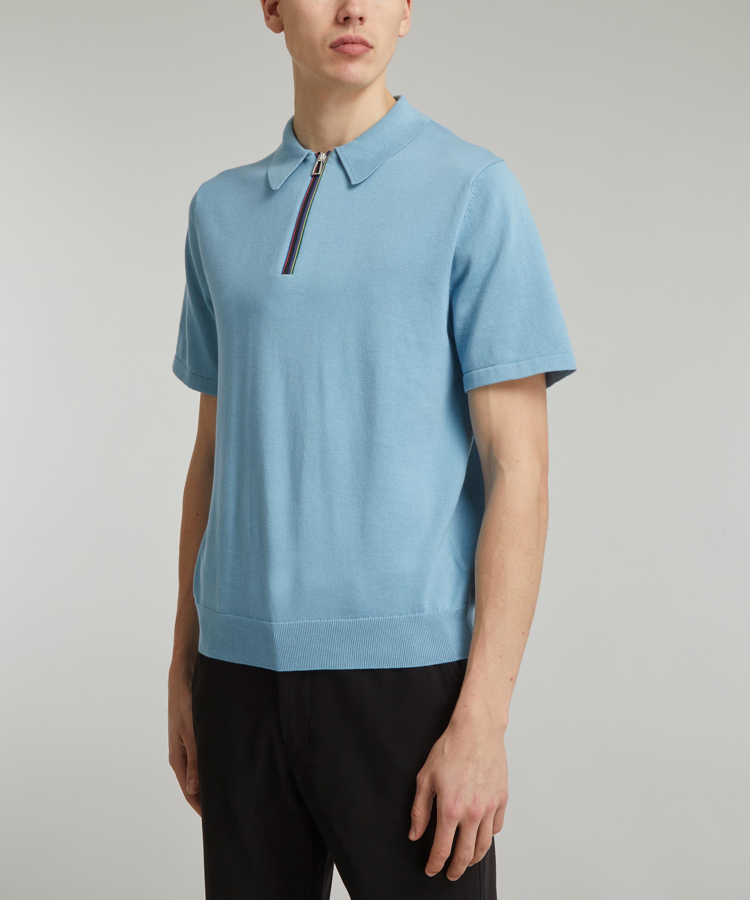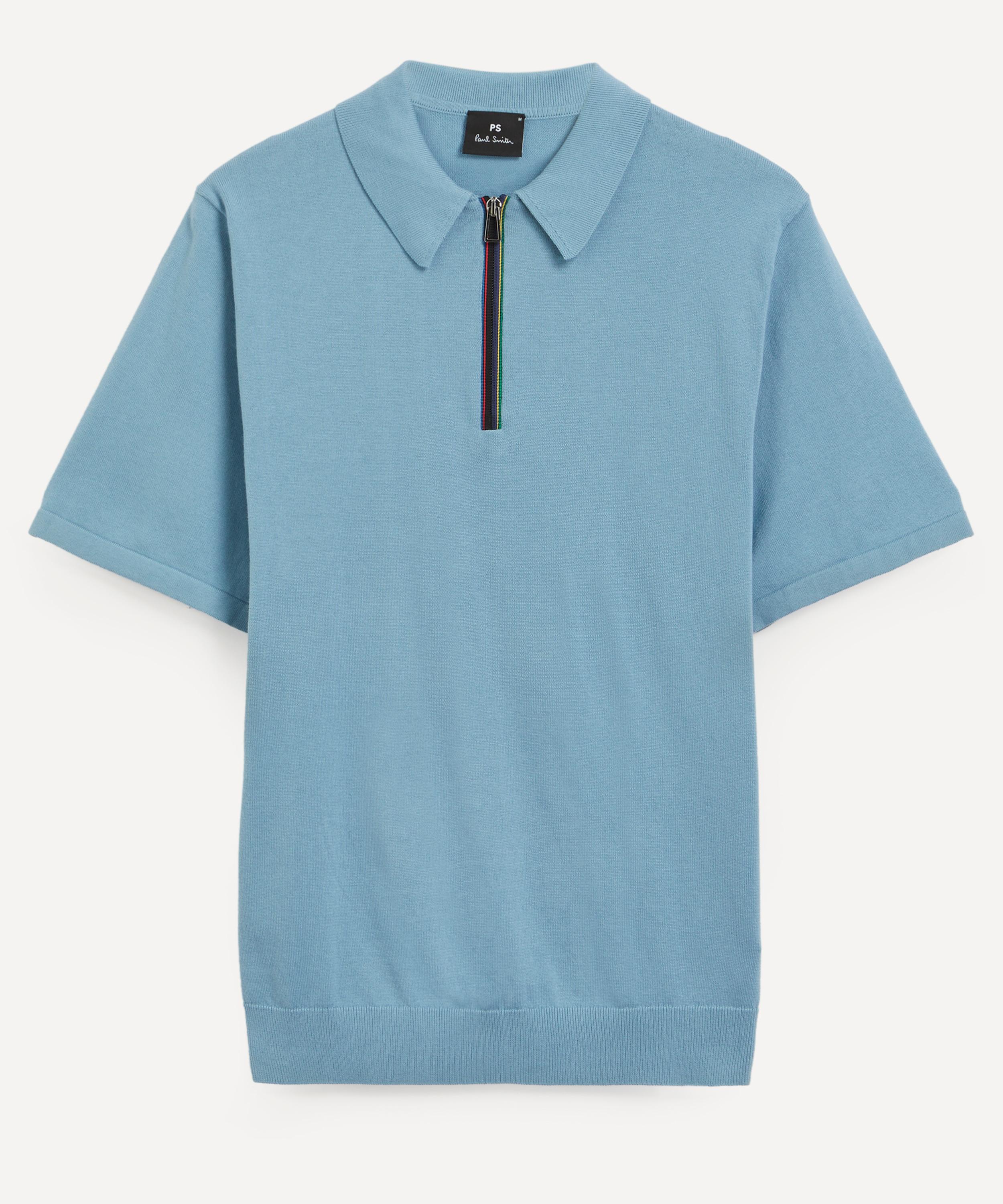 Bring quintessentially British style to your new season edit with this versatile, short-sleeve polo shirt by PS Paul Smith. Knitted from organic cotton, this pastel-blue polo has a spread collar and a zip-neck closure featuring a signature ‘Sports Stripe’ placket.