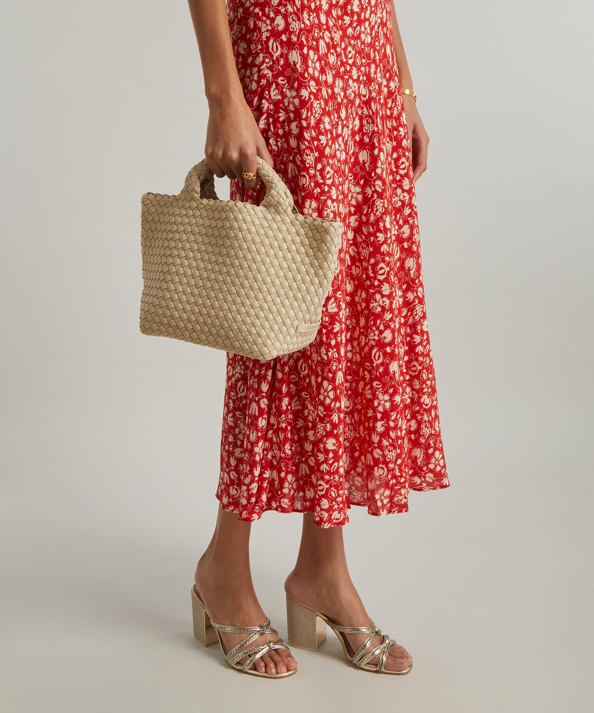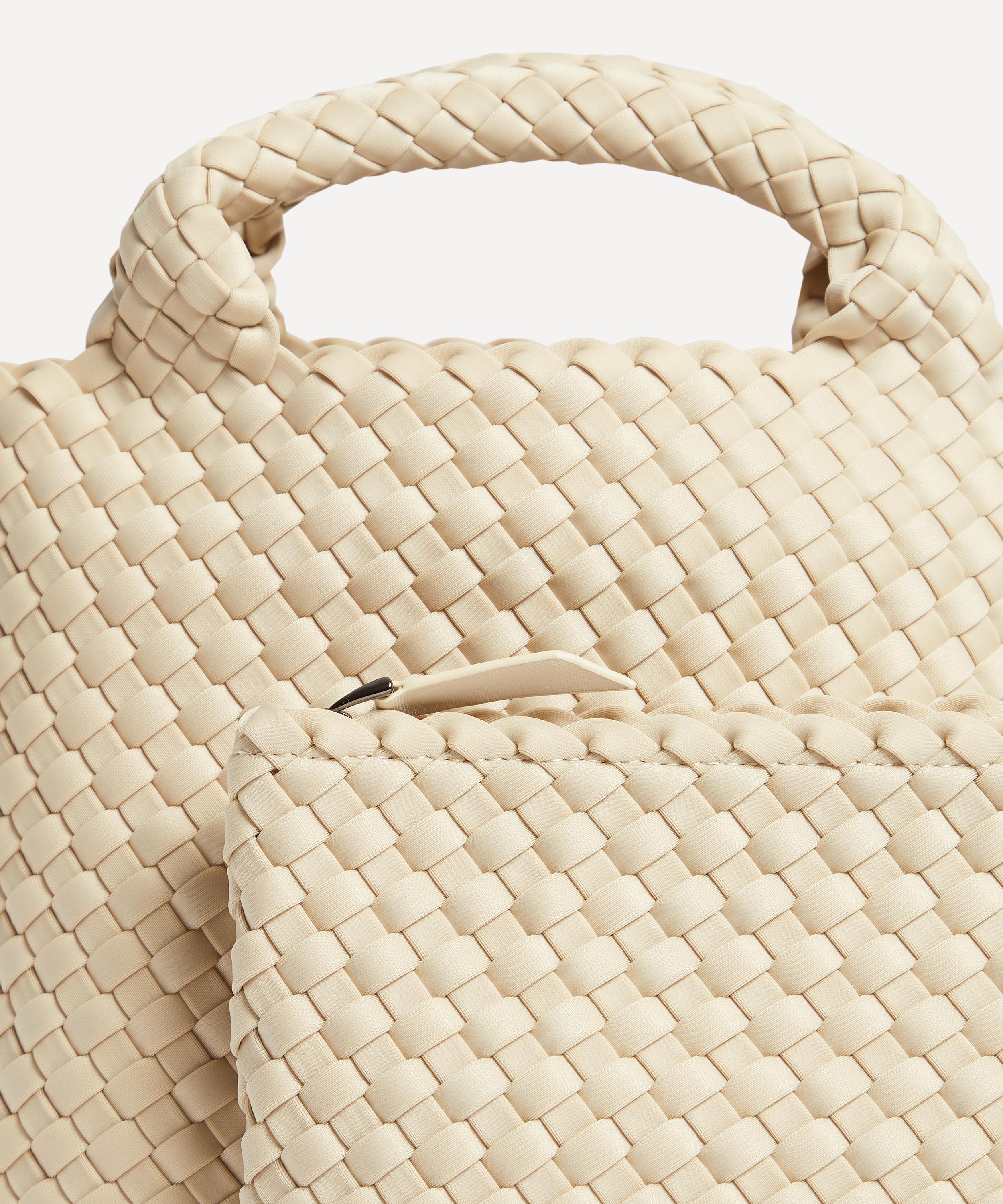 Boasting Naghedi’s first and bestselling design, the St.Barths mini tote bag is the durable and timeless staple everyone needs in their collection. Crafted from neoprene fabric by skilled weavers, this bag features a structured base with a spacious main compartment and a detachable zipped pouch to keep essentials handy and secure. Complete with two top handles and detachable cross-body strap, it’s set to become your new everyday companion, for this season and beyond.