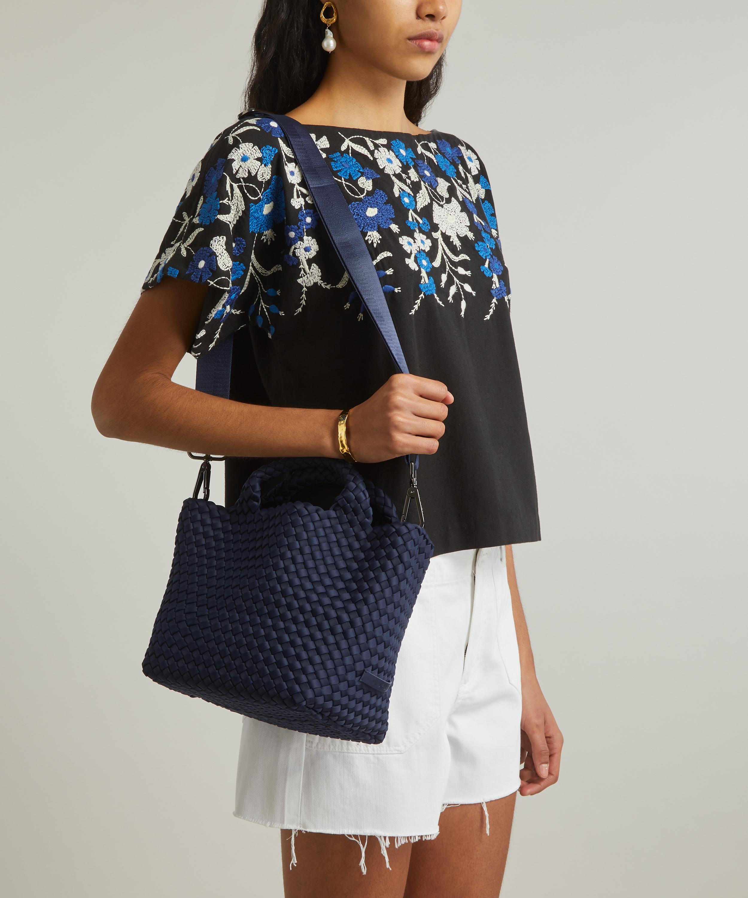 Boasting Naghedi’s first and bestselling design, the St.Barths mini tote bag is the durable and timeless staple everyone needs in their collection. Crafted from neoprene fabric by skilled weavers, this bag features a structured base with a spacious main compartment and a detachable zipped pouch to keep essentials handy and secure. Complete with two top handles and detachable cross-body strap, it’s set to become your new everyday companion, for this season and beyond.