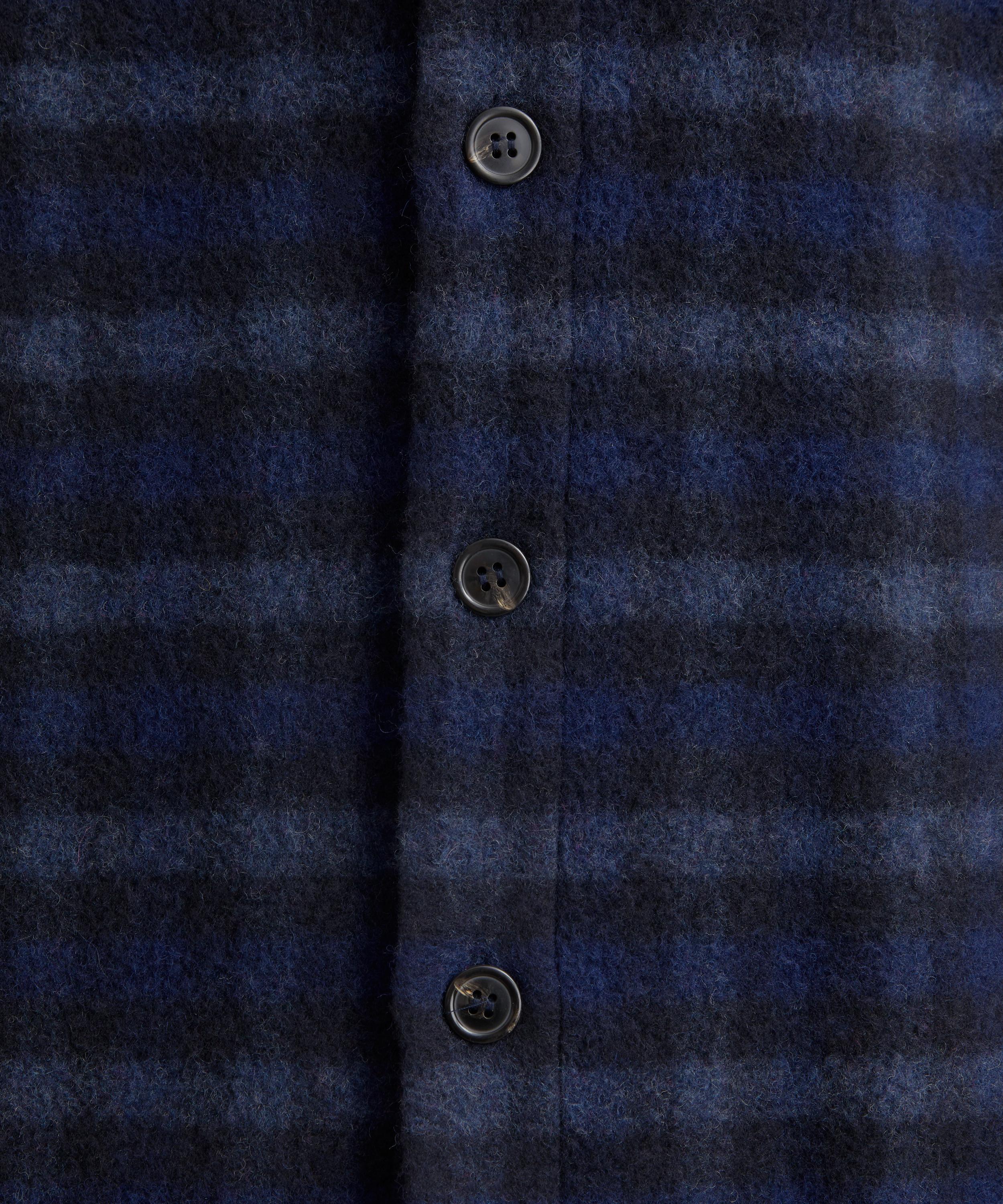 Crafted from pure wool, this navy plaid shirt is cut for a straight, slightly relaxed fit, and features a classic collar, chest pocket, and a faux-horn button placket.