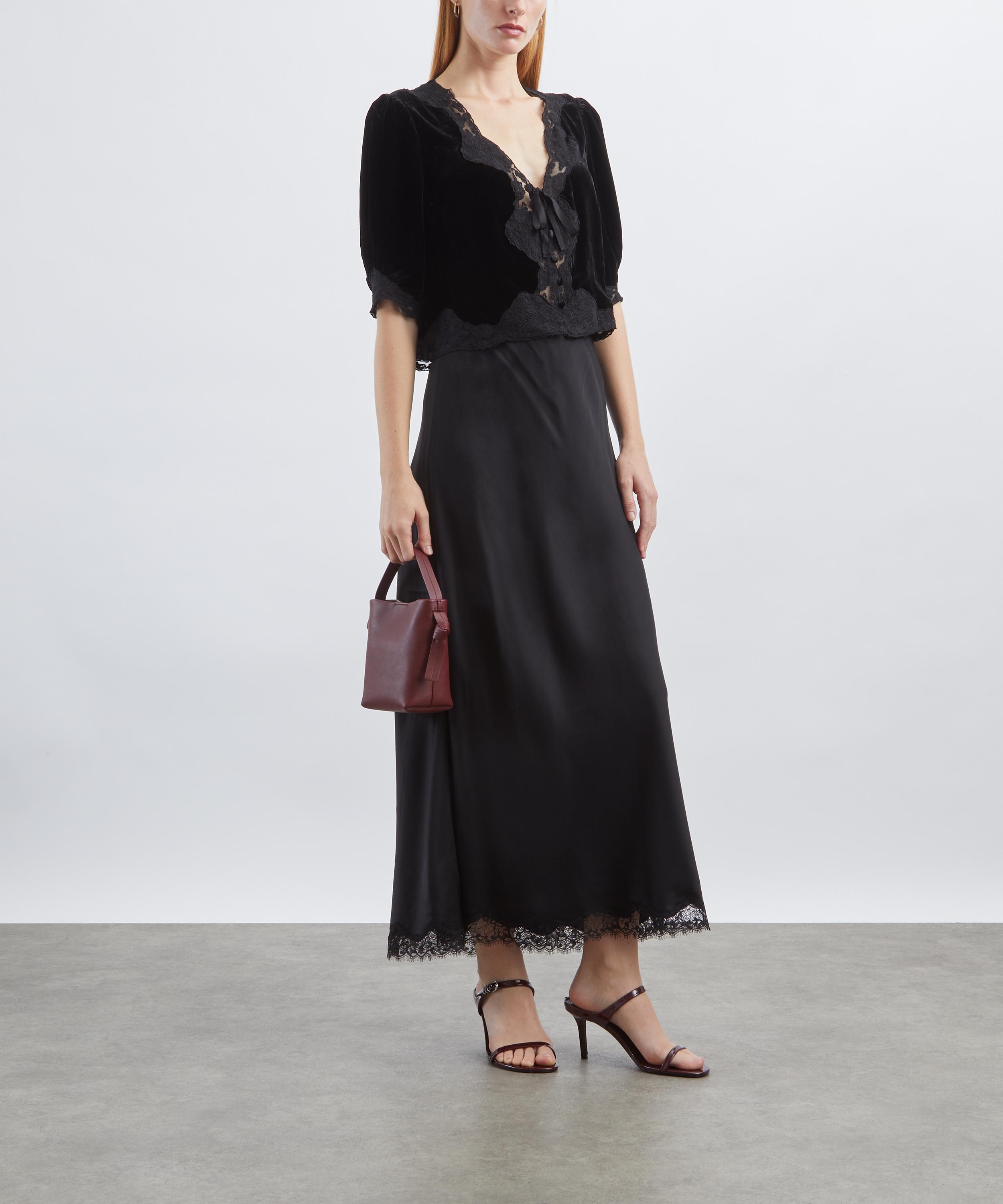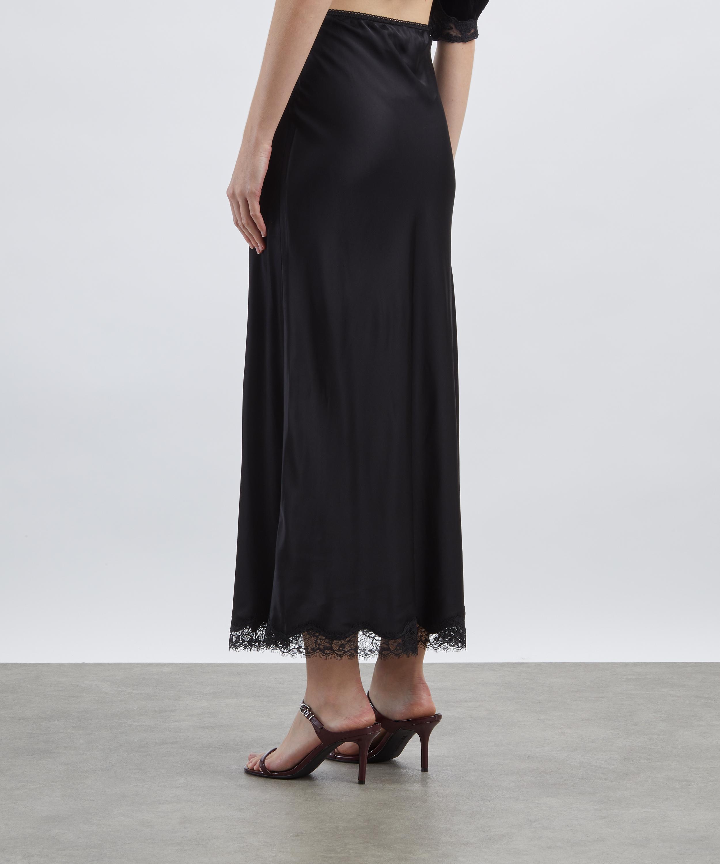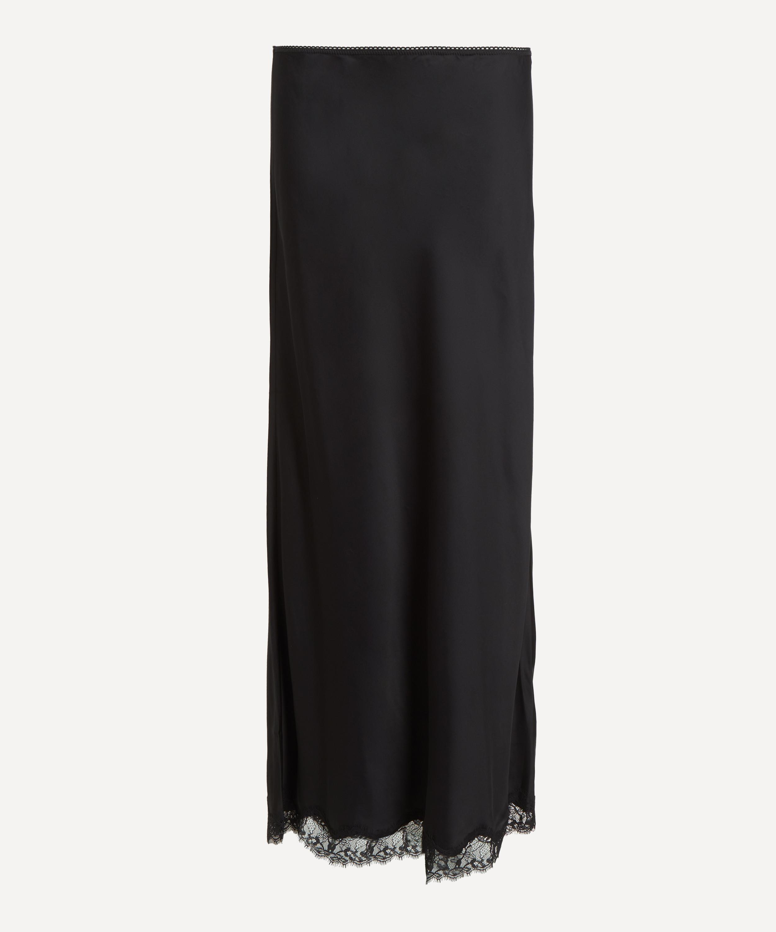 A timeless classic, this satin slip skirt is cut on the bias for a naturally flattering drape. Falling to a midi-length silhouette, it features an elasticated waistband and delicate lace trims for an effortlessly feminine finish.