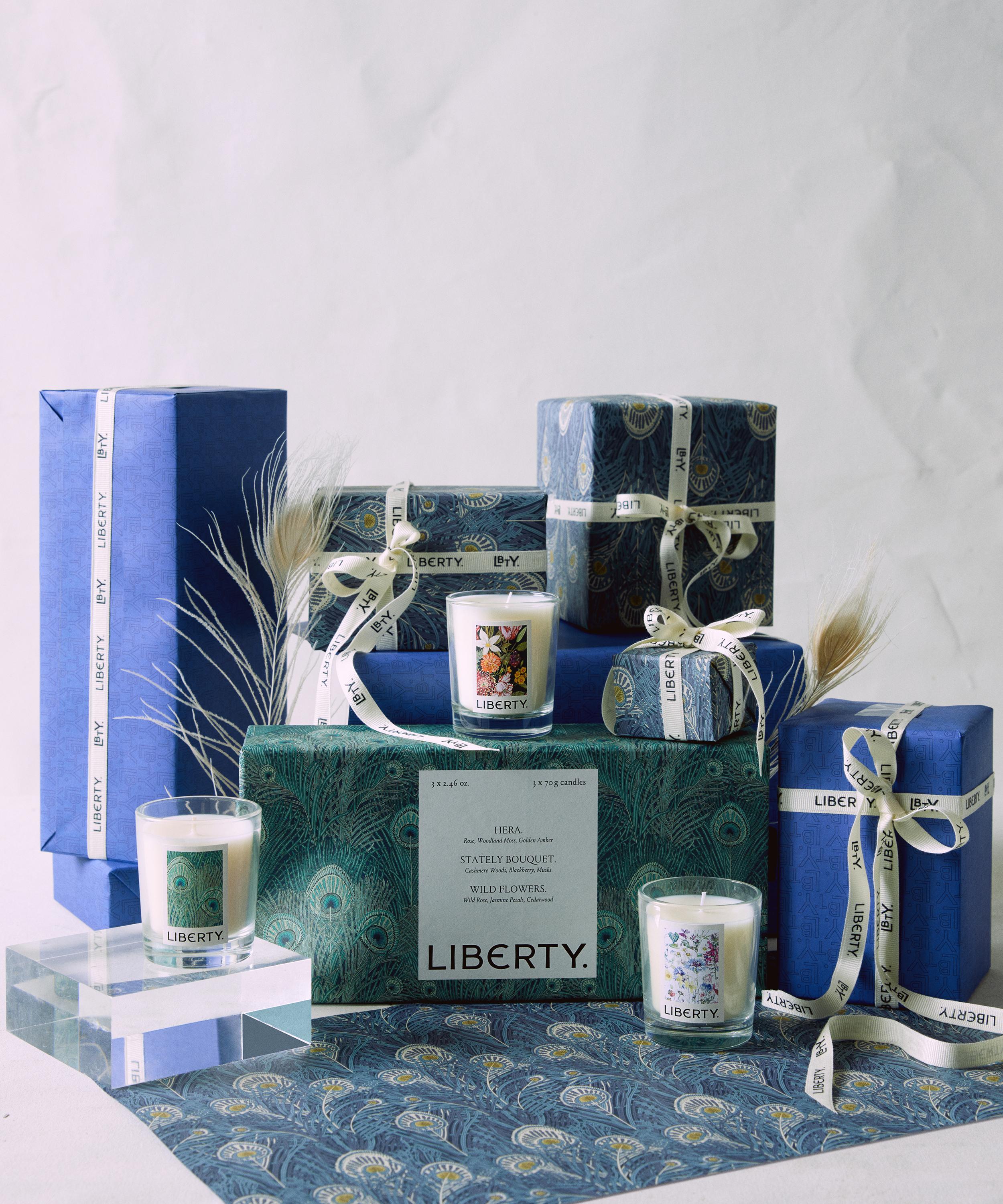 Inspired by the extravagant blooms visible in Stately Bouquet, this inviting fragrance with its base notes of sugared patchouli and cashmere will wrap your guests in a warm fruity glow. Crafted in England with a wax, including soy and coconut, this luxury candle has been hand-poured into a reusable glass vessel and presented in a beautiful box, an ode to the Liberty building itself – perfect for gifting, or for elevating your own mantelscape.