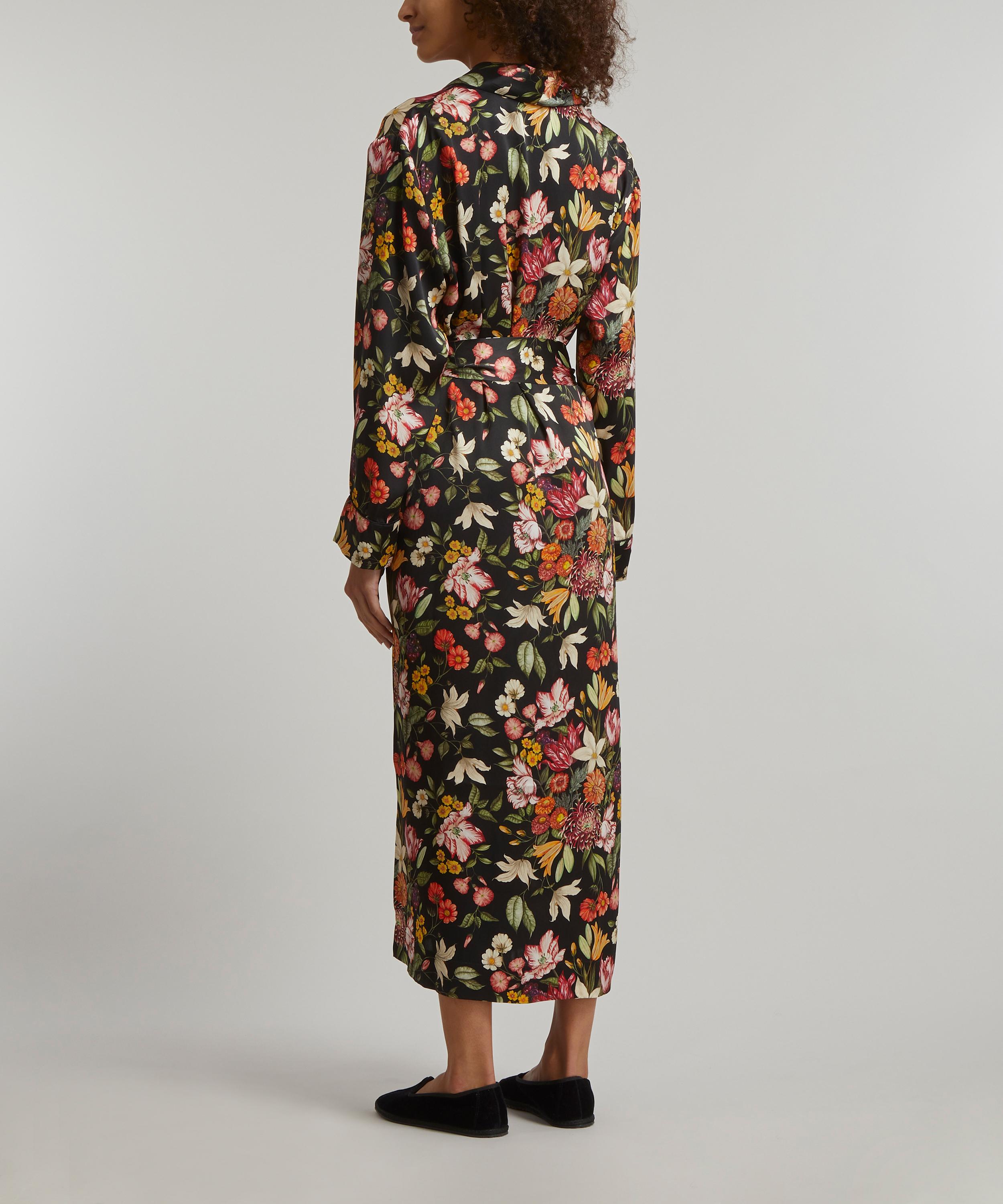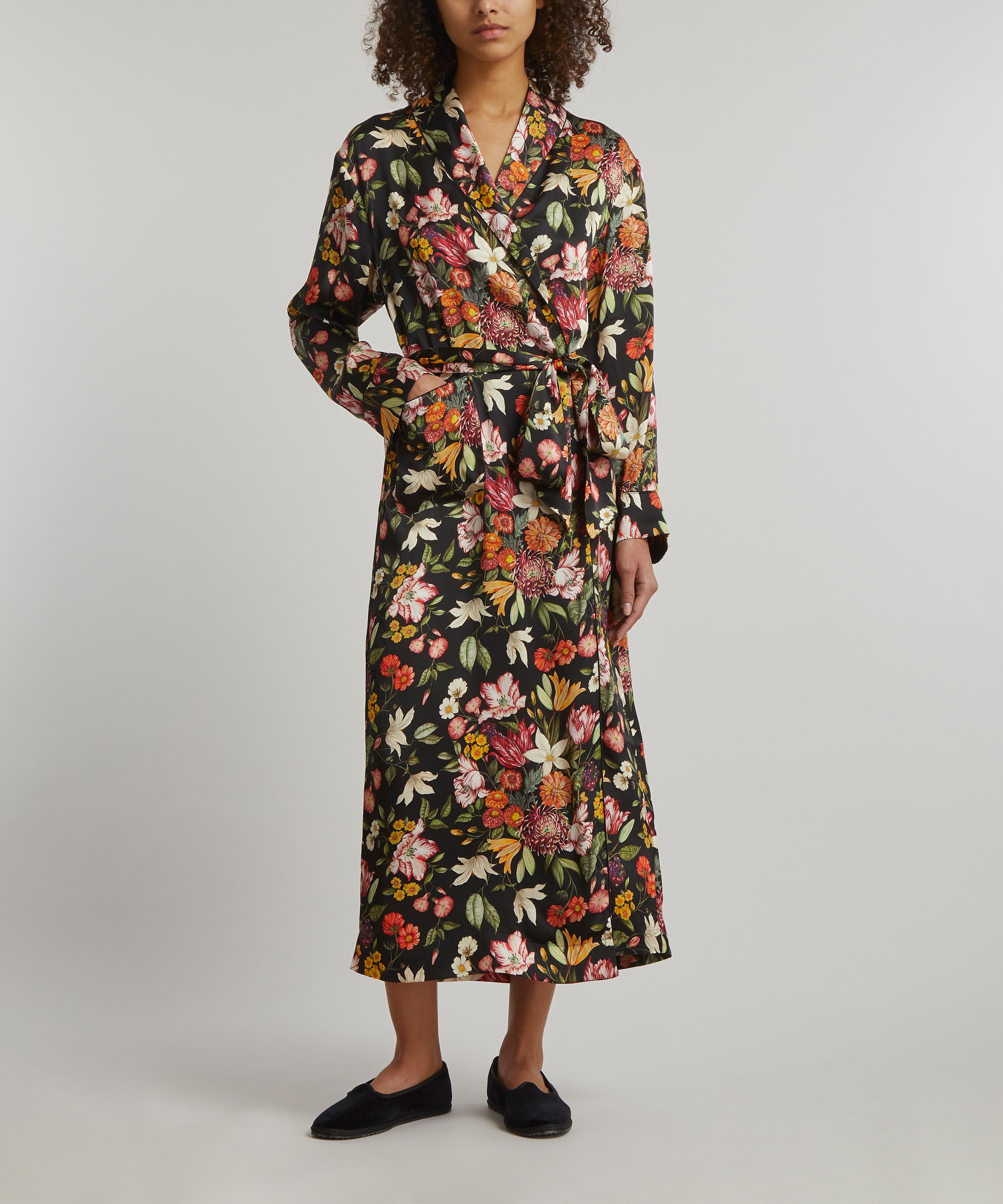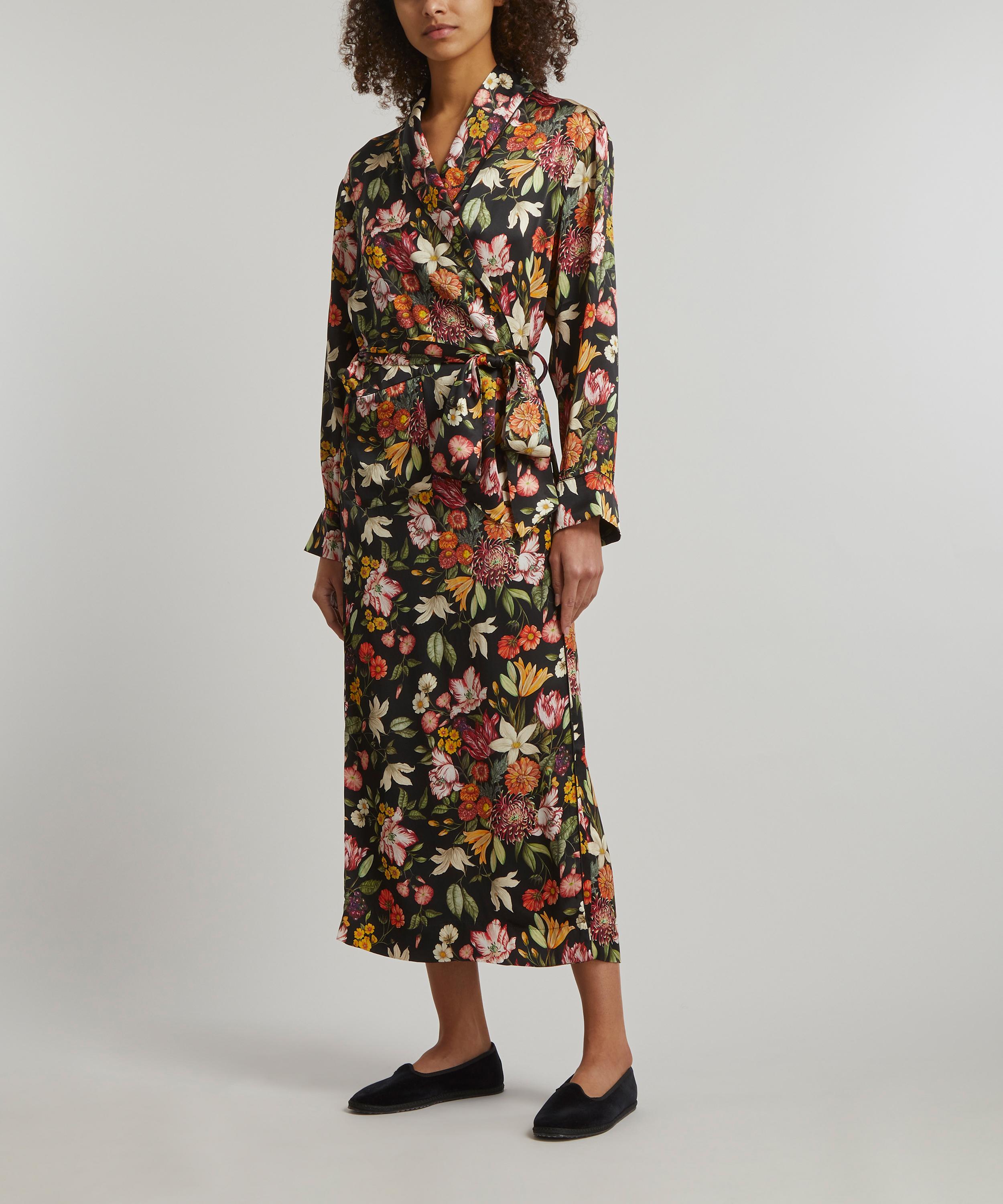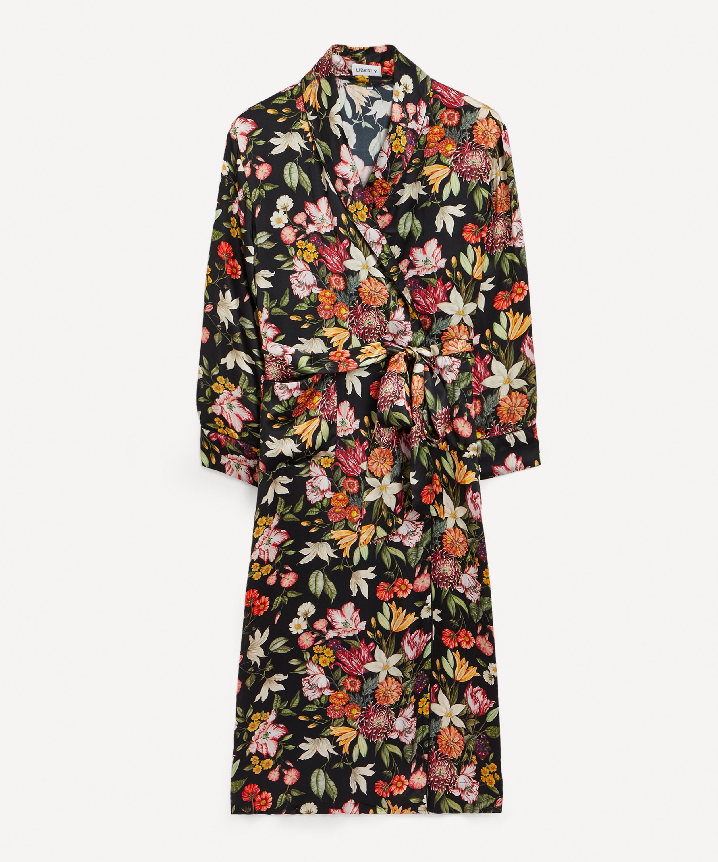 Liberty’s classic silk satin dressing gown captures the mood for lounge-worthy pieces that are versatile enough to be worn day or night. Expertly crafted from lustrous silk satin for fluid softness and intense colour vibrancy, it spotlights our Stately Bouquet print – inspired by photorealistic Dutch paintings of extravagant blooms in ornate vases, the design is reminiscent of floral displays found in grand estate houses. Finished with elegant piping, two patch pockets and a matching silk belt, this luxurious robe is ready to be combined with a matching pyjama set for the ultimate cosy night in, or styled over jeans as a louche daily edit.