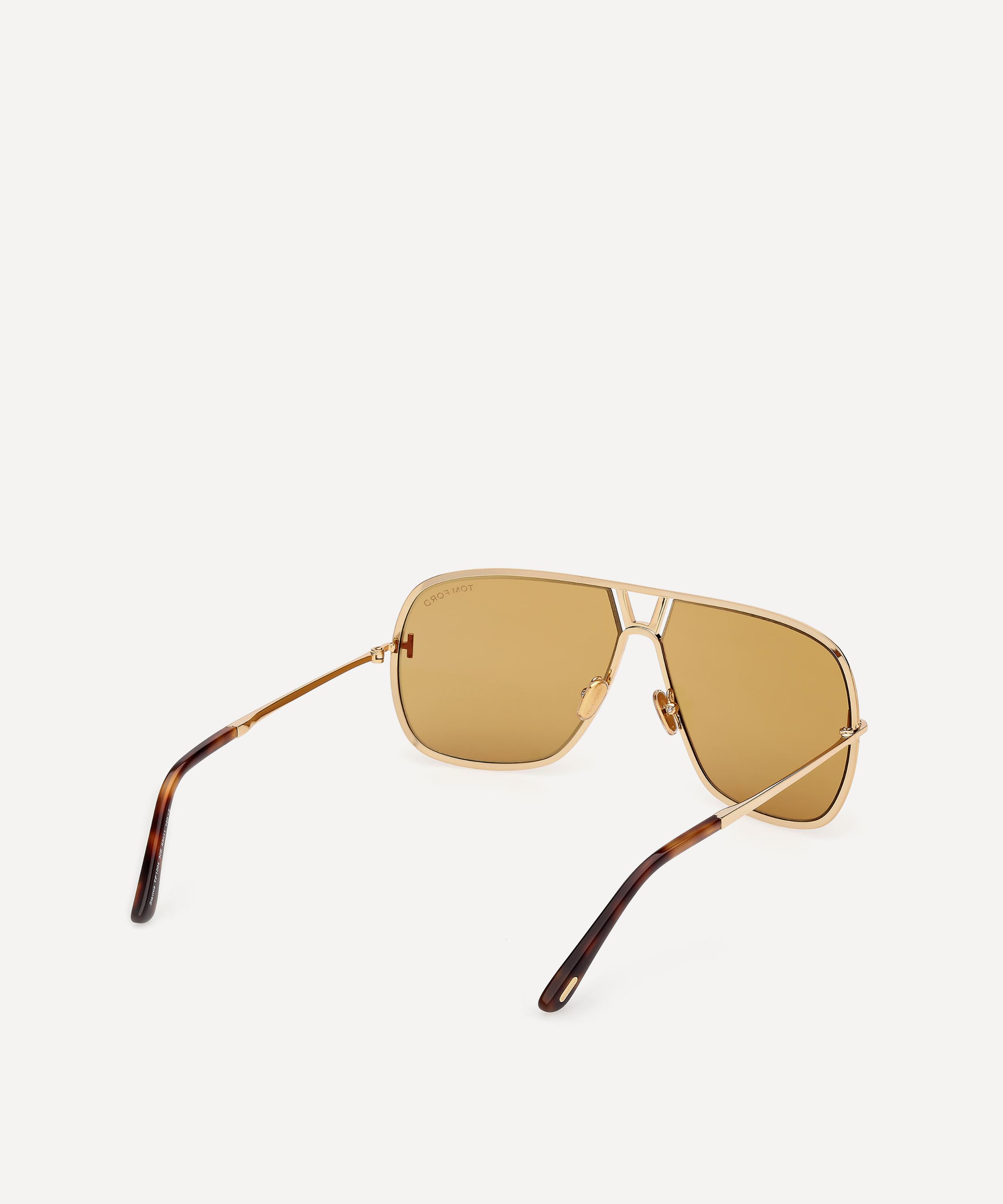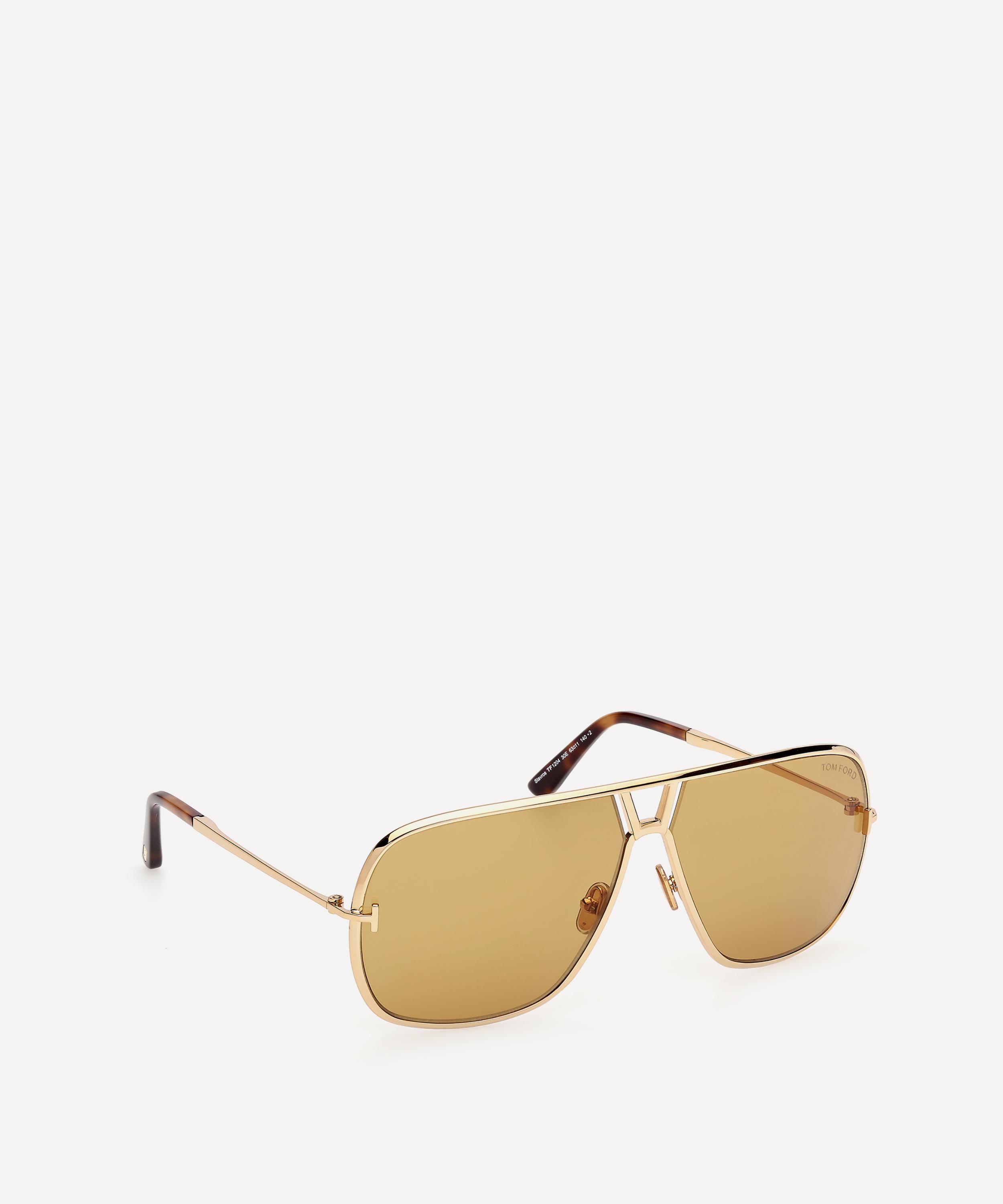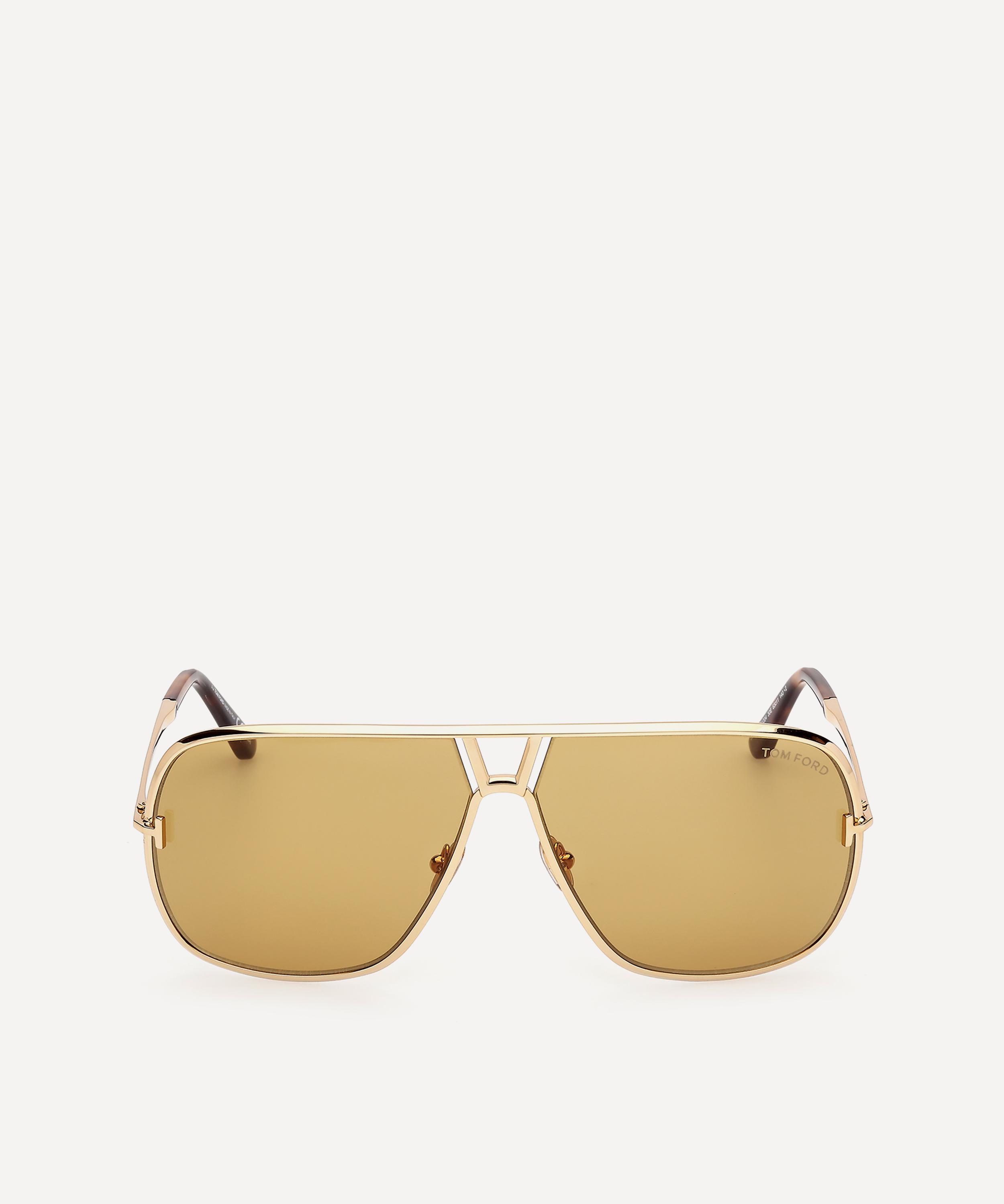 Transform your outfit and infuse a bit of edge with the Stavros aviator sunglasses from Tom Ford. Fusing retro-inspired design cues with a premium quality craftsmanship, these sunglasses showcase the brand’s penchant for sleek, statement frames. Expertly crafted from gold-tone metal with Havana acetate temple tips and UV-protective, brown-tinted lenses, they’re finished with a metal T logo to the end pieces – boasting a prerequisite addition to your eyewear edit.