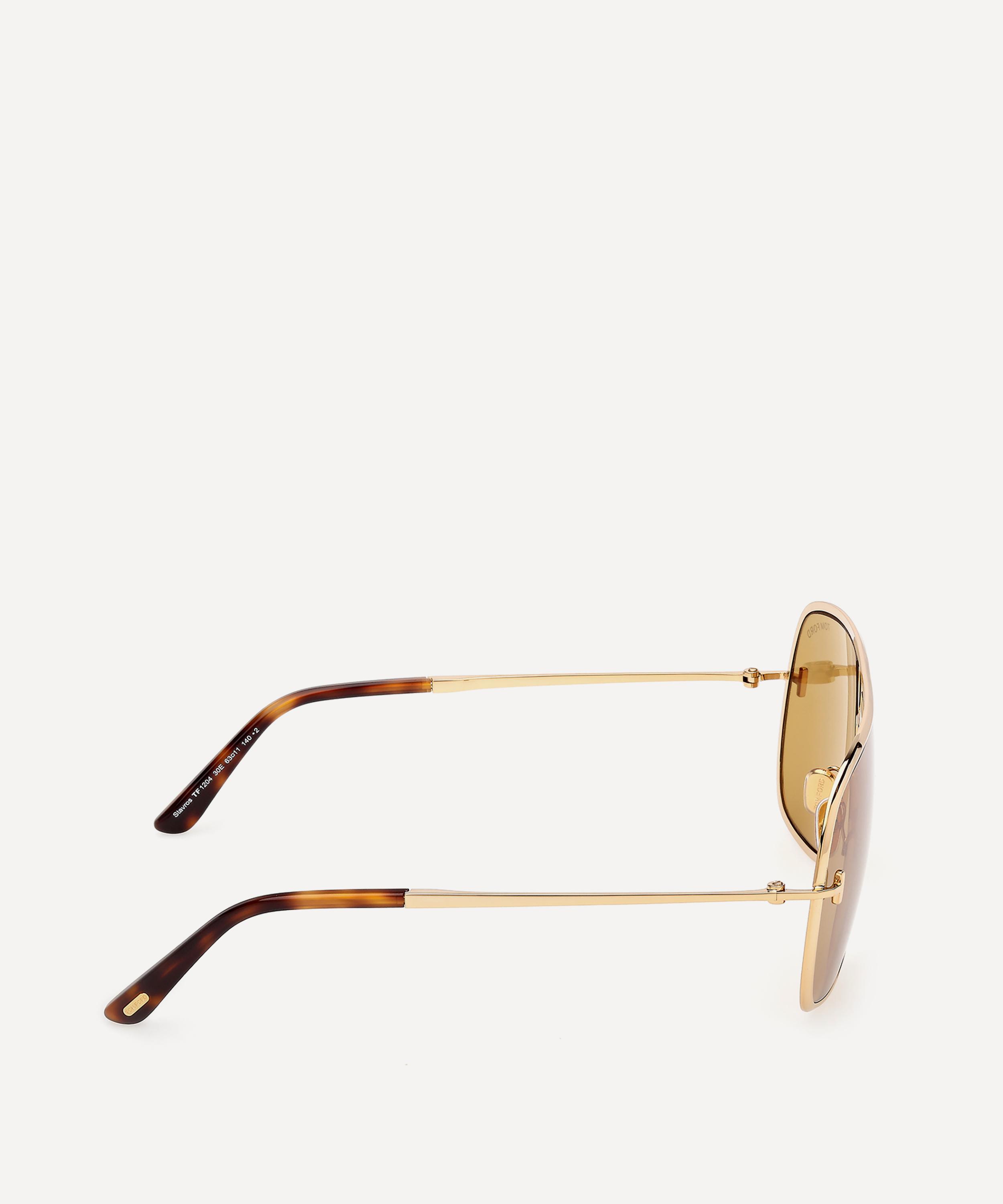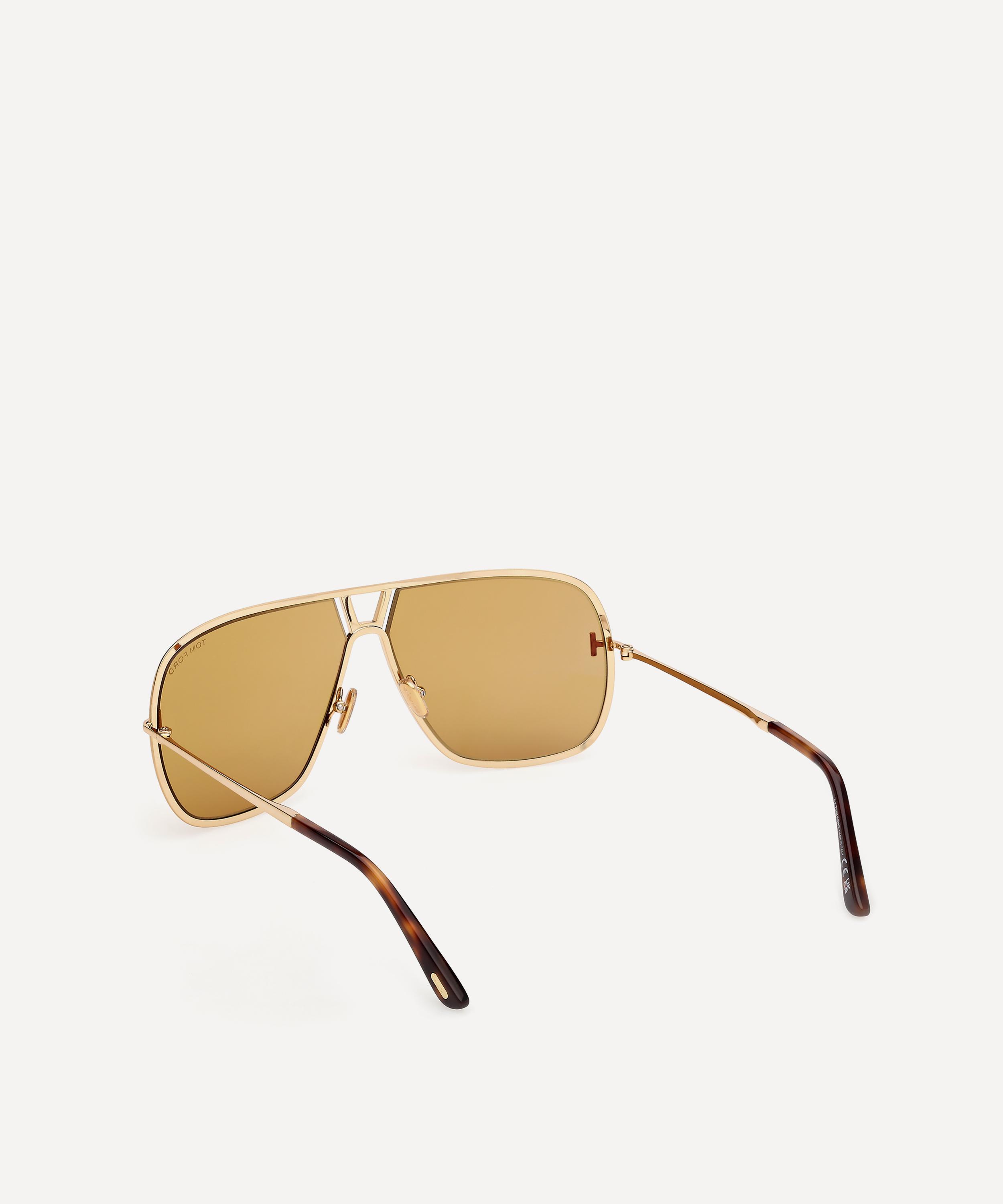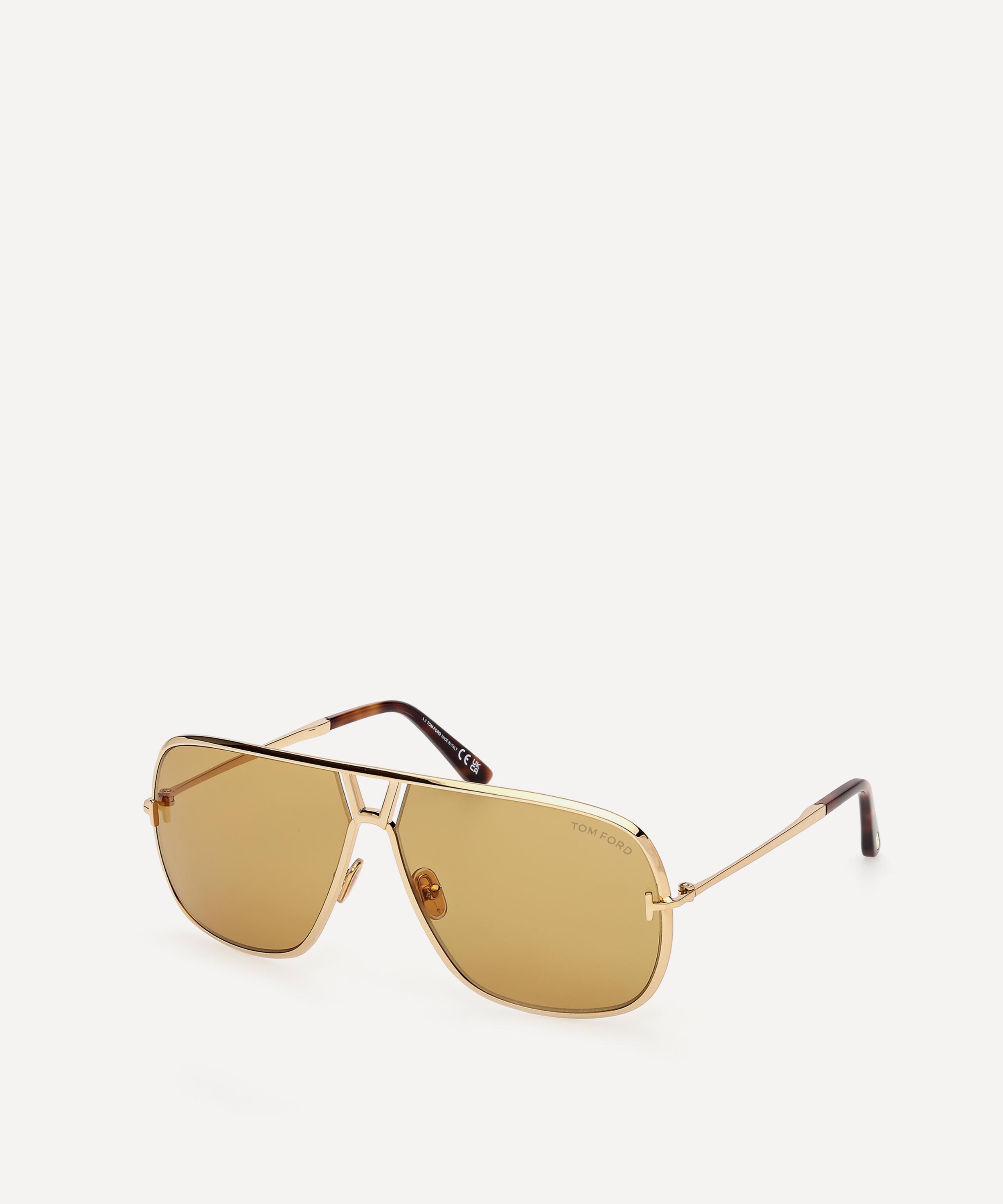 Transform your outfit and infuse a bit of edge with the Stavros aviator sunglasses from Tom Ford. Fusing retro-inspired design cues with a premium quality craftsmanship, these sunglasses showcase the brand’s penchant for sleek, statement frames. Expertly crafted from gold-tone metal with Havana acetate temple tips and UV-protective, brown-tinted lenses, they’re finished with a metal T logo to the end pieces – boasting a prerequisite addition to your eyewear edit.