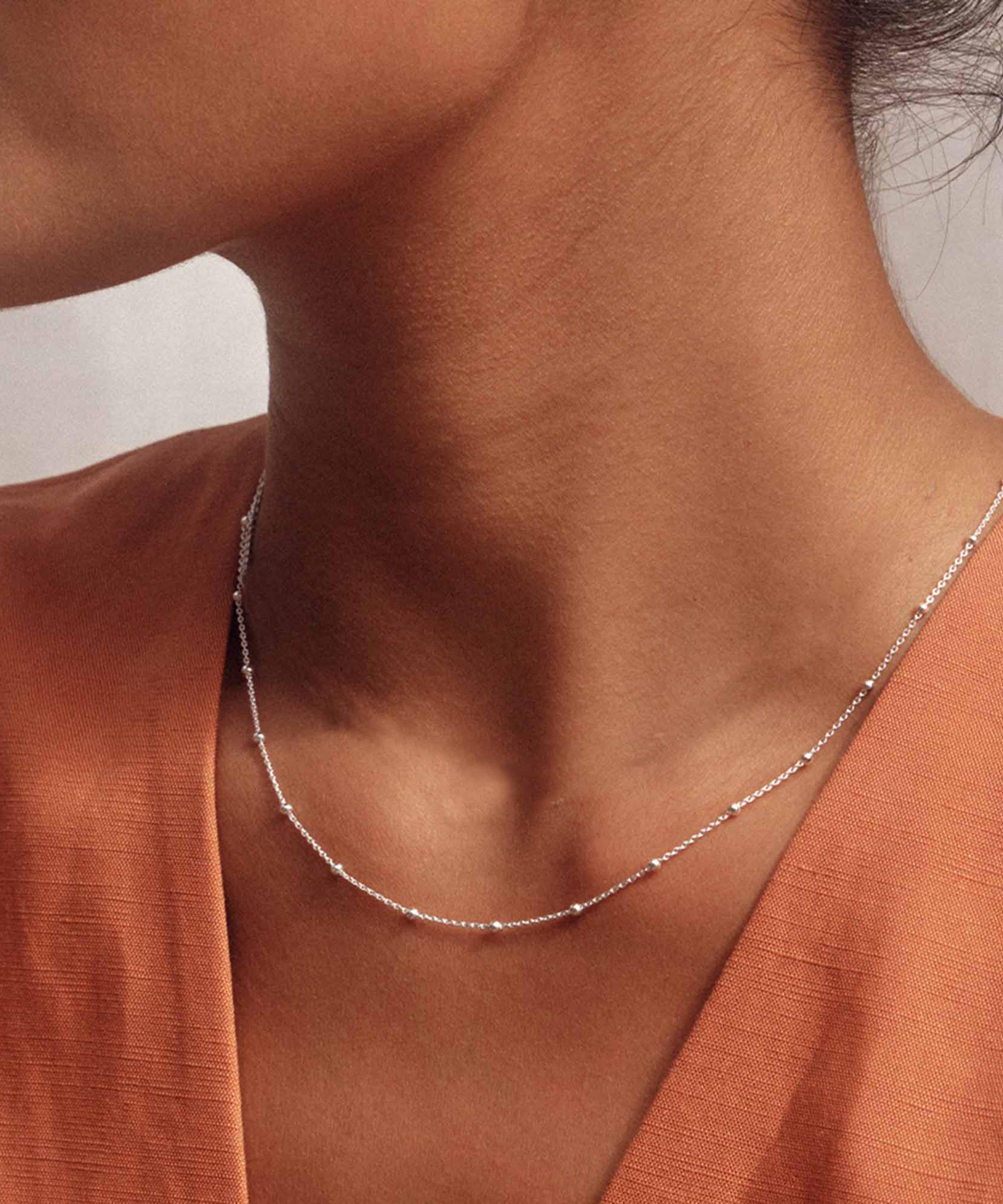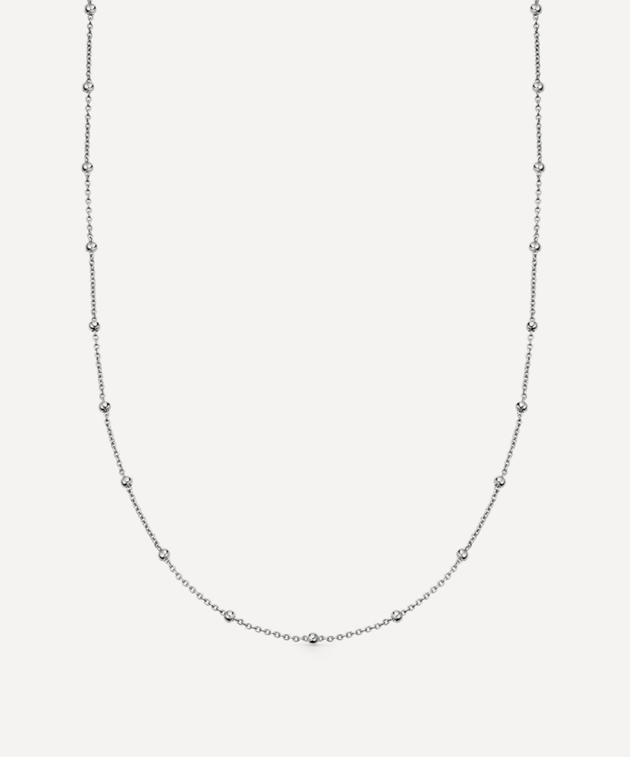 The Station necklace is part of Astley Clarke's Aurora collection, evoking celestial-inspired designs with an industrial edge. Crafted in sterling silver, it features a delicate chain adorned with tiny spheres for a beaded look. It layers perfectly with other necklaces – wear it short as a choker style, or extend for a longer, more elegant look.