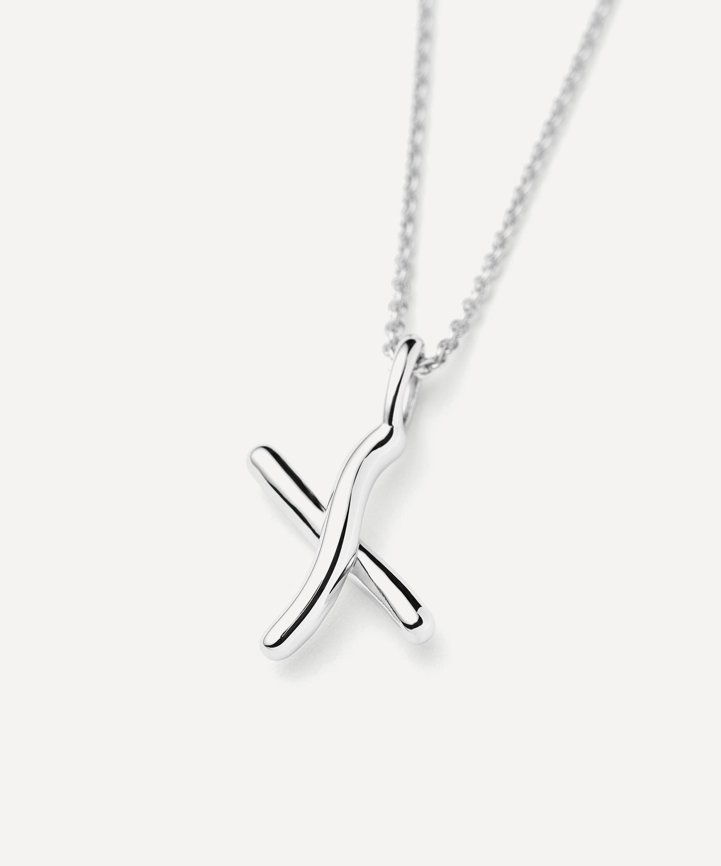 Sterling Silver Curly Molten Mini X Initial Pendant Necklace
