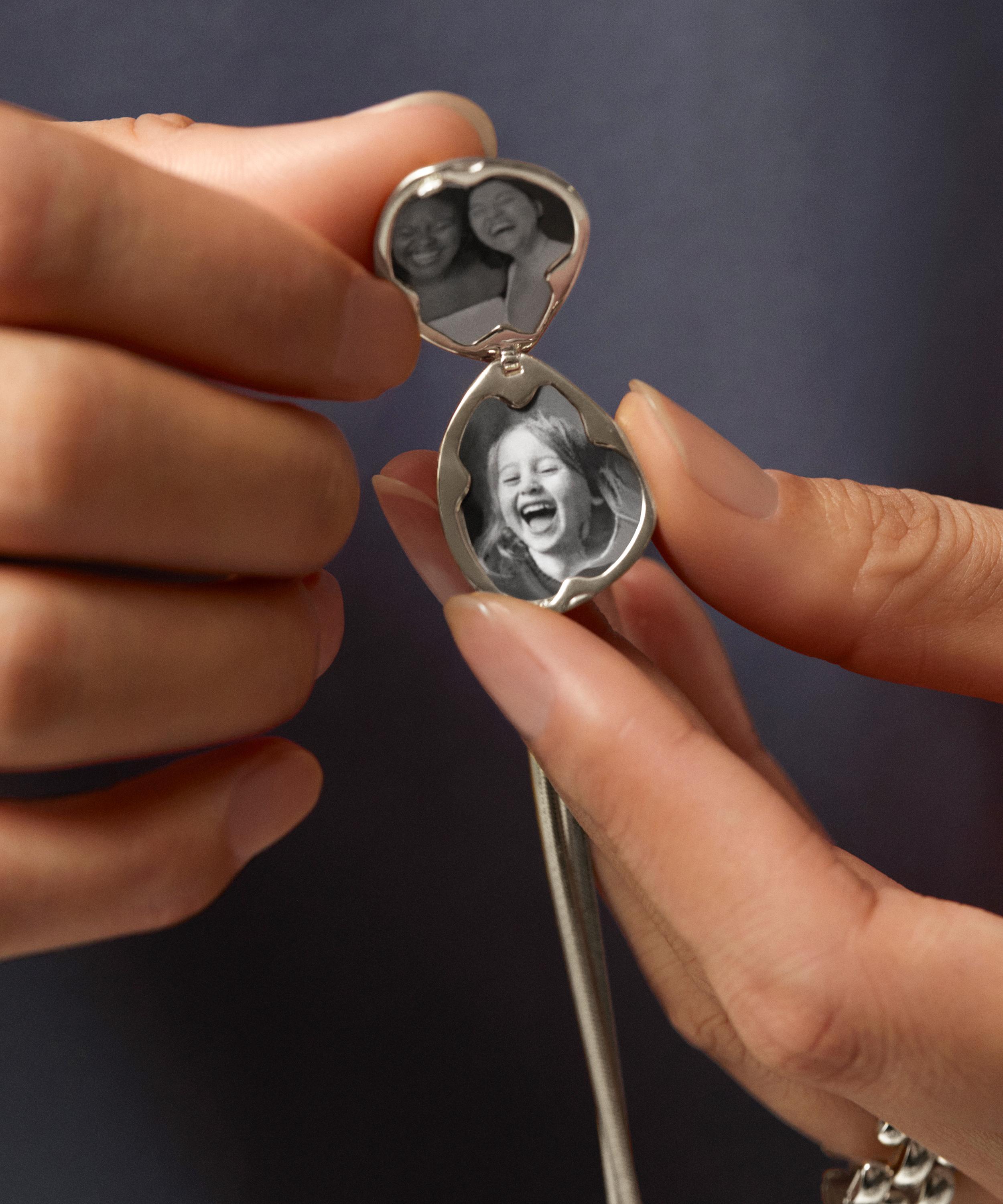 Named after the Italian word for goddess, the Deia collection is a celebration of independence and individuality, inspired by the power of adornment in ancient civilisations. Inspired by pebbles lightly worn by water, this locket features a slightly irregular silhouette with gently hammered texture to reflect the light. Suitable for engraving, wear this talismanic keepsake with up to two photos on the inside to keep your loved ones close to your heart. Style it solo on a fine trace chain, or layer it with multiple chains from the brand for a trend-led, contemporary finish.