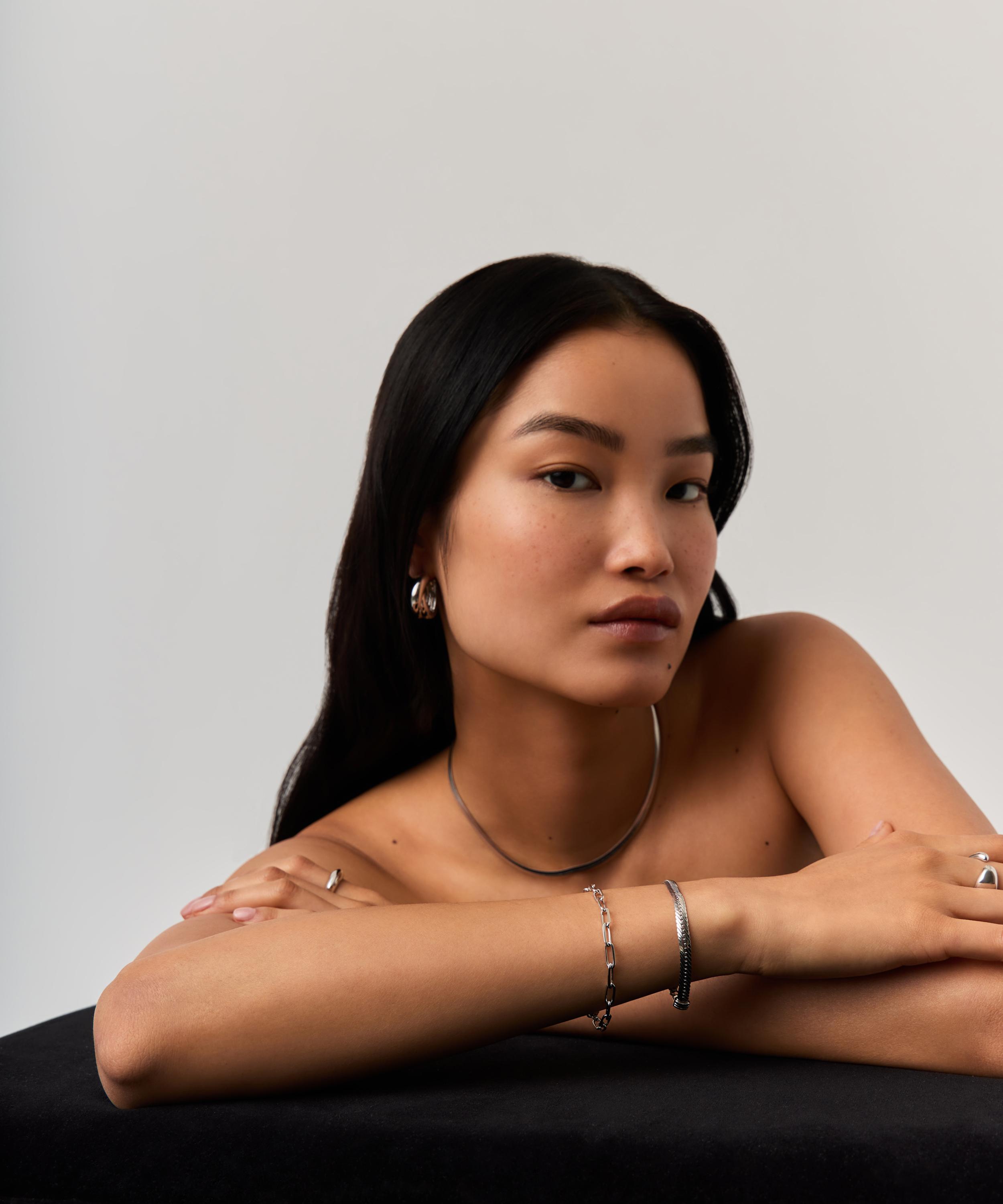 A versatile addition to your wrist stack, this bracelet from Missoma is ideal for stacking. Crafted from sterling silver, it features two delicate chains with bobble detailing for added texture. Layer it with other cuffs and chains, or team it with the matching double chain necklace for a simple, yet elegant edit.