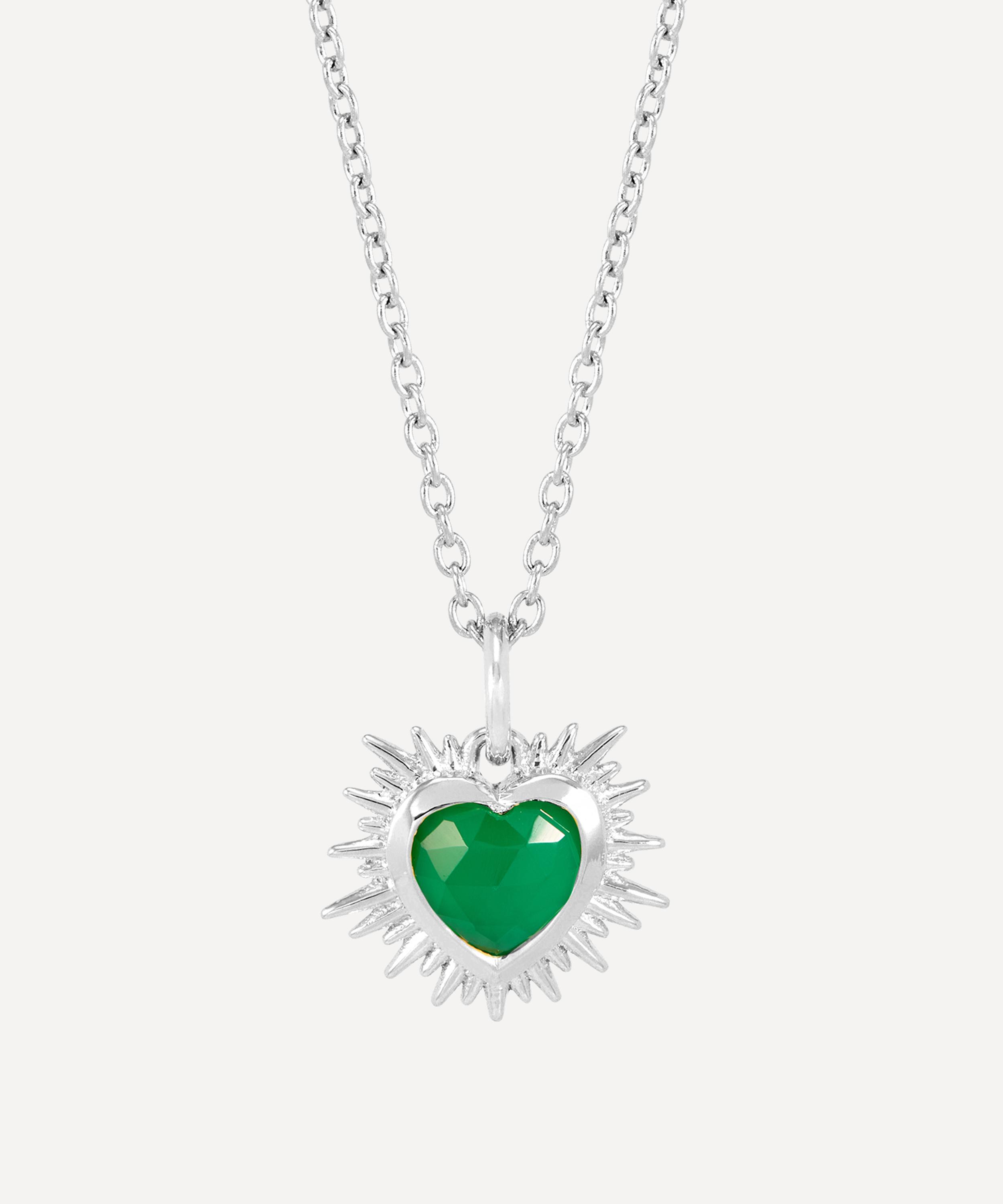 Crafted from sterling silver, it features a classic rolo chain and a bursting heart pendant adorned with the collection’s signature Art Deco rays and a hand-carved green agate – a May birthstone, thought to bring the wearer prosperity and strength. Style it solo, or team it with other pieces from the brand for a head-turning edit.