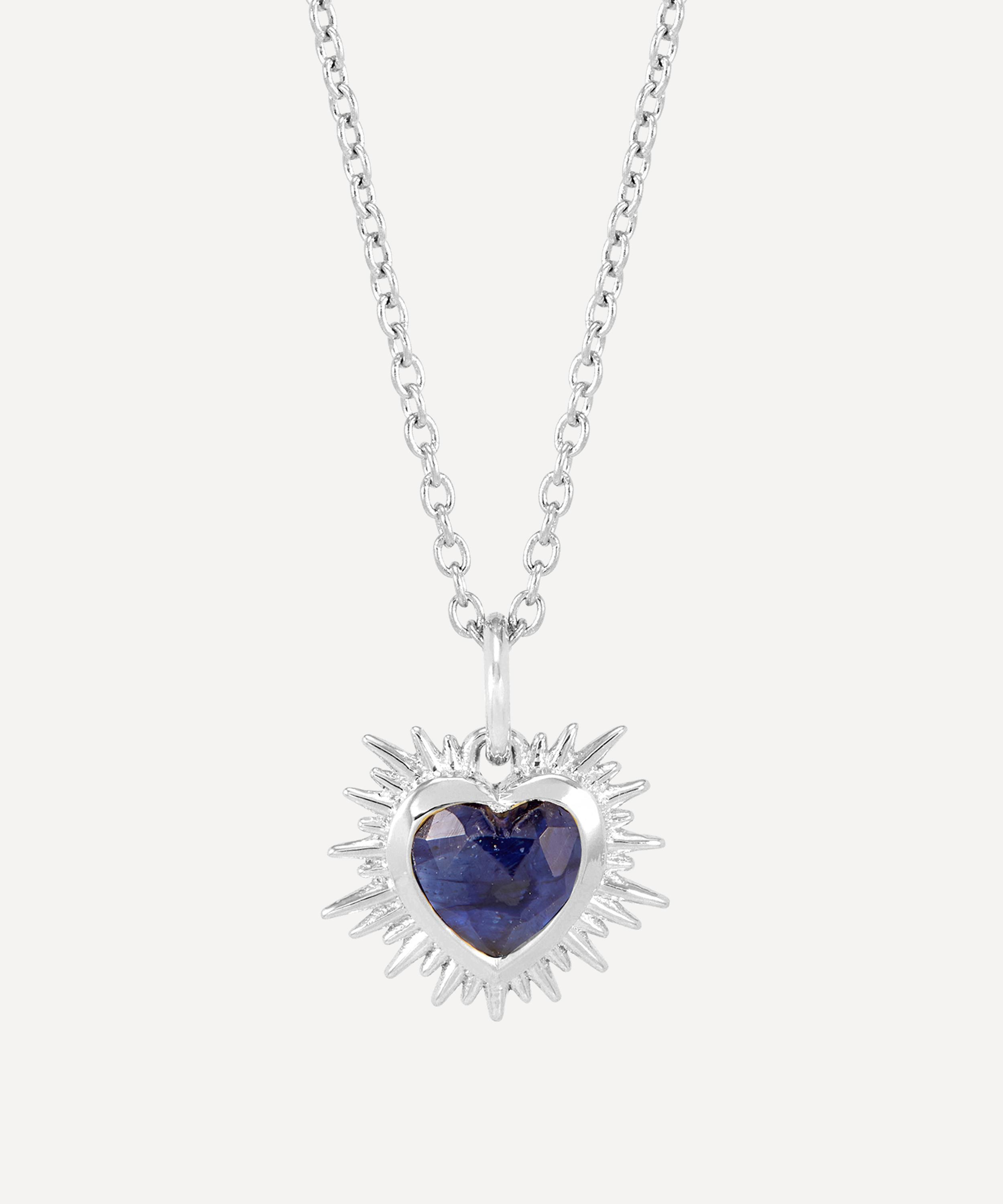 Crafted from sterling silver, it features a classic rolo chain and a bursting heart pendant adorned with the collection’s signature Art Deco rays and a hand-carved sapphire – a September birthstone, thought to bring the wearer love and wisdom. Style it solo, or team it with other pieces from the brand for a head-turning edit.