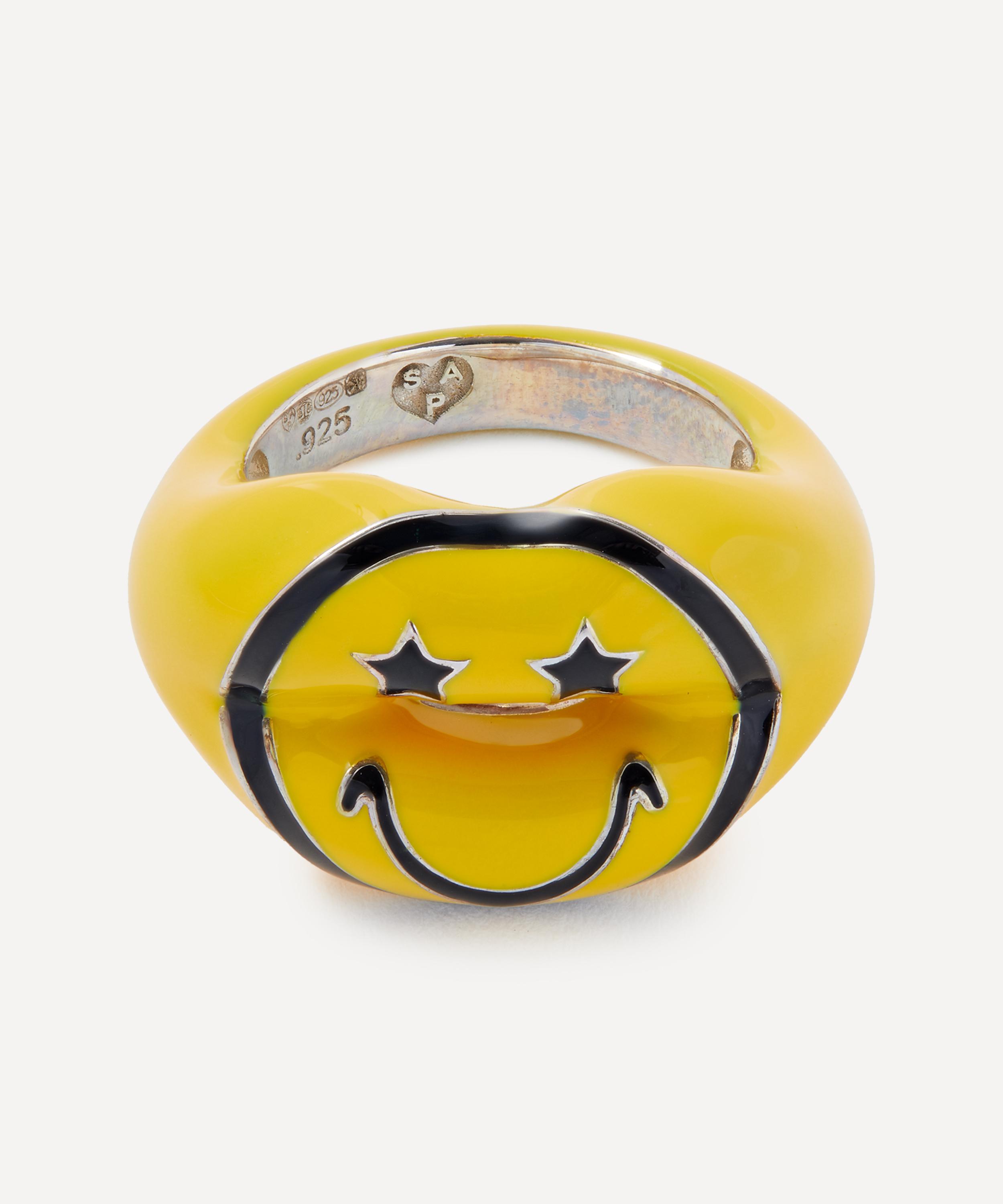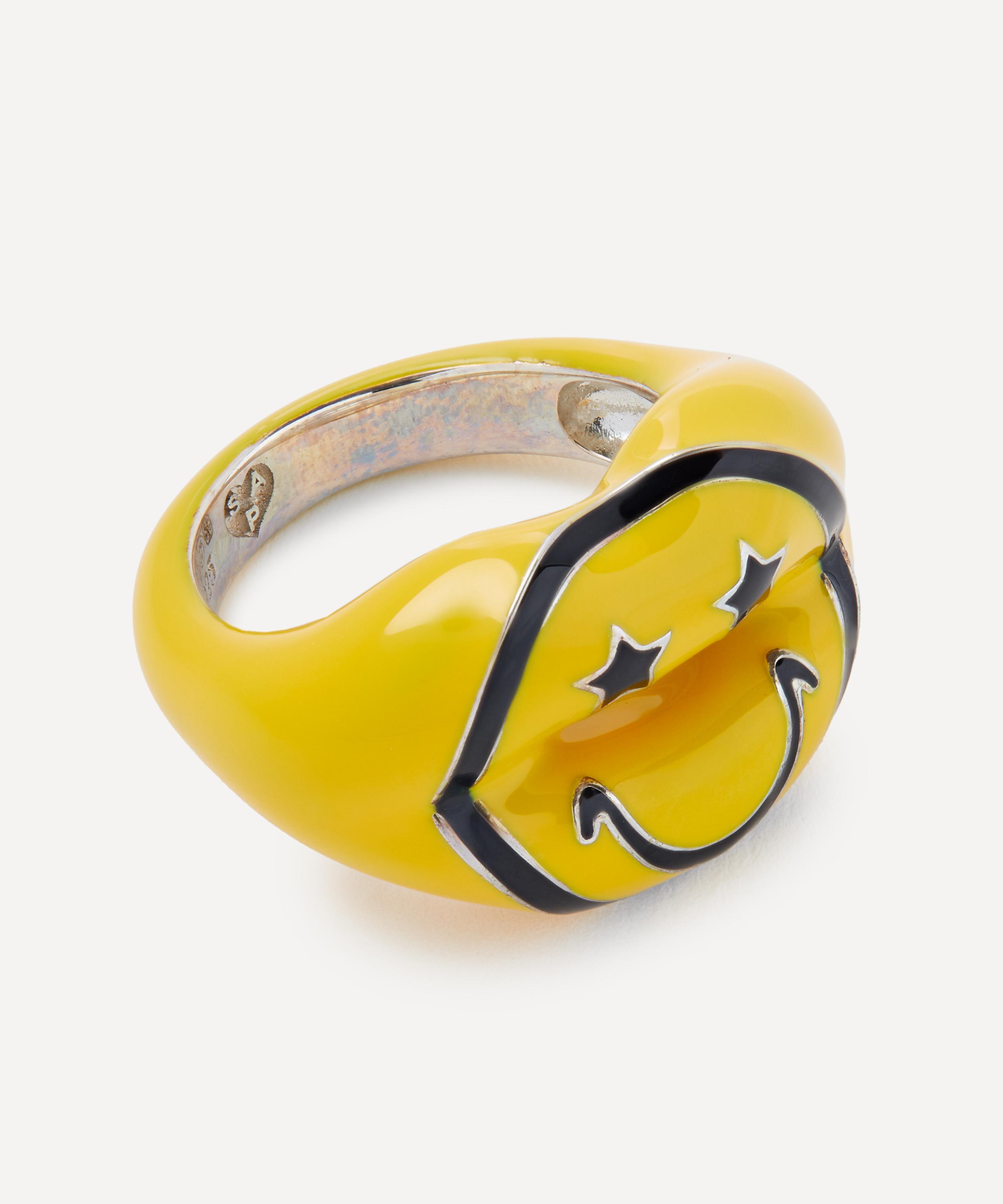 Add a touch of whimsy to your look with this rendition of the iconic Hotlips ring by British designer Solange Azagury-Partridge. Crafted from solid sterling silver, this distinctive ring is complete with a bright yellow enamel coating and a happy face motif at the centre of a pair of pouting lips - a playful addition to your everyday line-up, mix and match with several other rings from the Hotlips range for a fun, contemporary curation.
