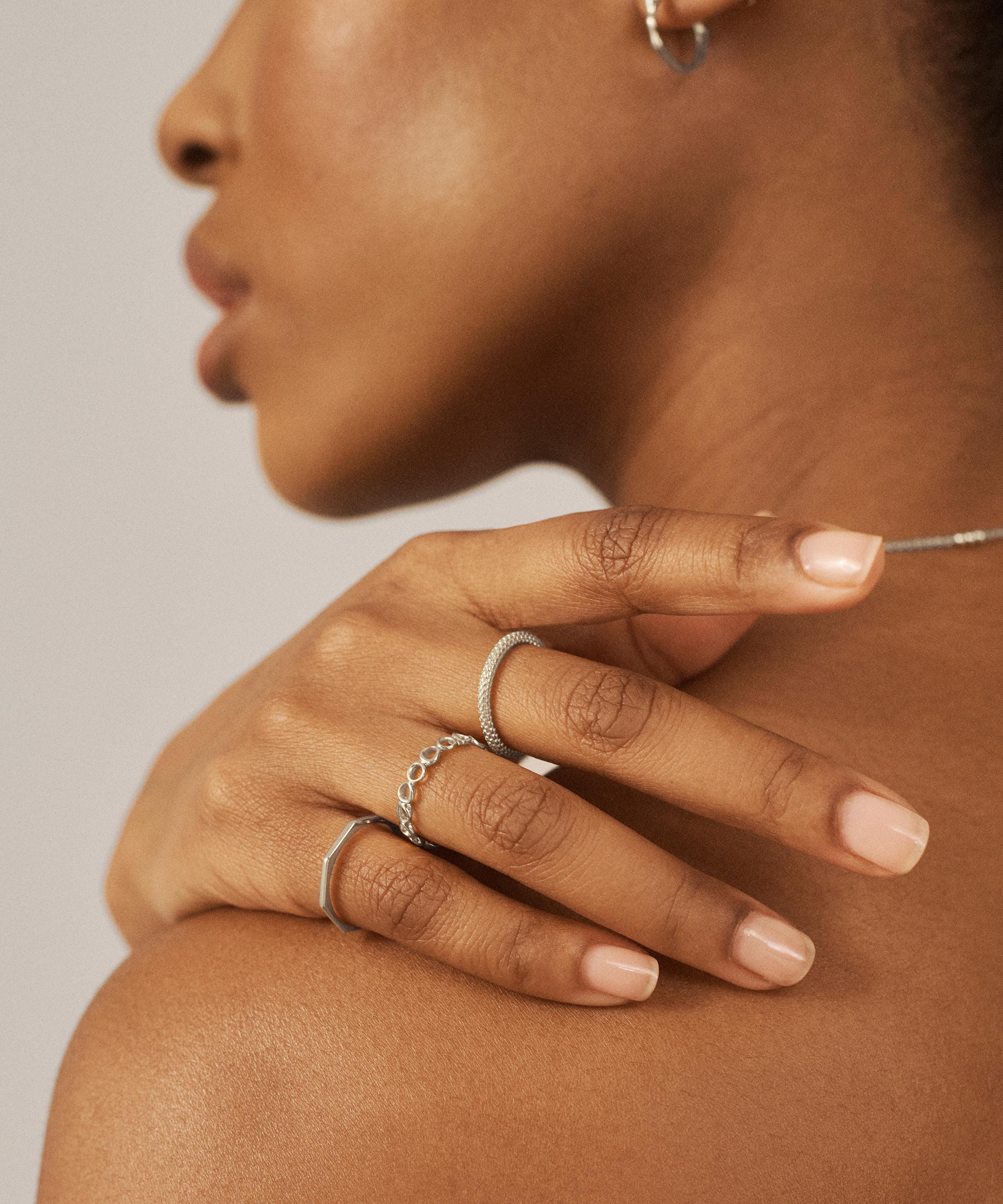 Inspired by the glamour of 1950s Italy, this ring from Monica Vinader is crafted from sterling silver. Characterised by a woven chain texture in a polished finish, it can be teamed with several other styles to fully harness the collection’s elegant, vintage-inspired aesthetic.