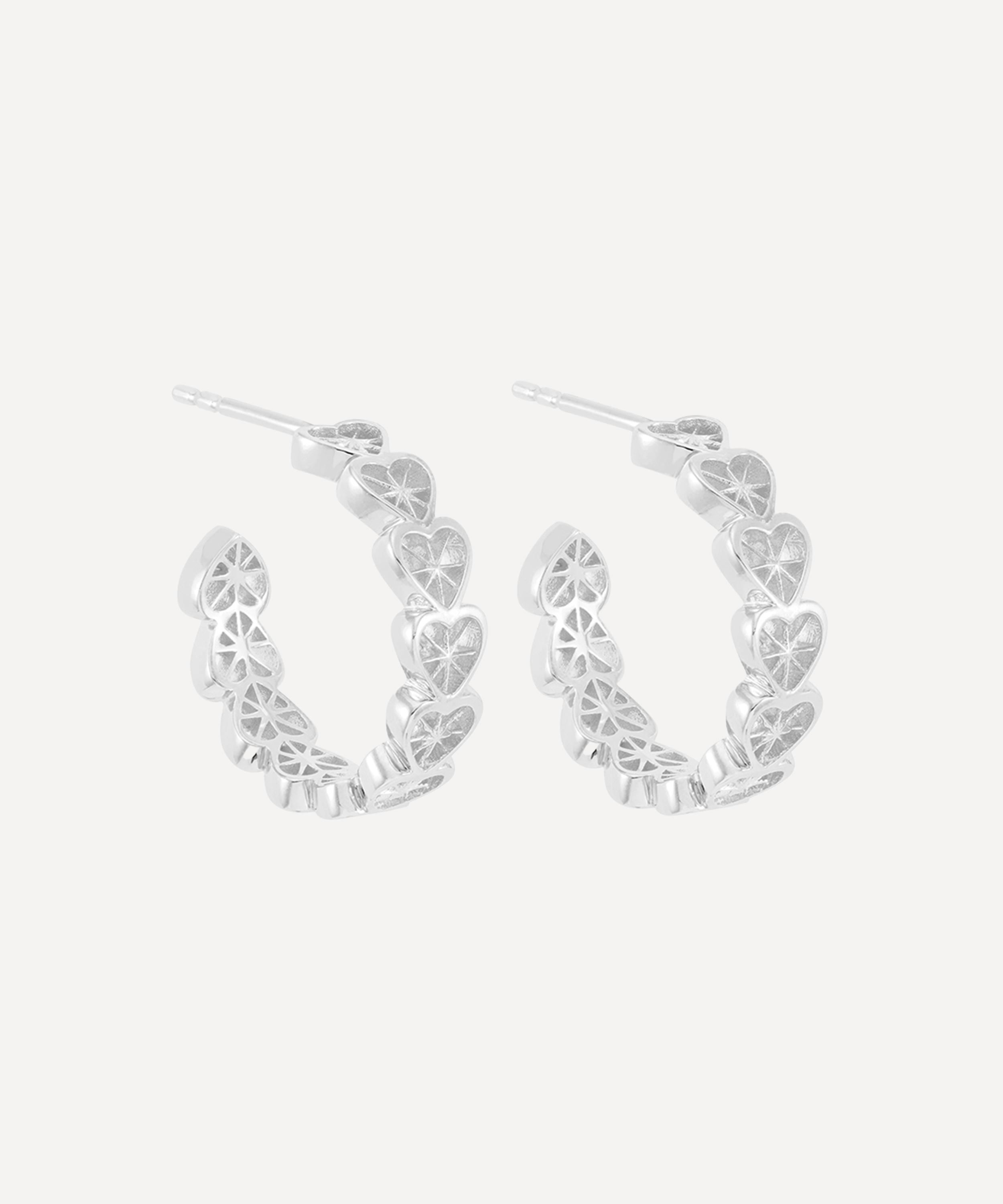 Expertly crafted from sterling silver, each earring features a repeated heart motif with delicate star detailing. Finished with classic post backings, style them solo for a subtle statement, incorporate them into a curated stack or pair with the gold-plated version for a mixed, two-tone look.