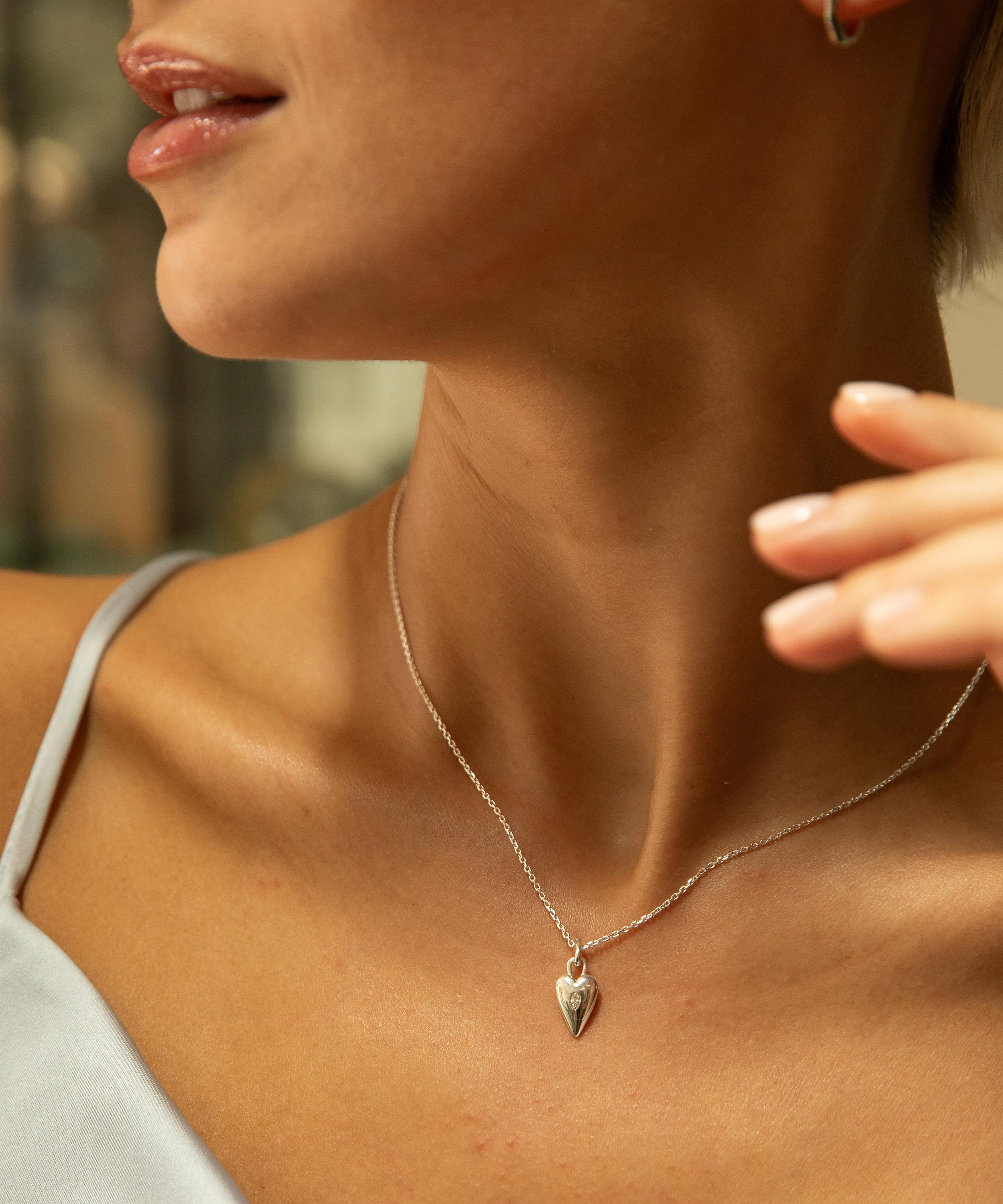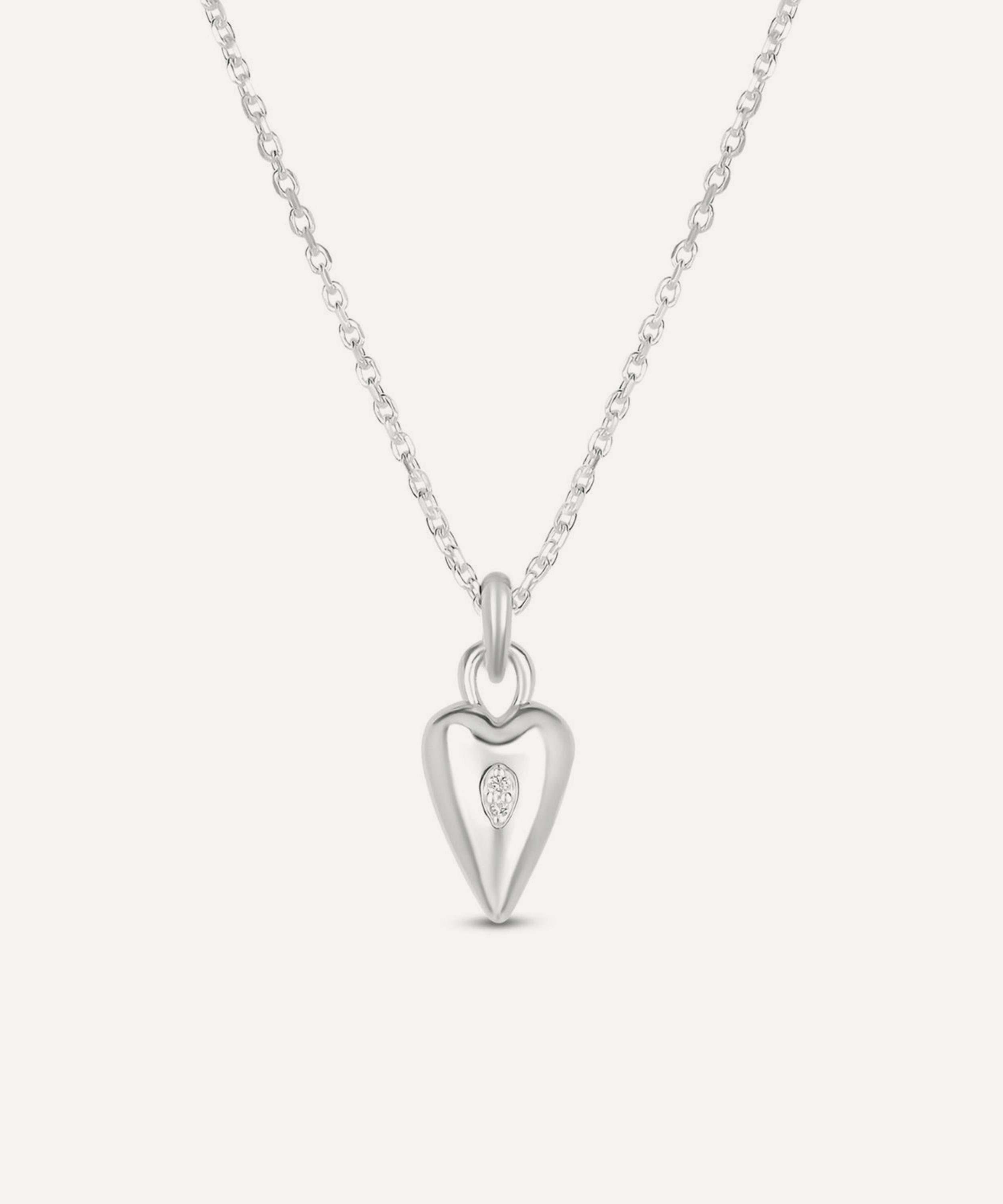 Update your regular line-up with this exquisite pendant necklace from Dinny Hall’s My World collection – a symbolic selection of locket necklaces, rose-cut birthstone charms and celestial motifs. Crafted from sterling silver, it features a faceted trace chain and a polished, elongated heart embellished with two sparkling diamond accents. Style yours solo or stacked.