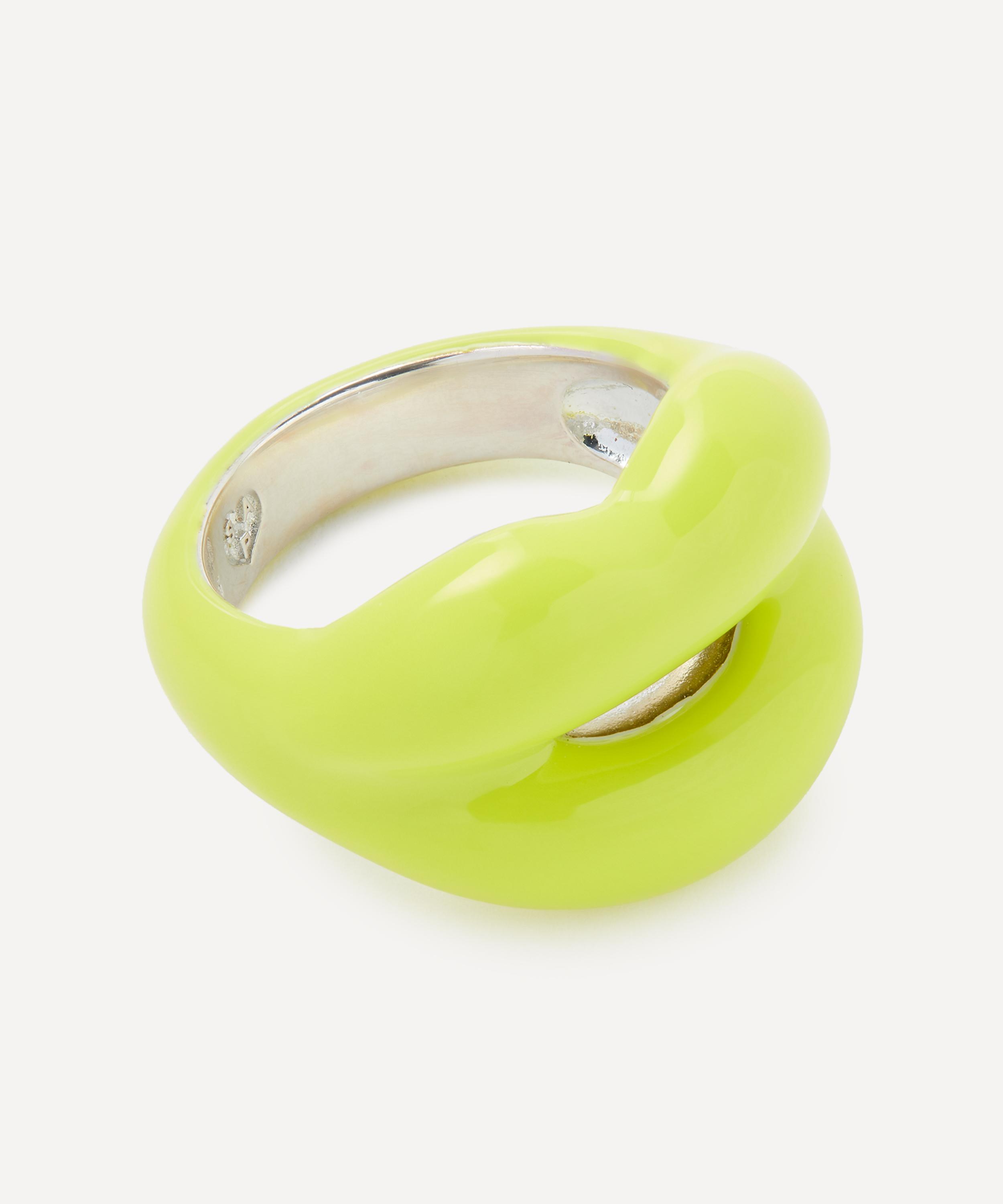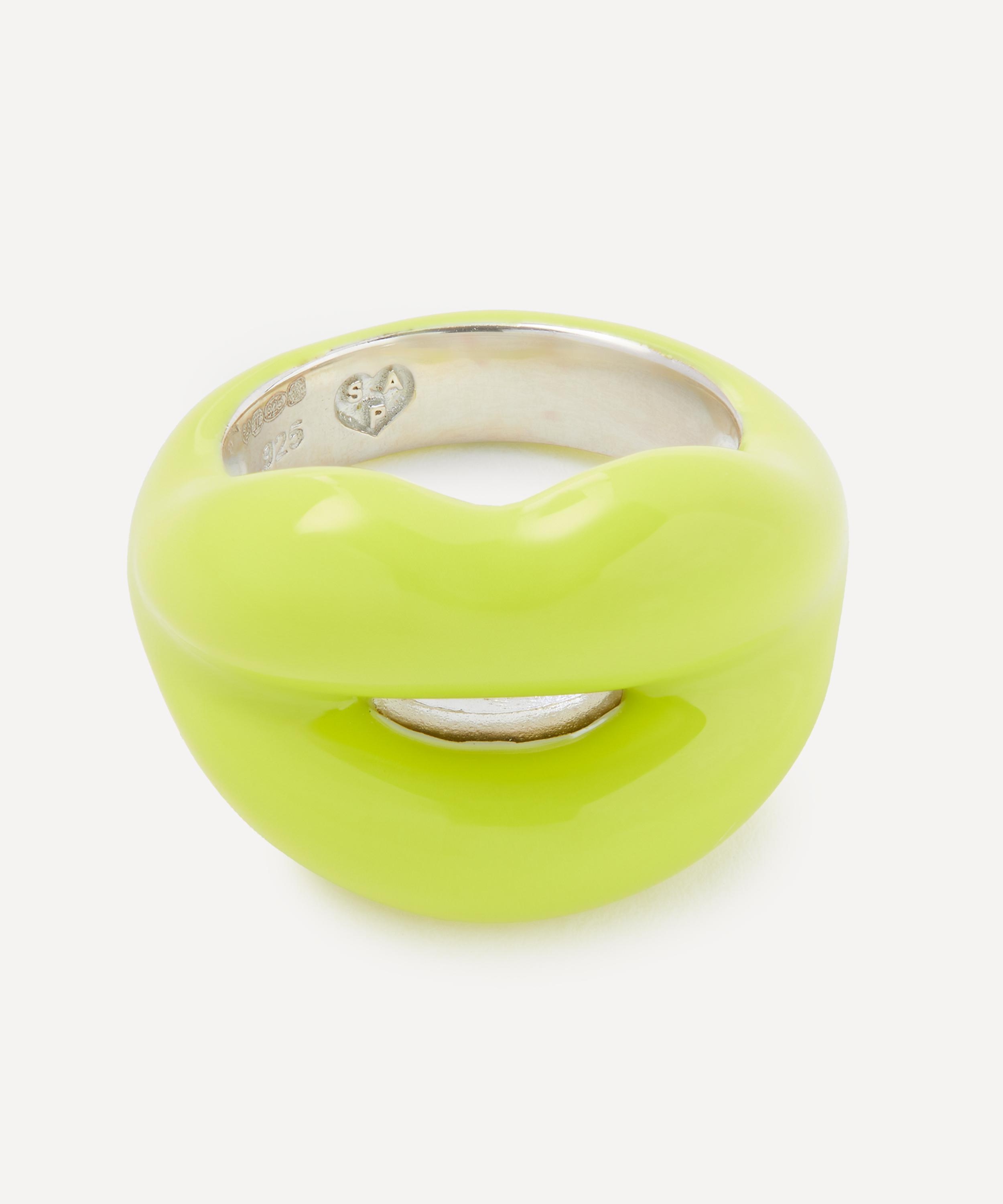Delivering a bold pop of colour to any look, this rendition of the iconic Hotlips ring by British designer Solange Azagury-Partridge features a vivid neon yellow hue on a pair of pouting lips. Crafted from solid sterling silver, it boasts a playful addition to your everyday line-up, mix and match with several other rings from the Hotlips range for a fun, contemporary curation.