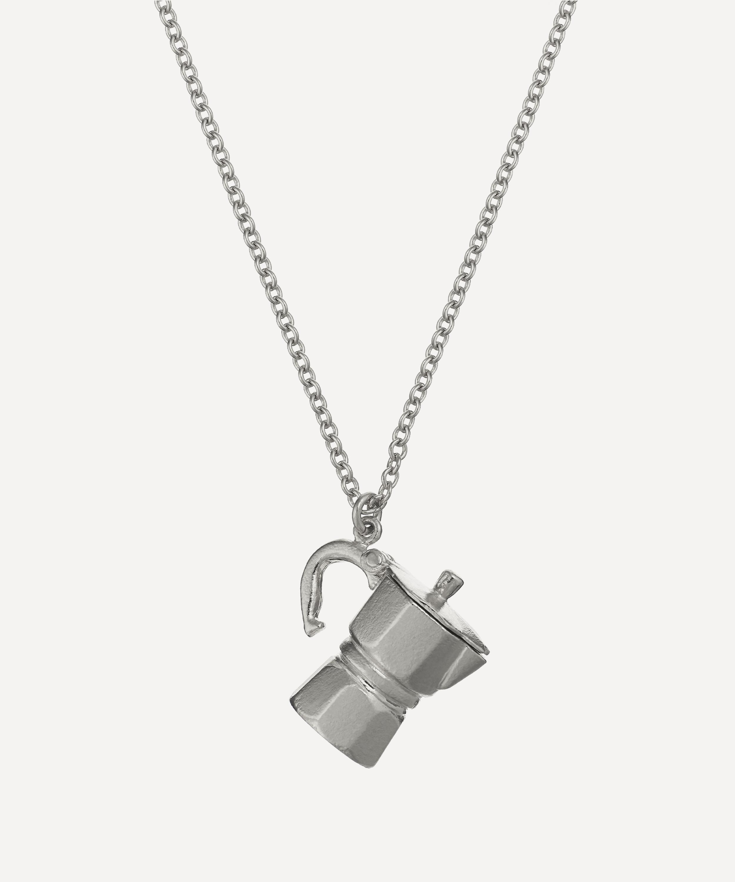 Full of character and sweet symbolism, this pendant necklace from Alex Monroe will have you stand out from the crowd. Designed for the java aficionados, this necklace features a perfectly proportioned moka coffee pot pendant in sterling silver. Complete with a cable chain, it makes for a beautiful addition to any accessories rotation, perfect for anyone looking for something unique to express their personality.