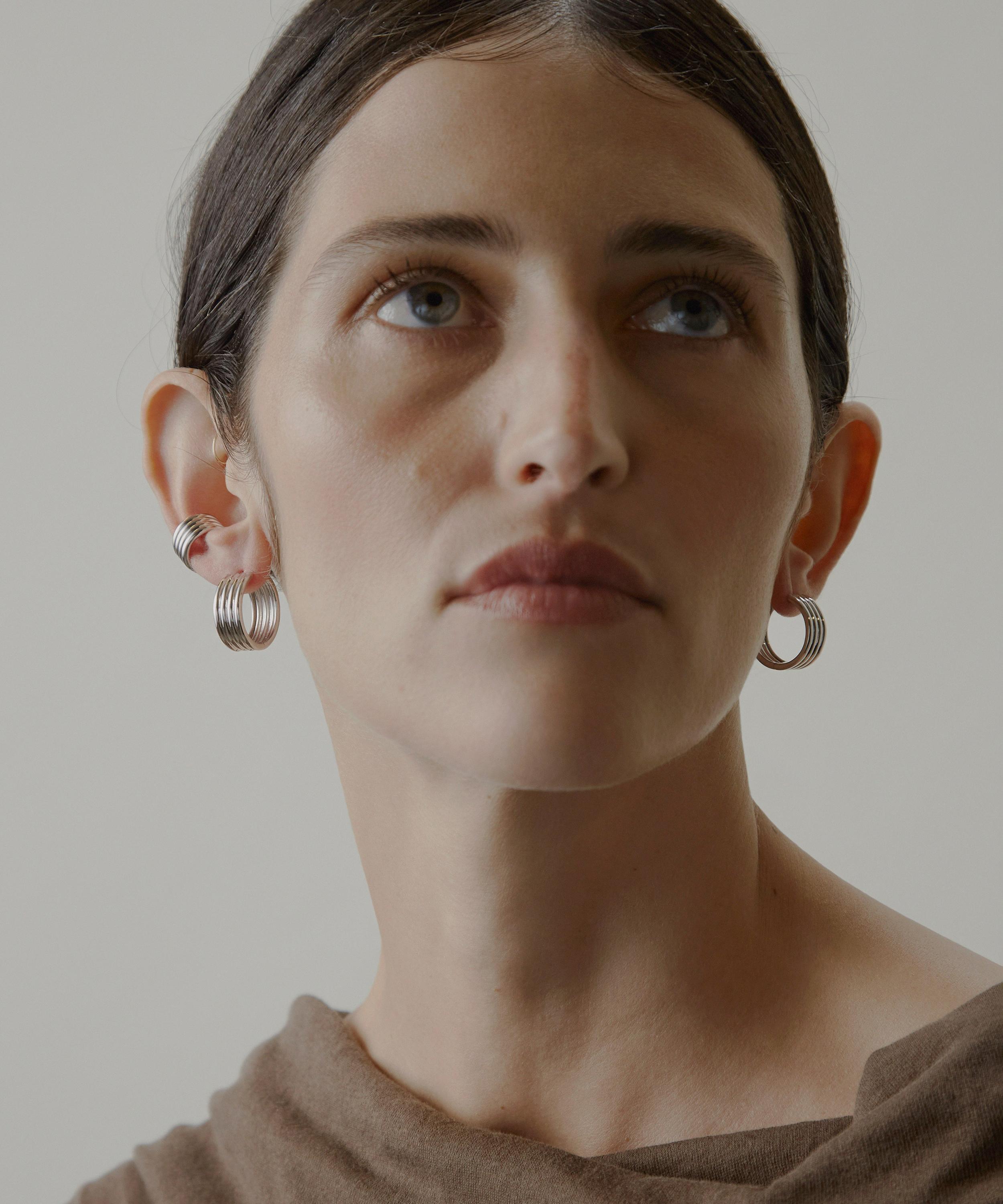 Tie your look together with the elevating silhouette of Otiumberg's Stratis Hoop Earrings. Handcrafted from sterling silver, each hoop features a wide design with subtle ridge detailing. Style them solo or stacked.