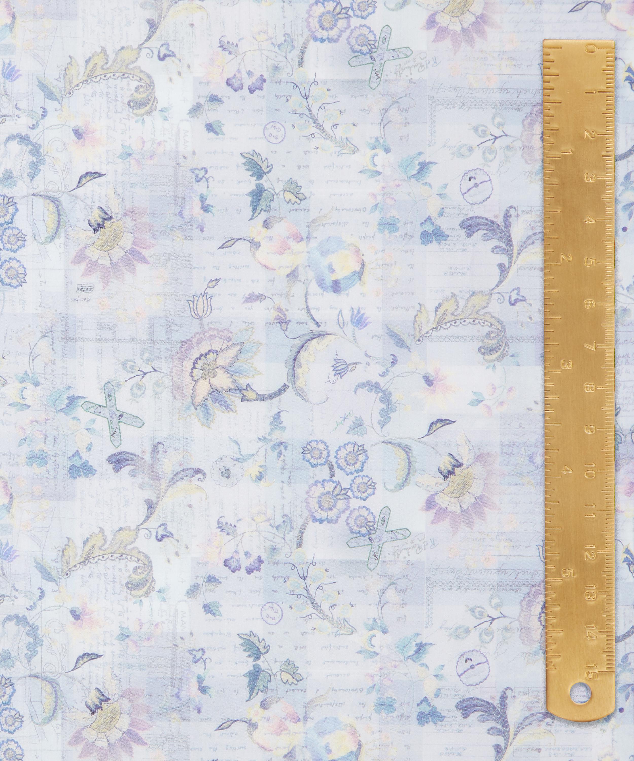 Visually representative of growth and transition, Stitch and Community feature a Tree of Life-style design. Created from a collection of archival Liberty artworks dating to 1915, botanical embroidery studies are arranged to a create a trompe-l’oeil effect. These artworks are layered over hand-written letters and motifs stitched into a blanket by prisoners of war. The design reflects a need to create and connect to others felt among individuals inflicted by war or incarceration.