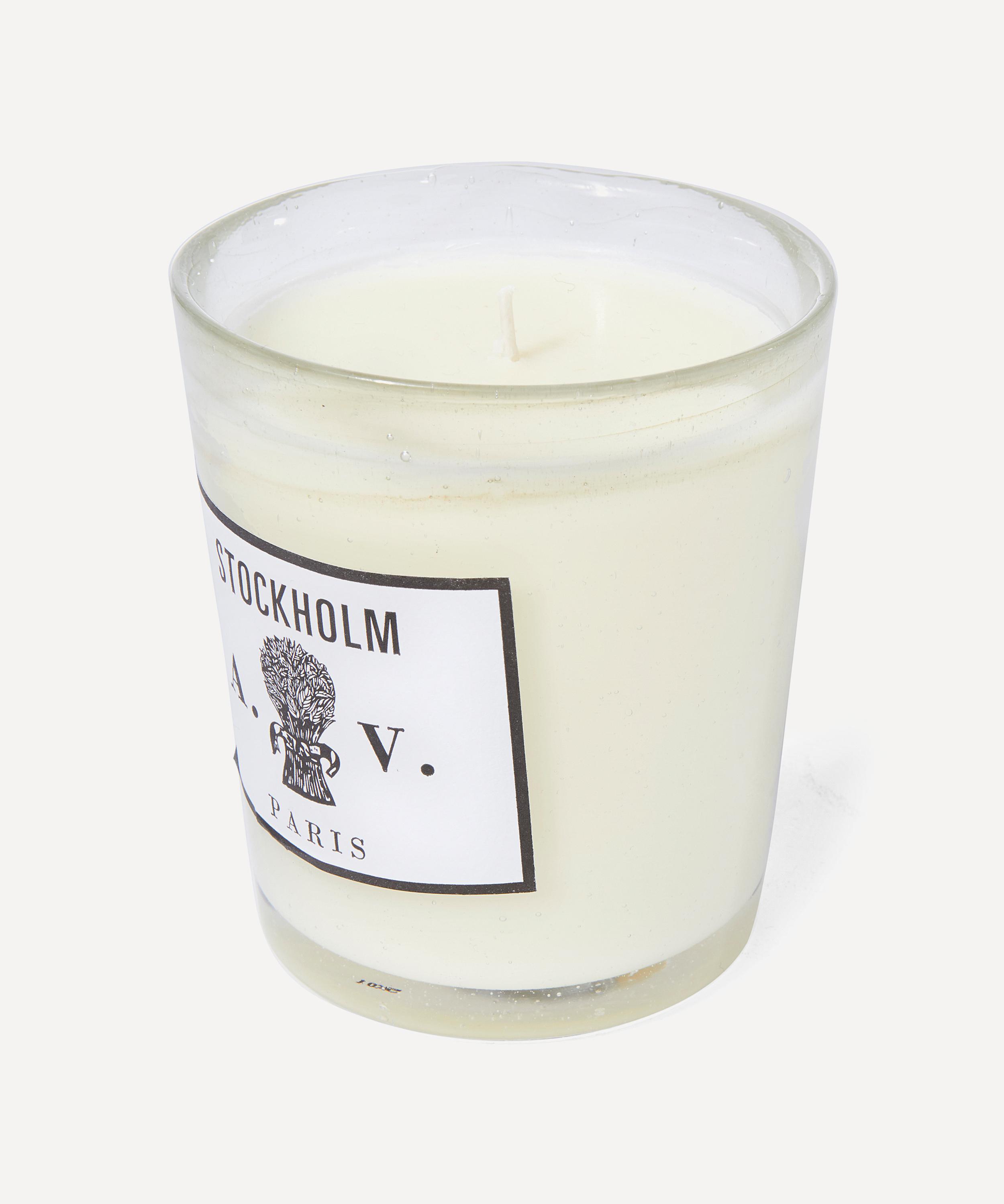 The Astier de Villatte Stockholm candle is inspired by the interlacing lanes and cobblestones of the pastel and ochre old city and in particular the hidden, secret address of the famous Swedish Bitters Elixir. King Gustav II would give it to his Viking warriors to render them invincible. An inebriating mixture of wild plants, clove, lavandin, myrrh, vetiver and clary sage escapes from the bottle.