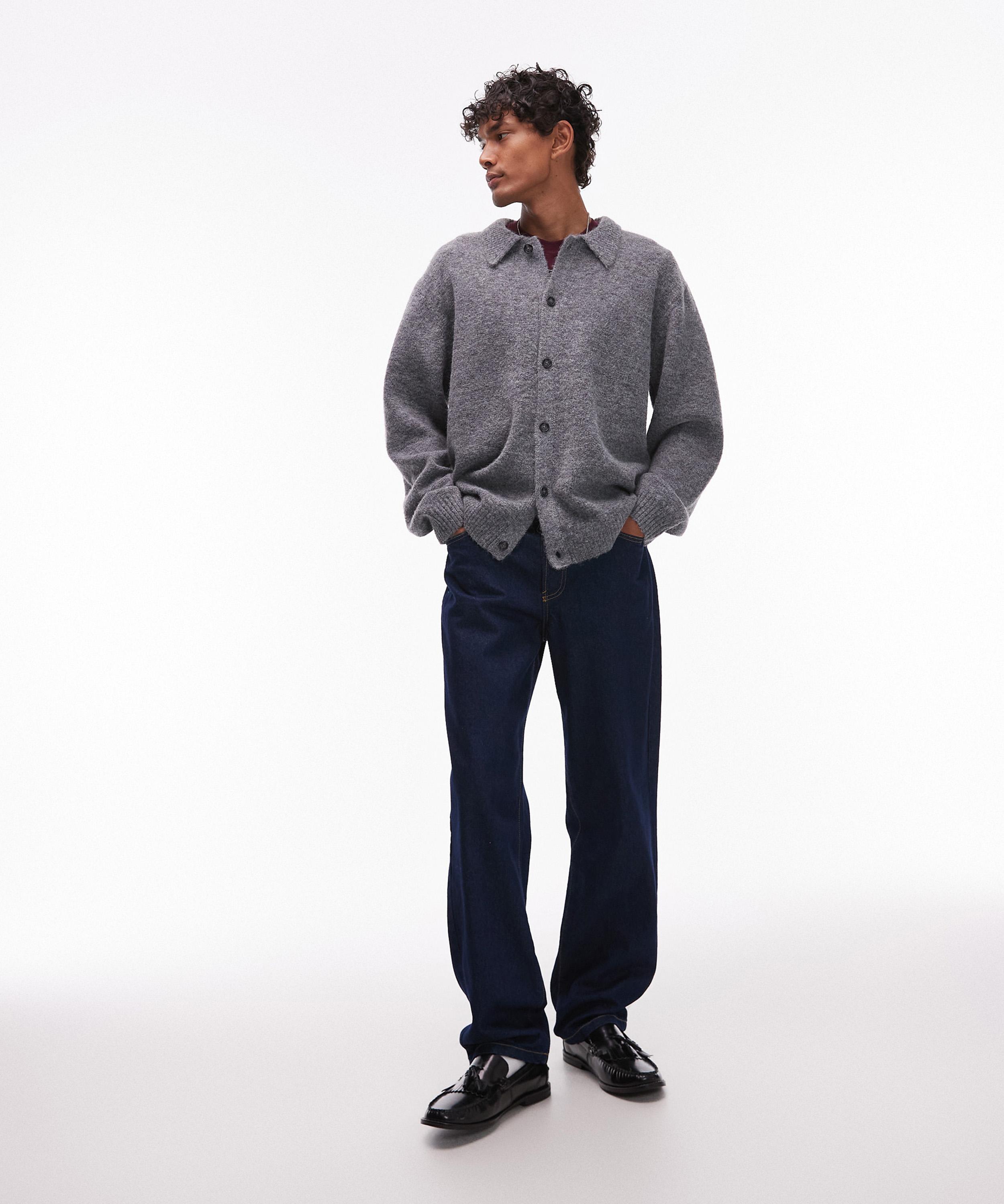 In a cosy mid-weight knit, this grey button-up cardigan is designed for an oversized fit with dropped shoulders and features a spread collar and ribbed trims for an effortlessly refined, relaxed look.