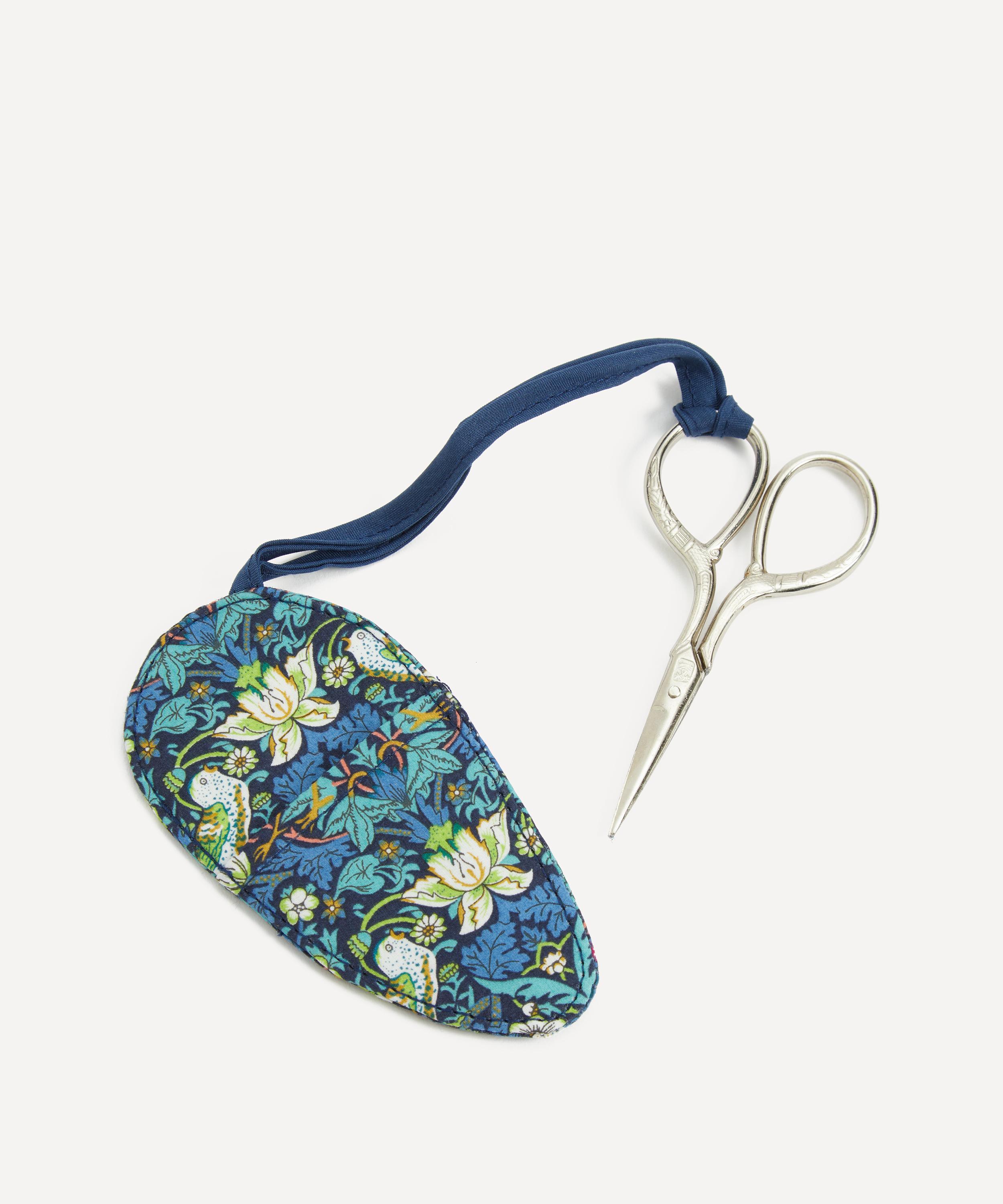 Liberty’s sewing scissors are a sweet and practical addition to your sewing kit - featuring a pretty metal design, with a handy ribbon loop that slots them into a cotton case showcasing Strawberry thief, a quintessential Liberty print drawn from our vast archive. These scissors make the perfect thoughtful gift for a crafty creative.