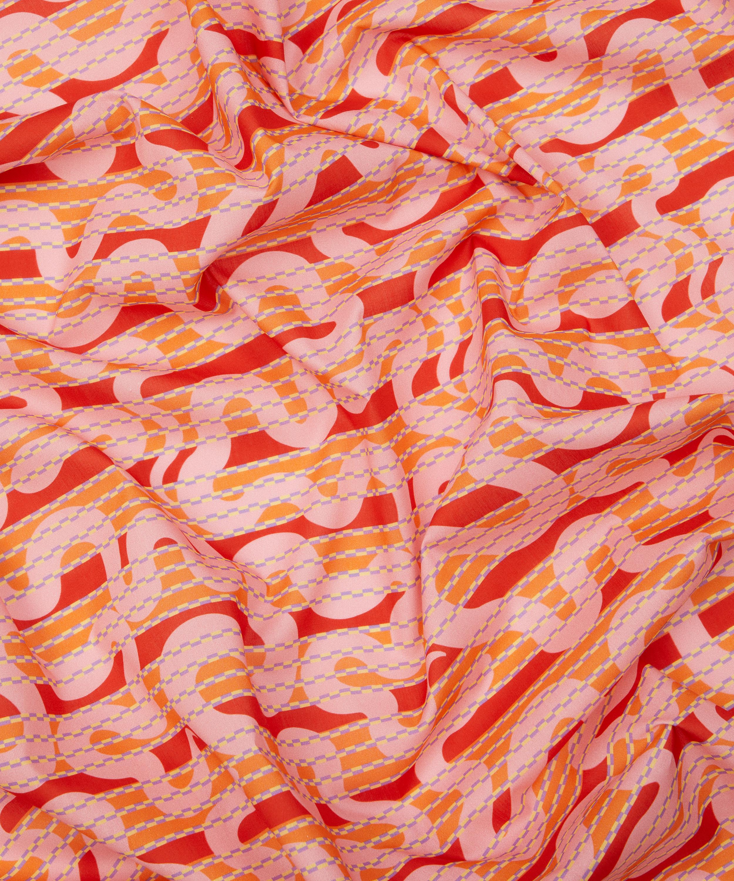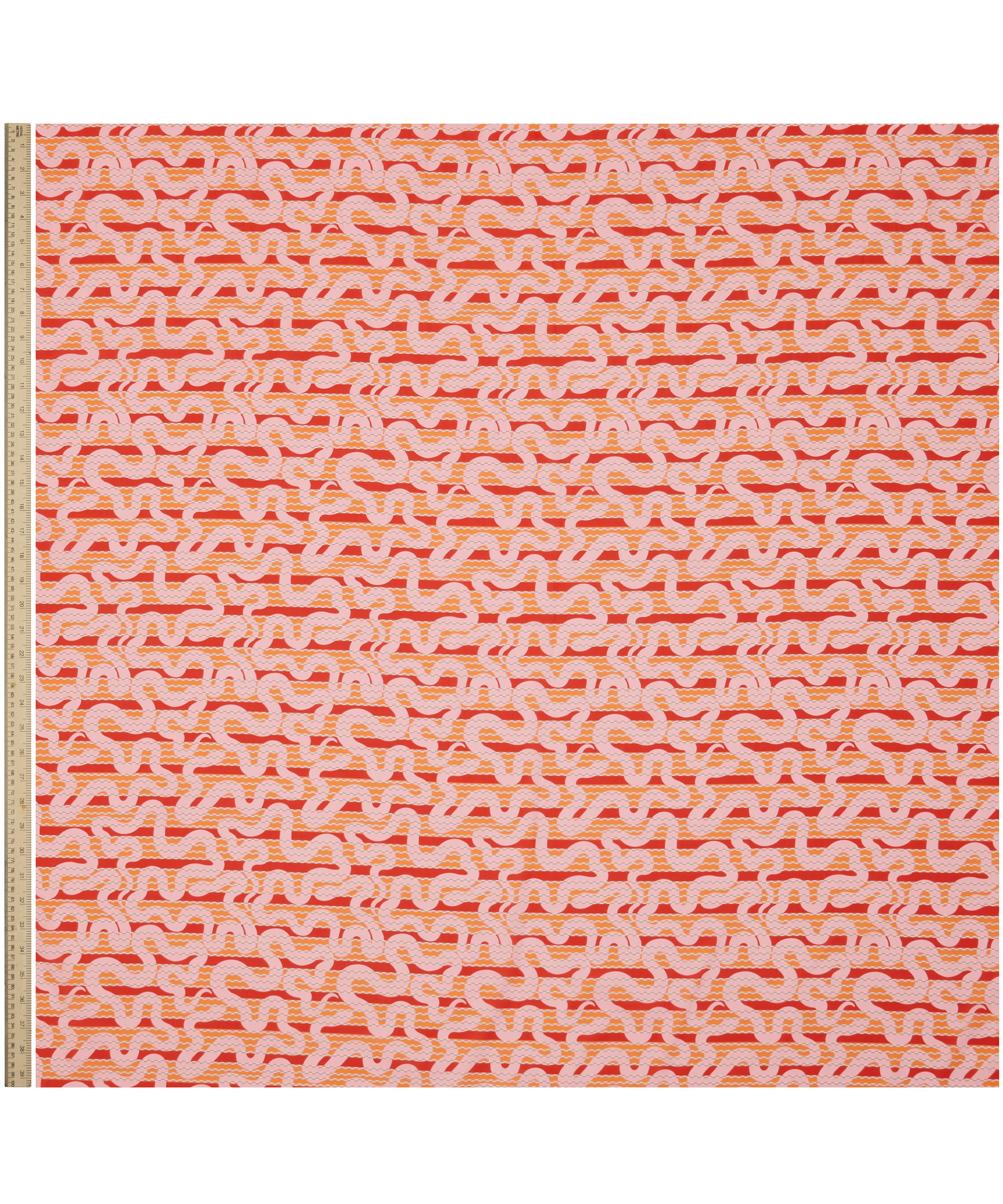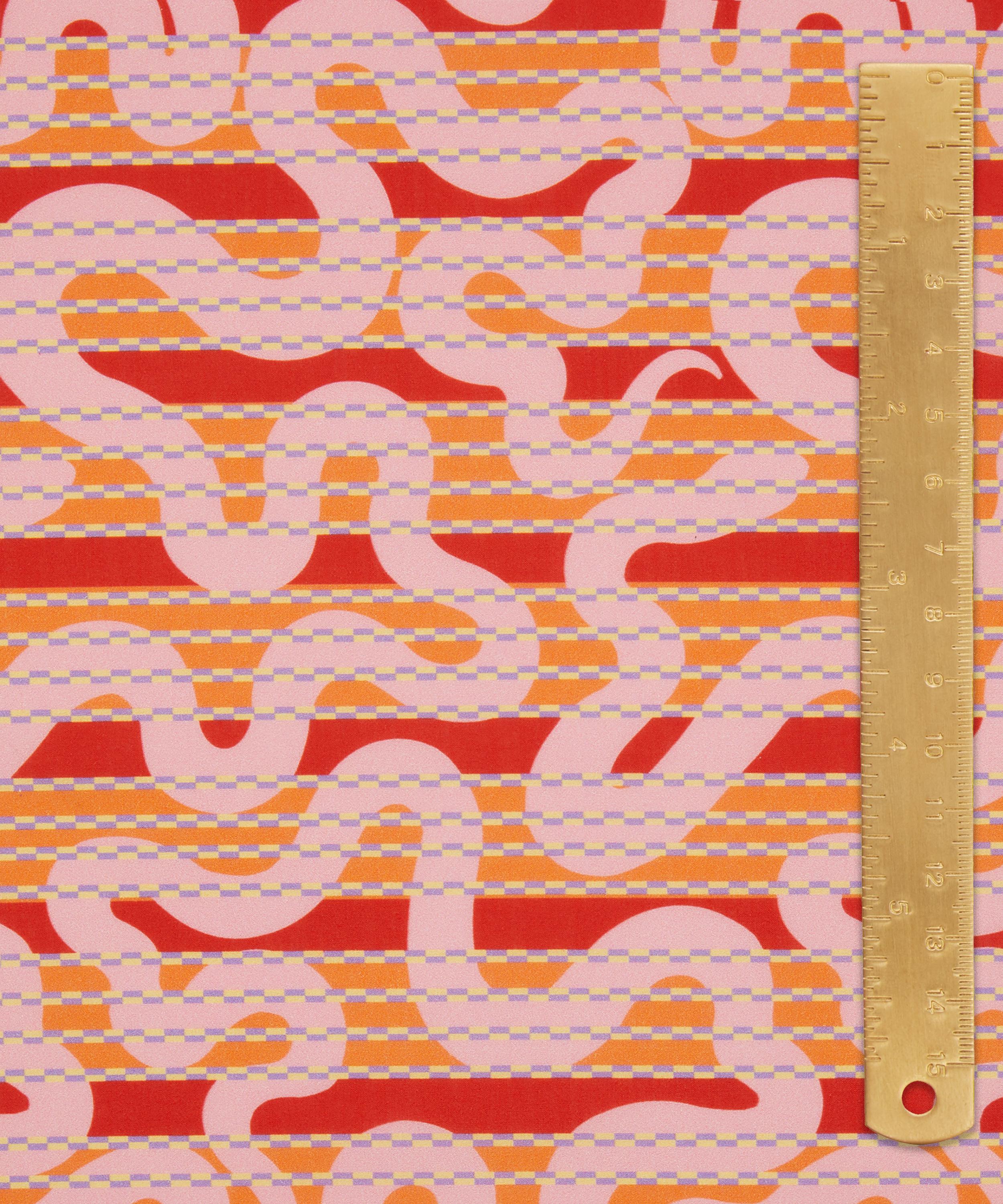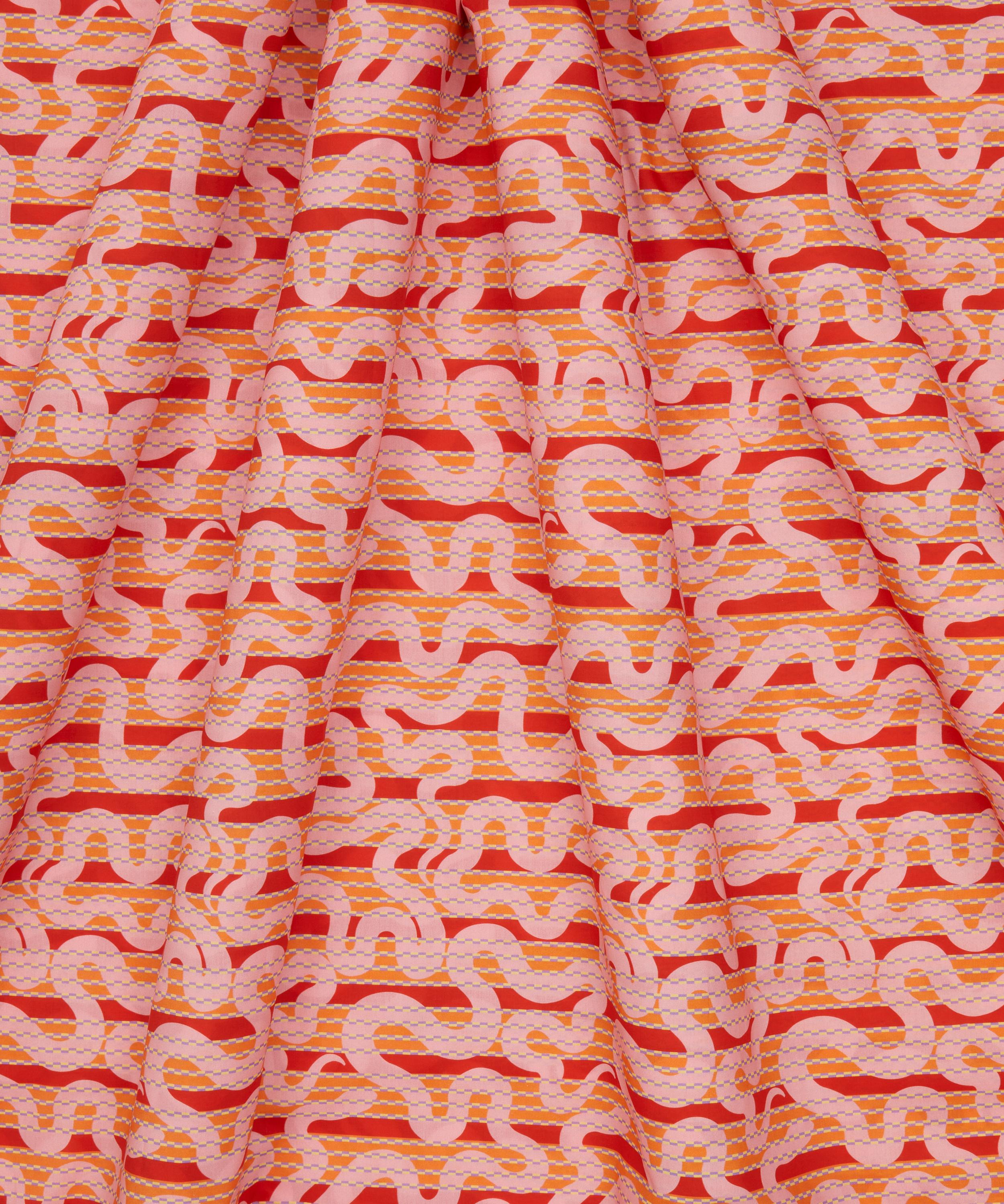 Adapted from an archival hand-painted artwork, this unique pattern cleverly combines serpentine finesse with geometric accents. The backdrop features an abstract representation of a swirling snake, while the top layer consists of a series of chequered stripes. A beautiful juxtaposition of styles makes a subtle nod to the Year of the Snake.