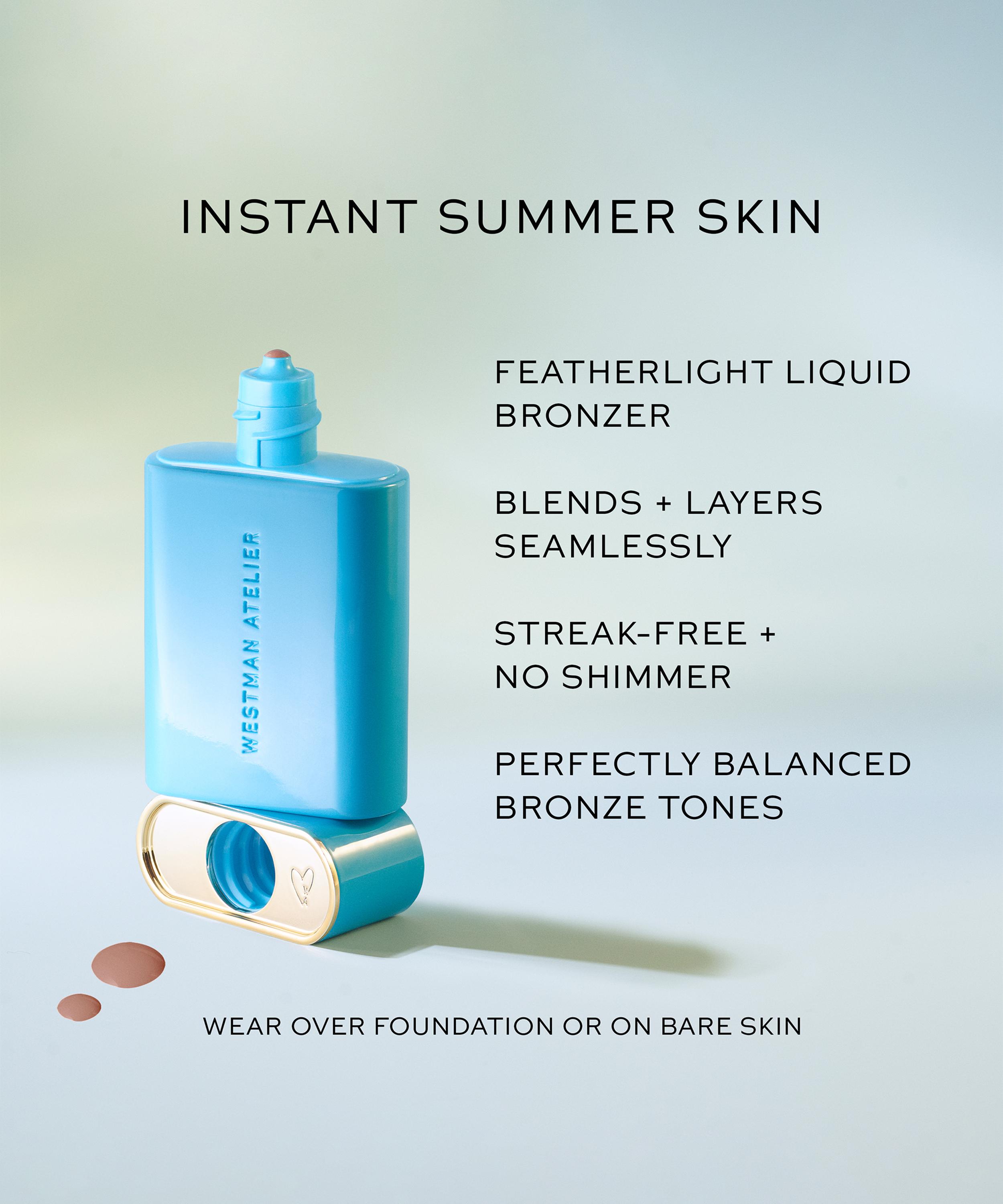 Westman Atelier's Sun Tone Bronzing Drops is a mattifying liquid bronzer that instantly delivers hydration-boosting skin care benefits for a firmed, sun-kissed appearance.