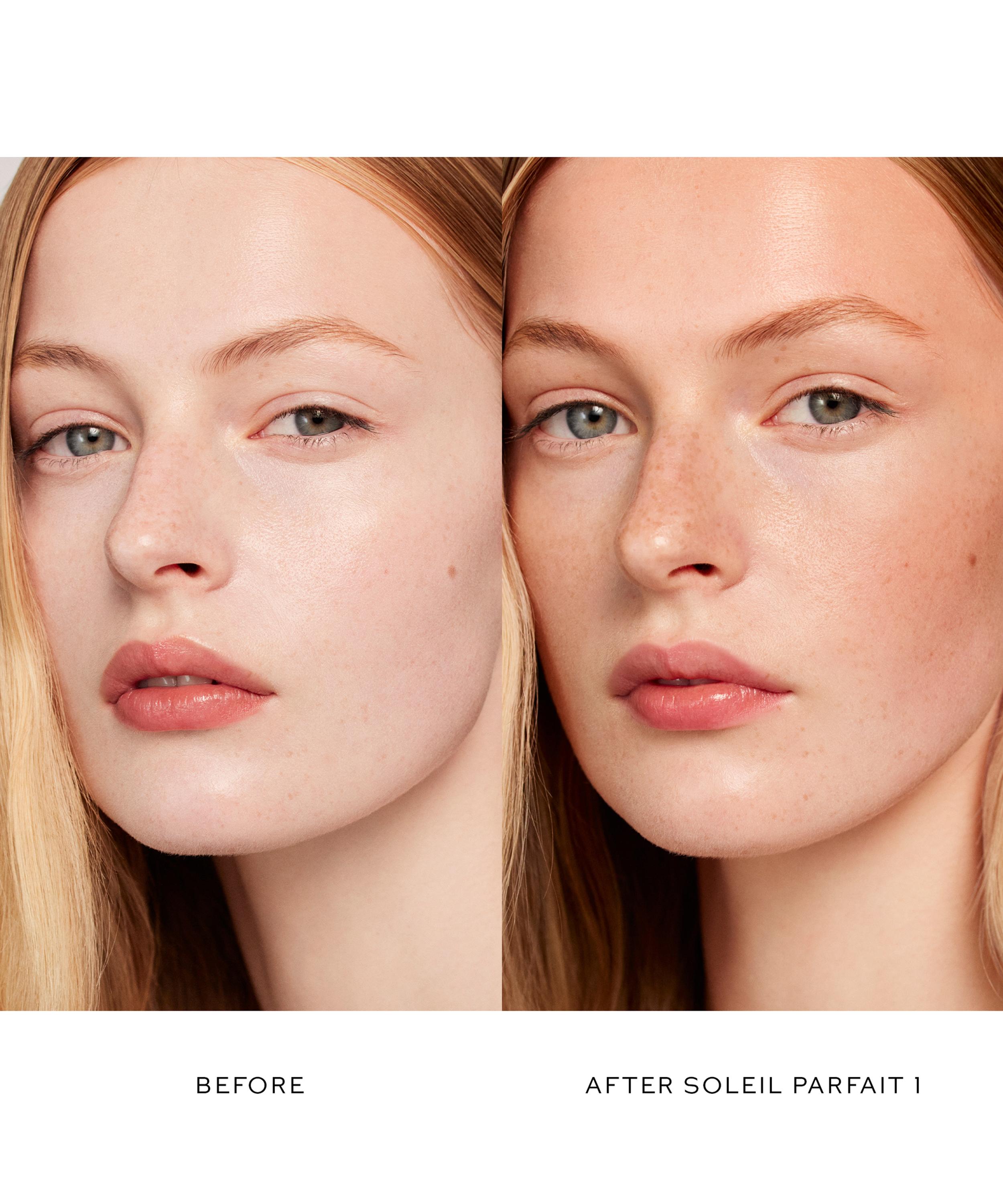 For a more targeted bronze, apply anywhere the sun would naturally hit—over cheeks, temples, forehead.