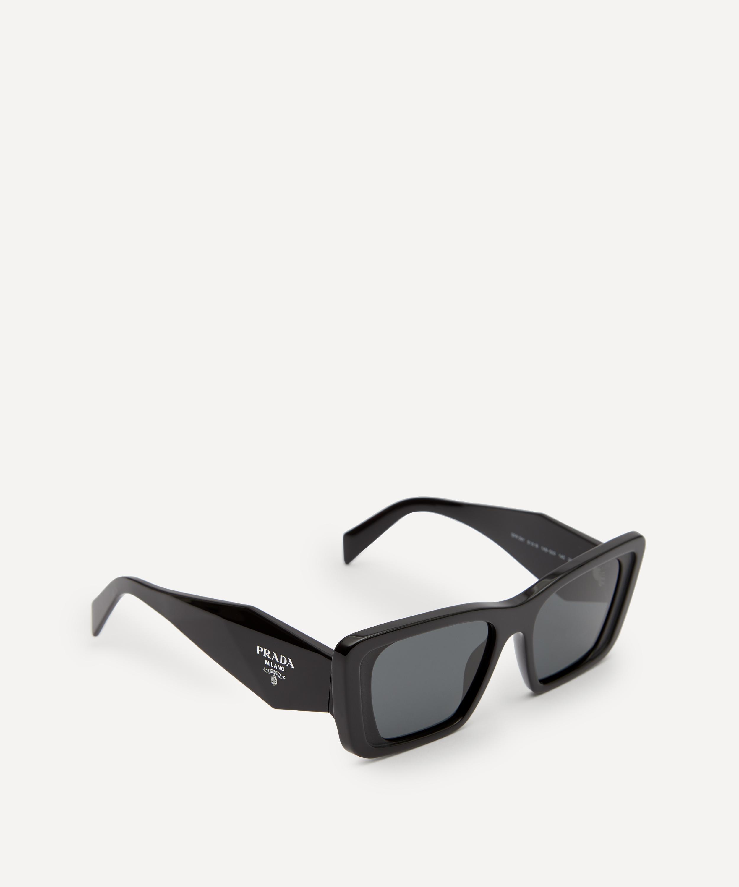 Crafted from premium black acetate with coordinating grey lenses, these sunglasses feature wide, angular temples with three-dimensional facets creating a sculptural, geometric finish. Signed off with the exclusive Prada logo on each side, they’re both effortlessly stylish and endlessly versatile - pair them with anything from casual denim to formal tailoring.