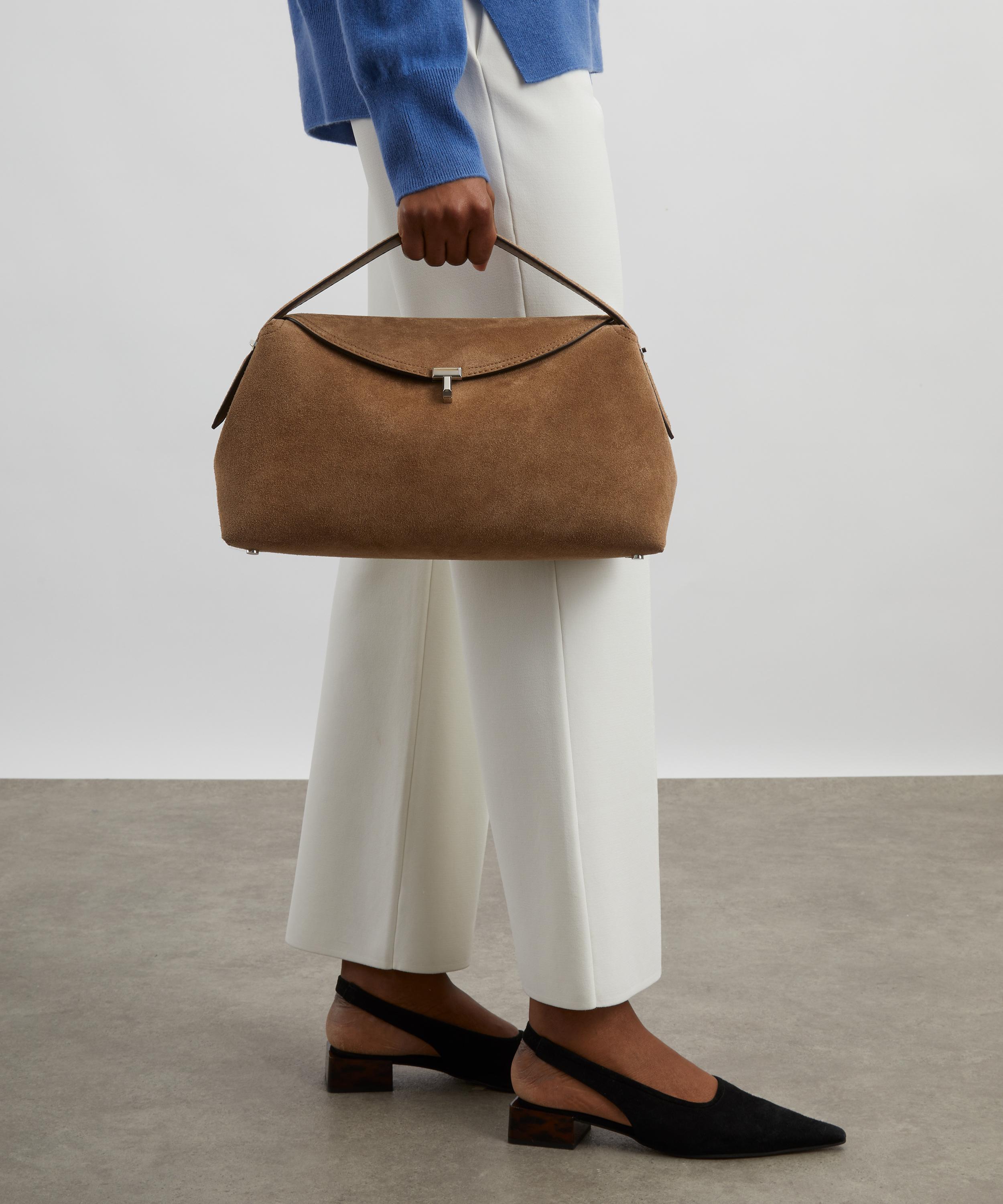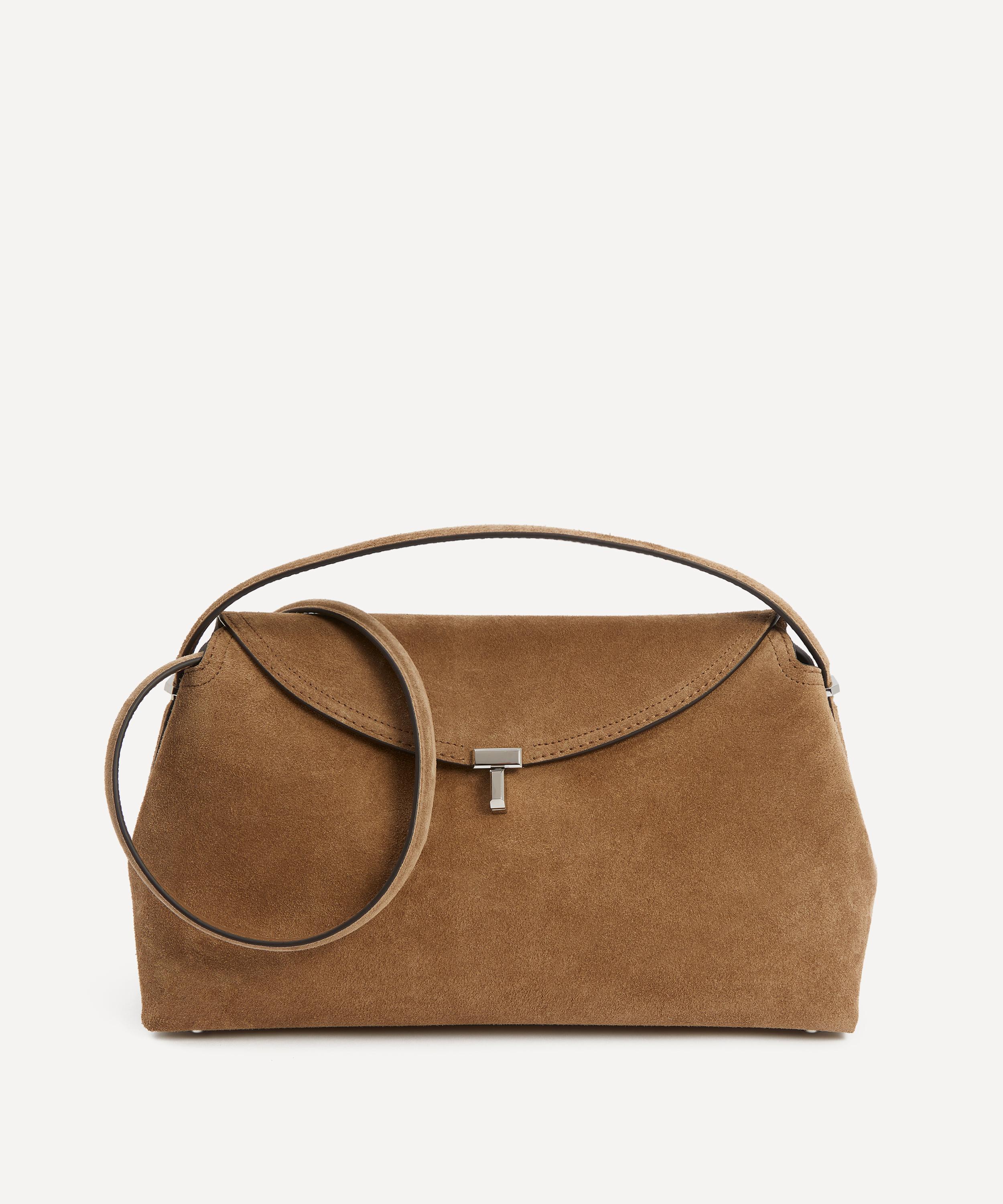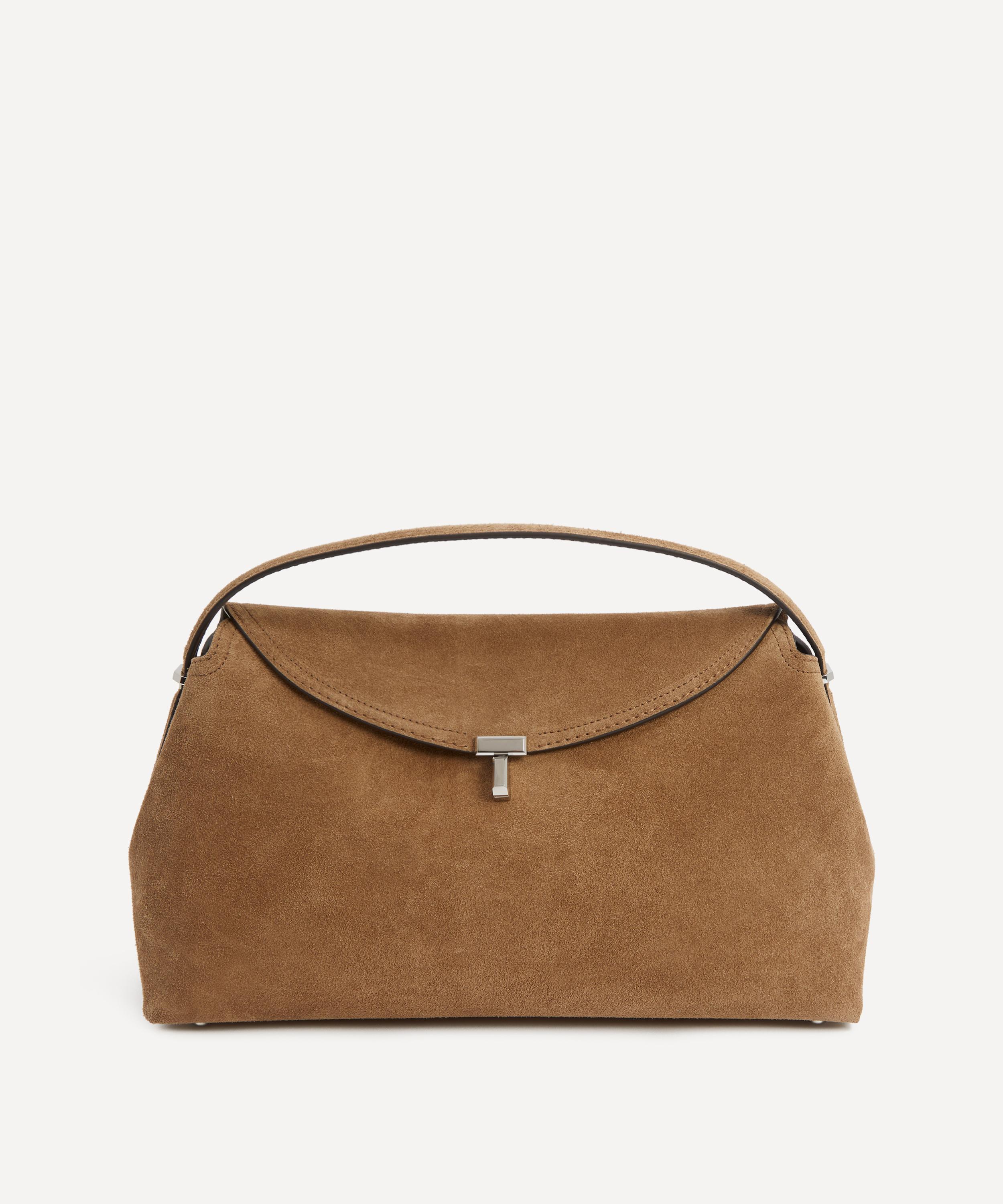 Crafted in Italy from smooth suede finished with a tonal top-stitched trim, this versatile bag features a fold-over flap opening secured by the style's signature twist lock, an internal slip pocket and a detachable, adjustable shoulder strap. Boasting a signature style that effortlessly reflects the brand’s elegant, minimalist aesthetic – style it across the body, over the shoulder or carry by hand.