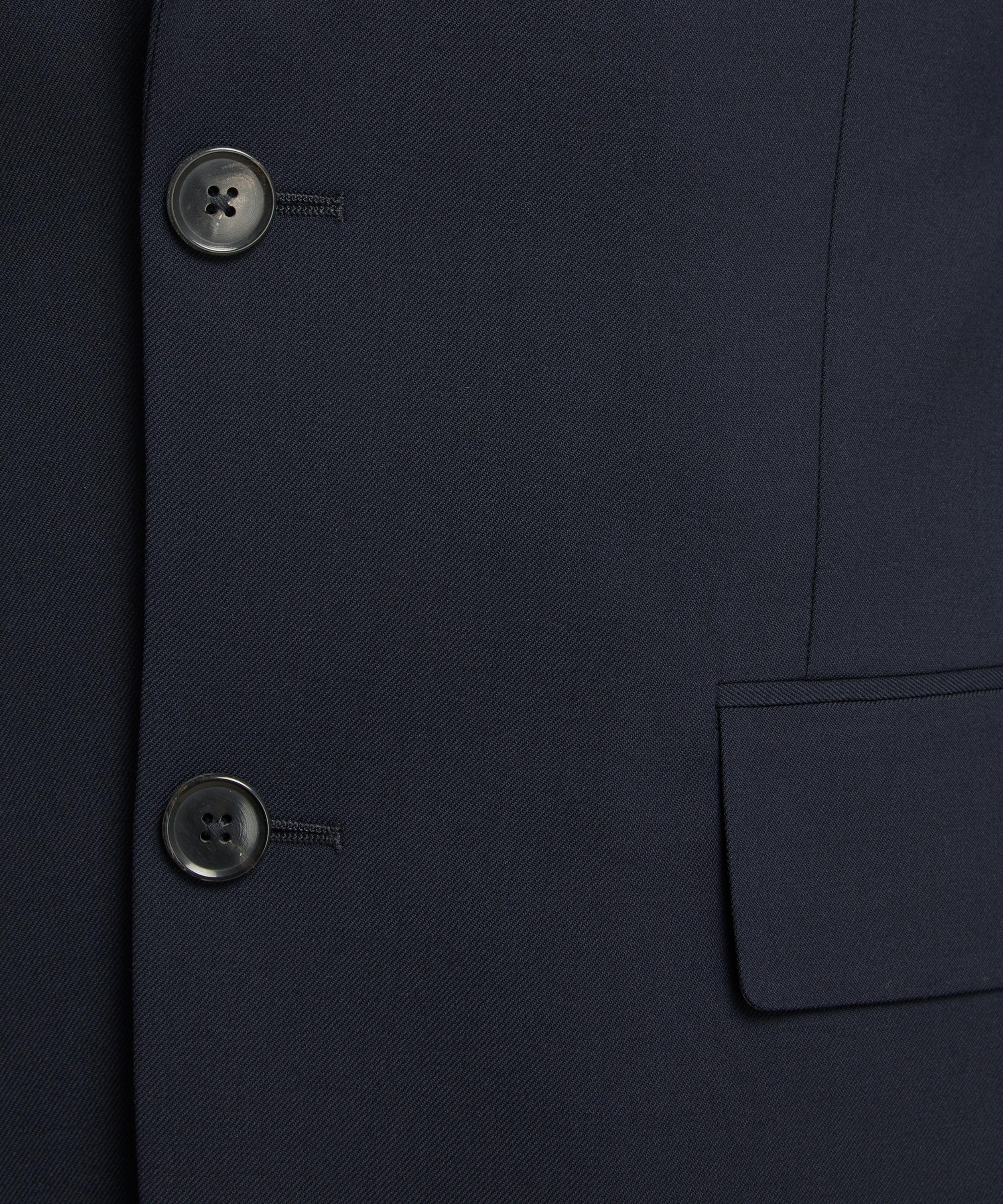 Crafted in Italy from premium wool, this two-piece suit offers a tailored fit and includes a two-button blazer with notched lapels and flap pockets, paired with matching straight-leg trousers finished with pressed creases for a refined, formal look.