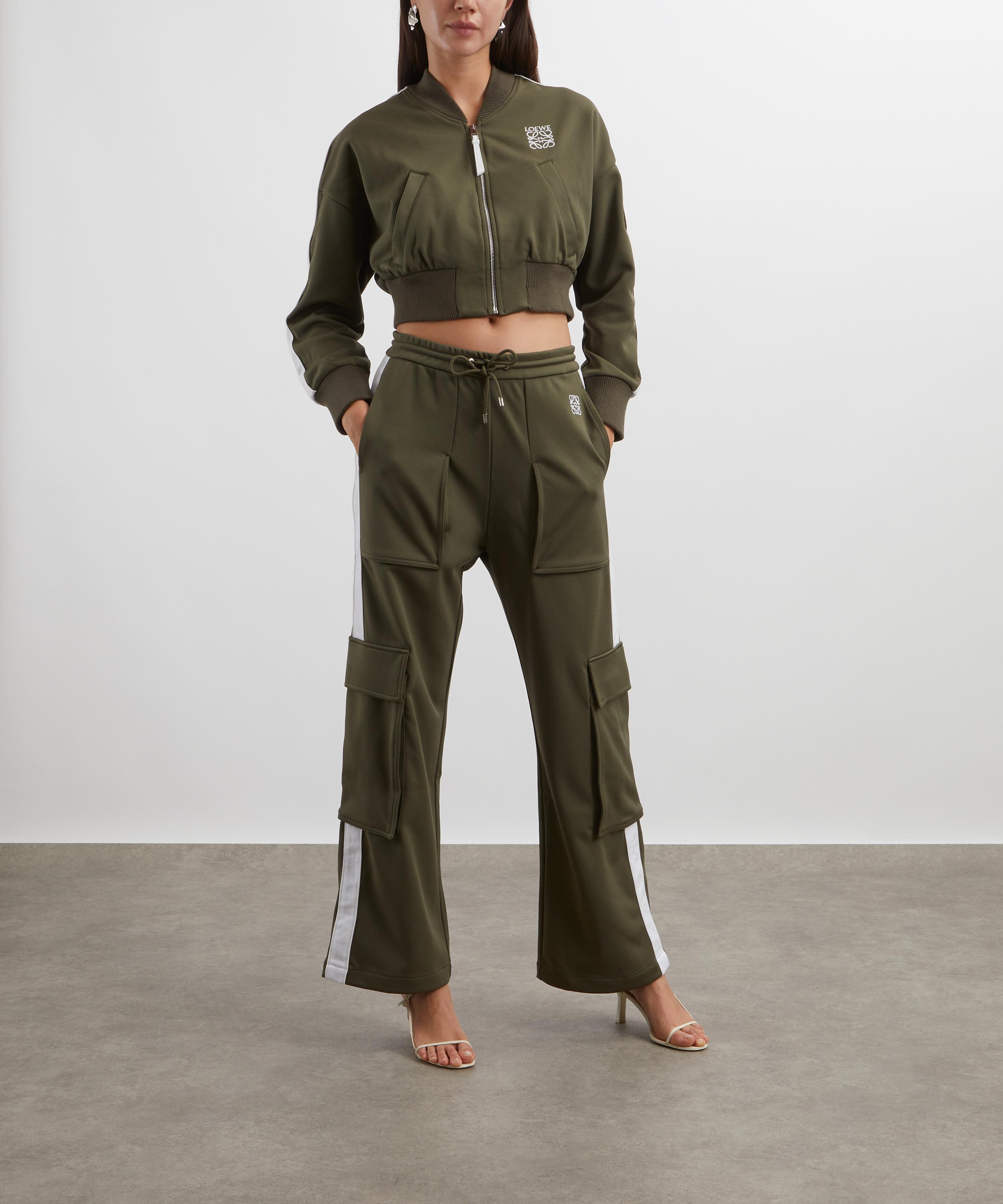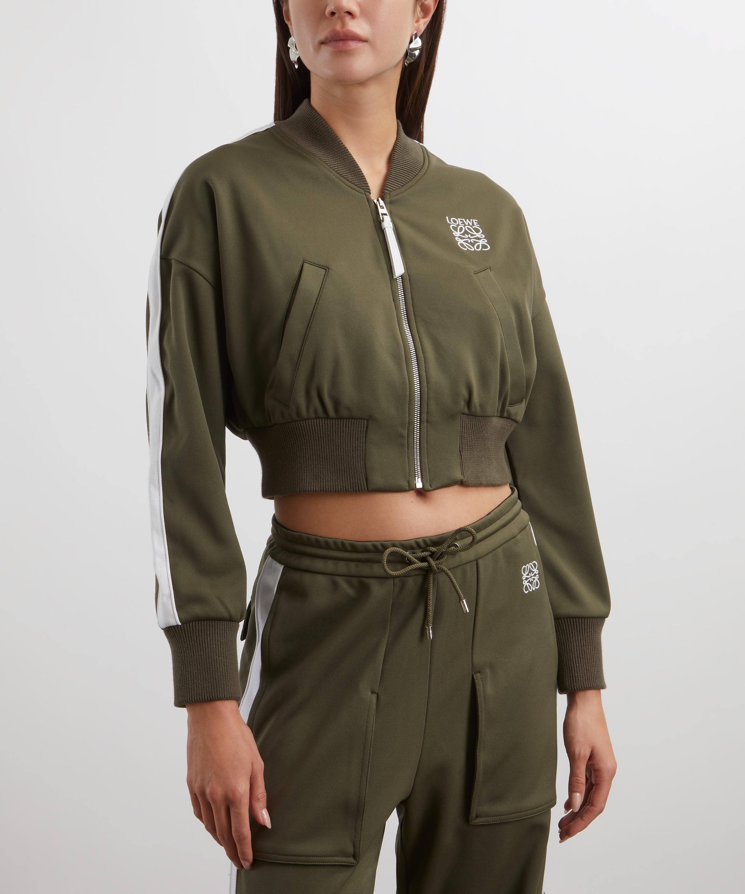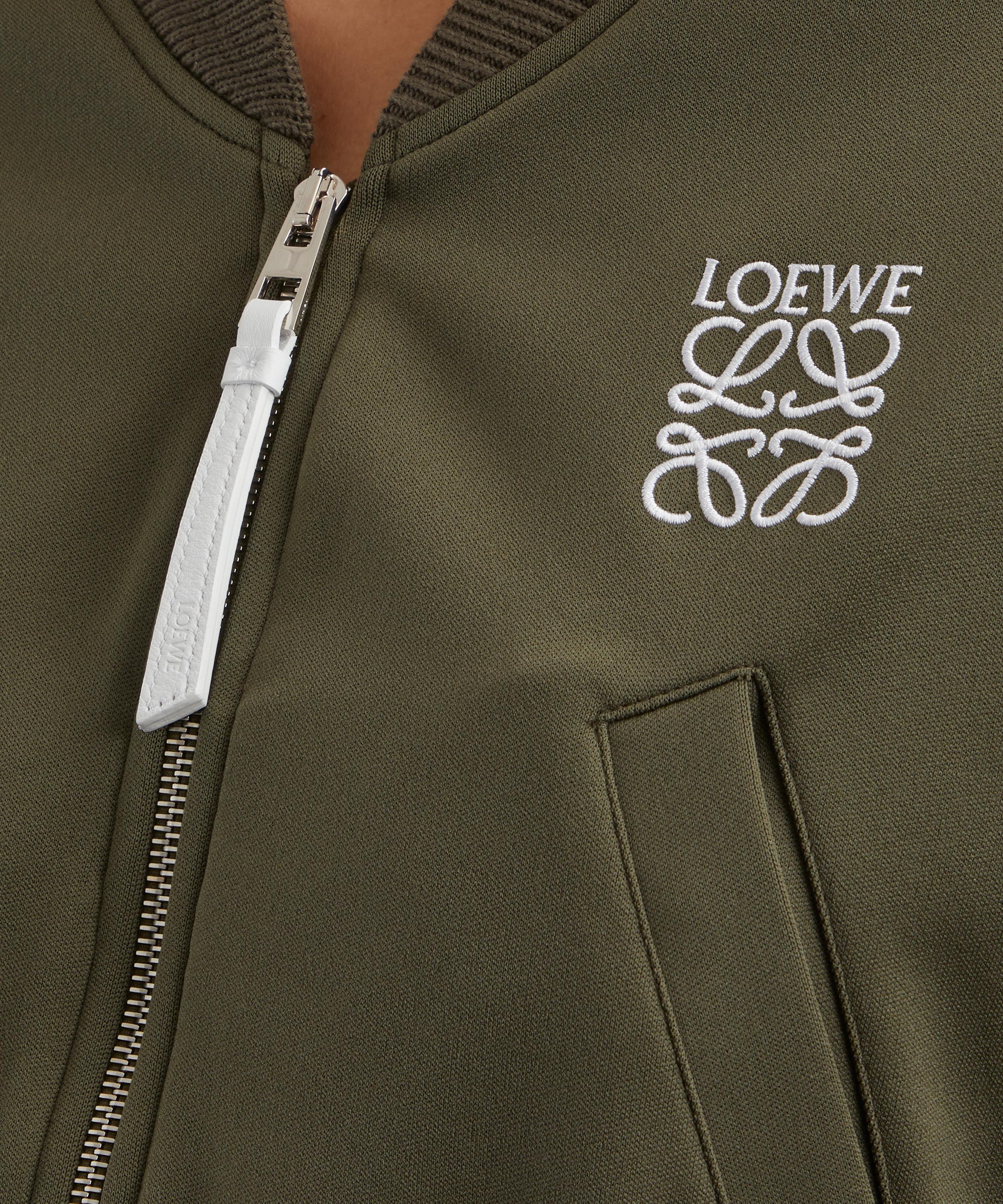 Offering a stylish blend of comfort and functionality, this khaki bomber jacket is made from technical jersey and lined with mesh, ensuring breathability and comfort. Its regular fit and short length makes it easy to layer, while its dropped shoulders enhance its relaxed aesthetic. Secured with a zip fastening featuring a sleek leather puller, it’s finished with LOEWE Anagram embroidery as a nod to the brand’s heritage.