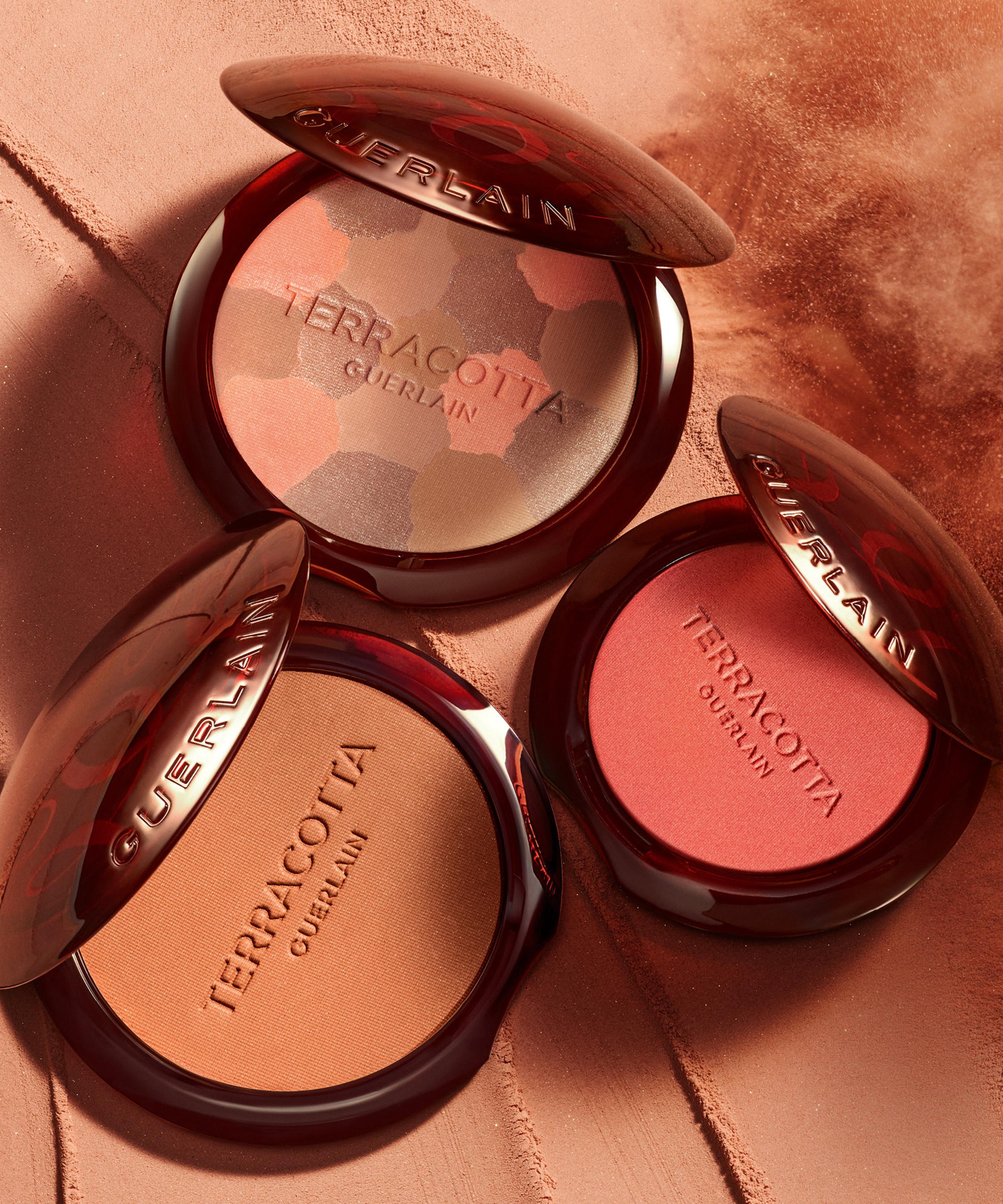 Harness a warm sun-kissed glow with GUERLAIN's Terracotta Healthy Glow Powder, a powder bronzer that will enhance any complexion and impart a flawless, fresh radiance. This luxuriously lightweight powder formula combines a satin bronzing shade, a tone-on-tone matte shade, a vibrant blush shade and a universal luminiser that work in harmony to deliver a natural healthy-looking glow all year long.