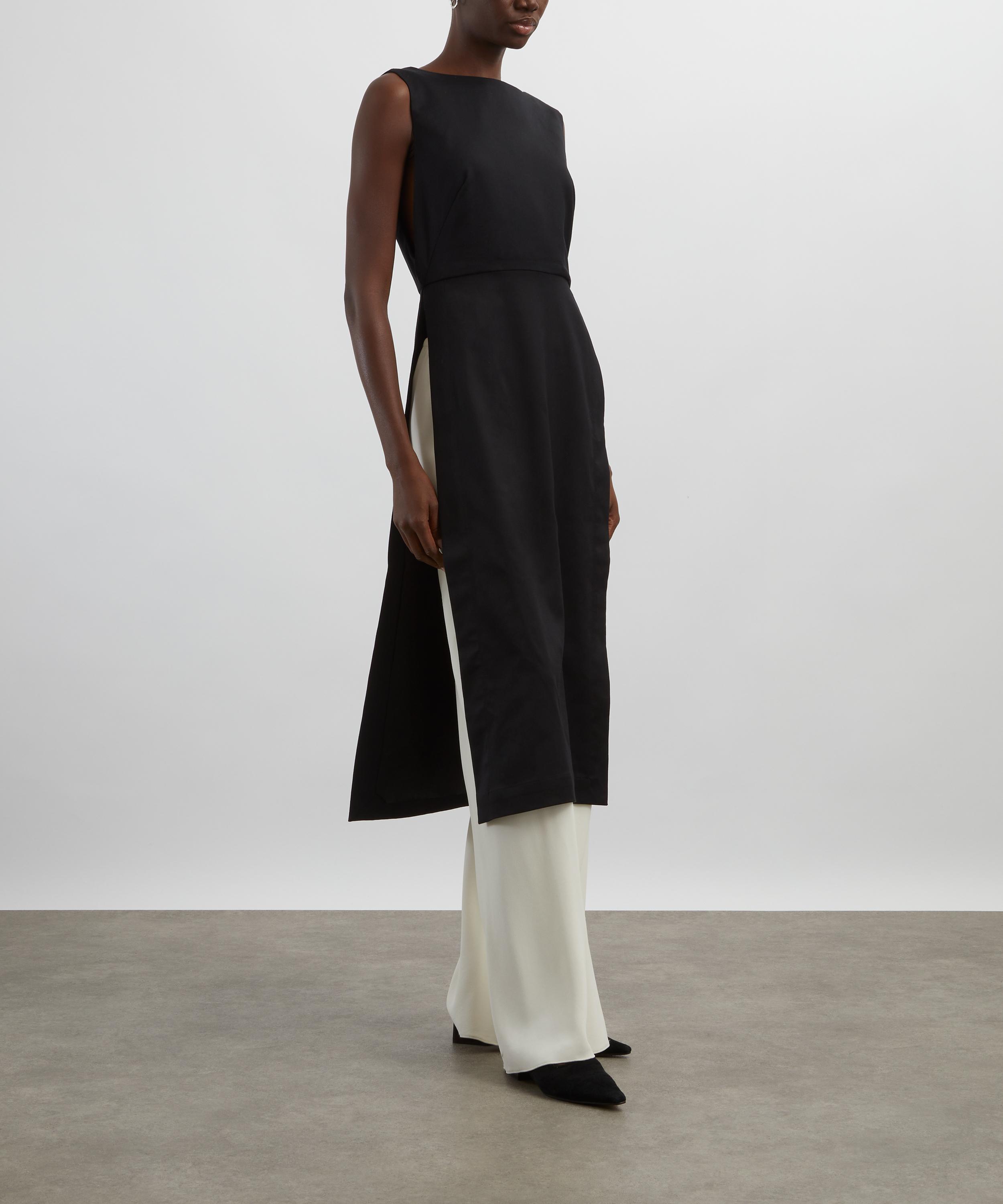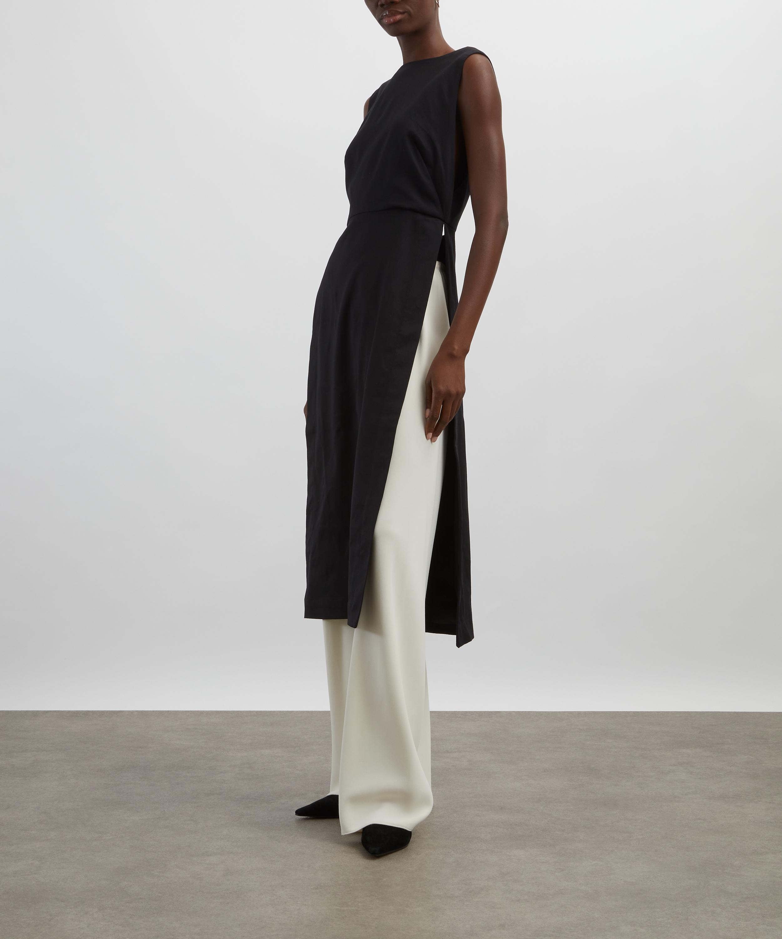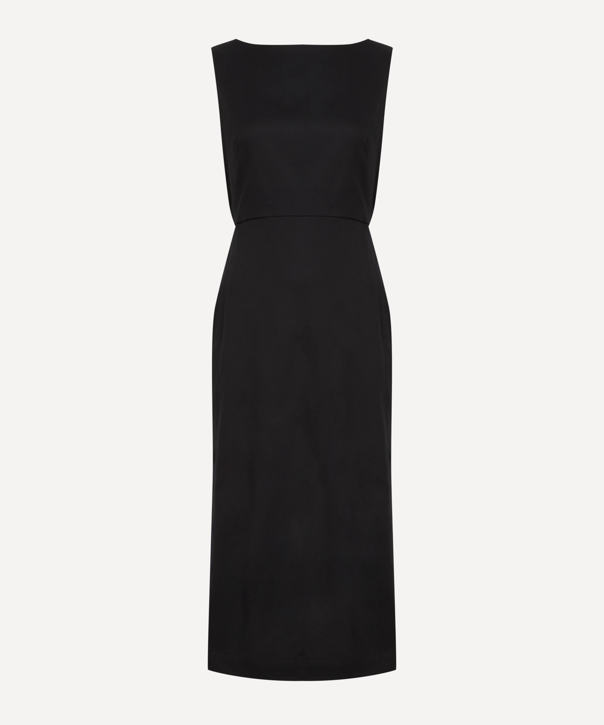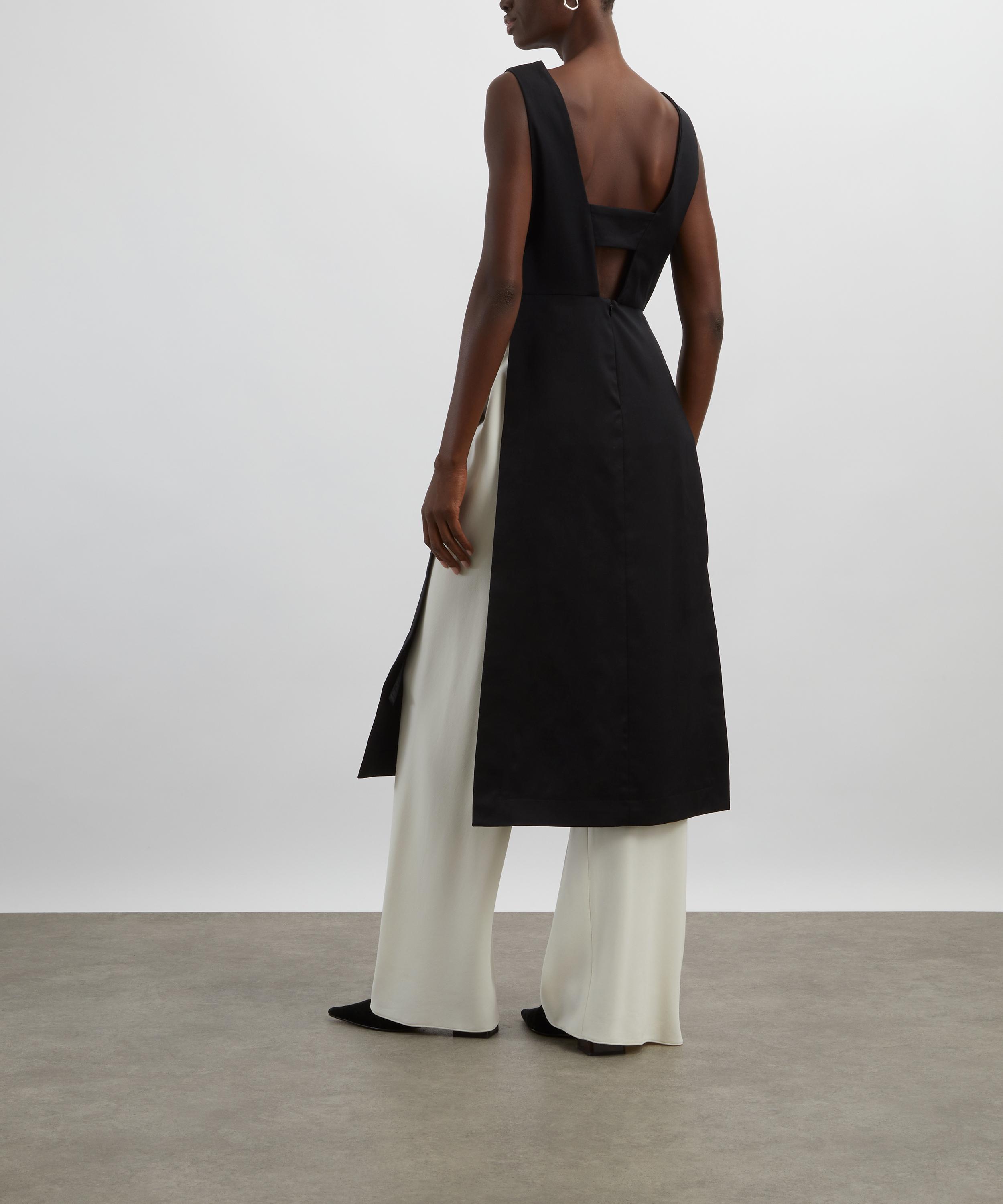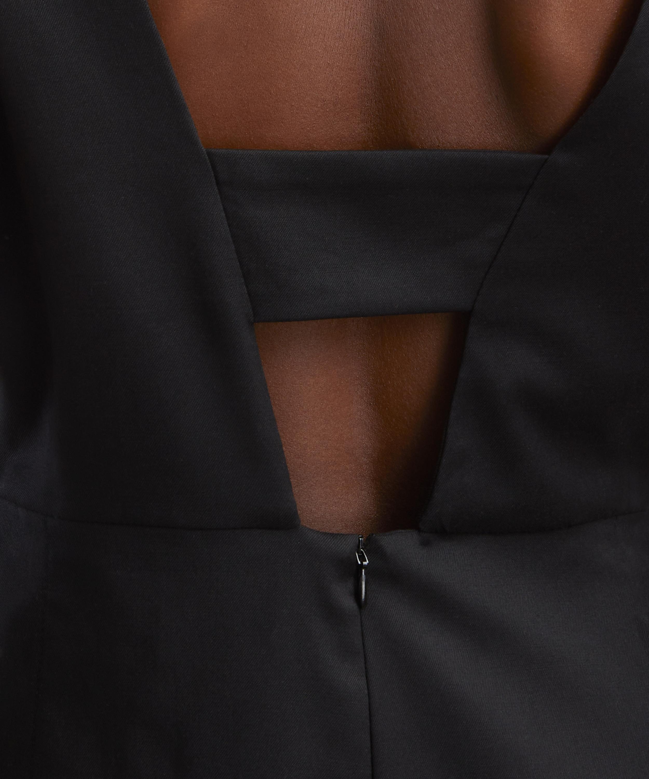 Crafted from a wool–TENCEL™ lyocell blend, the Tessa midi top features a sculpted, sleeveless silhouette with clean front lines and a striking open back framed by bold straps.