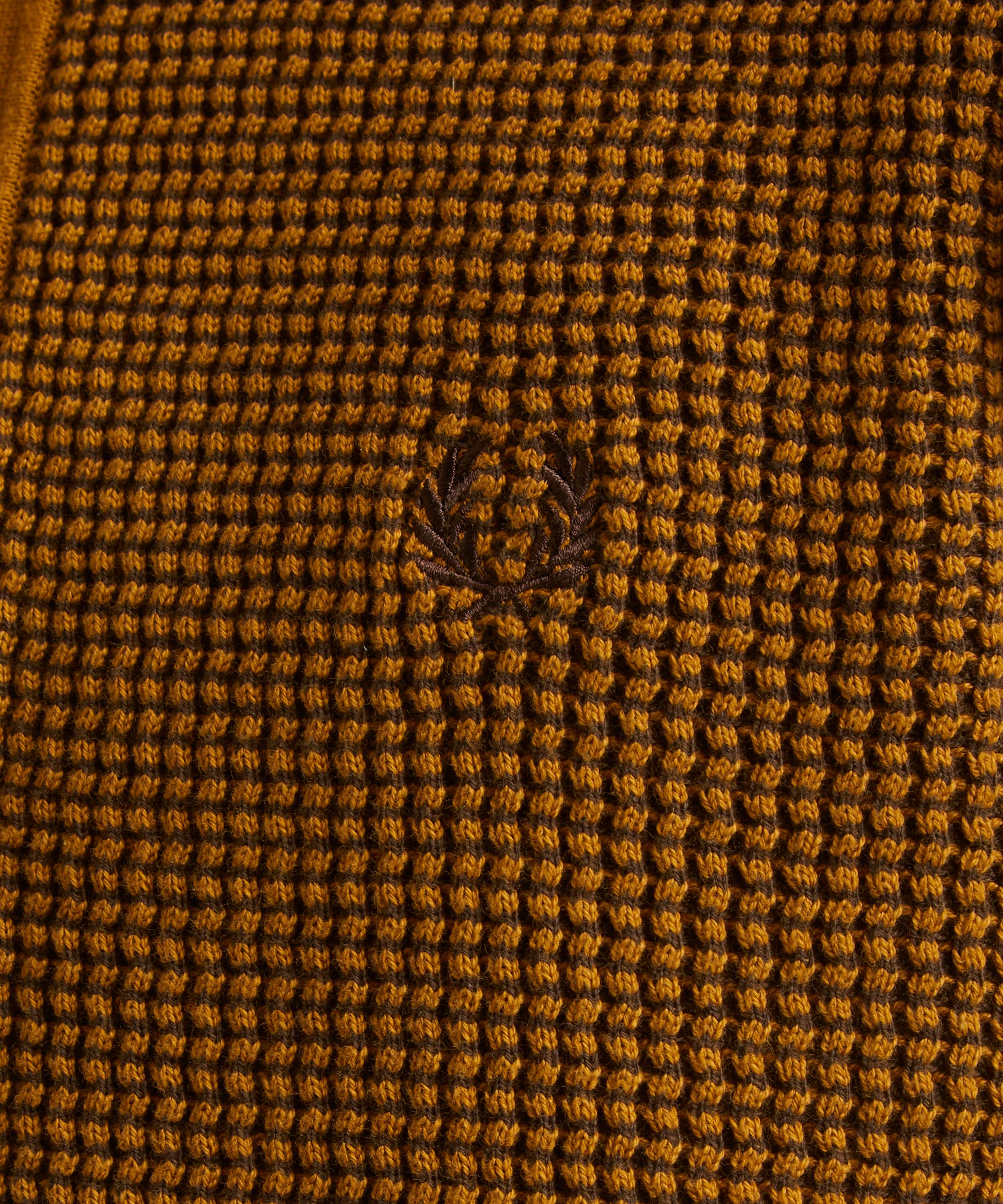 Constructed from a two-tone textured knit, this whisky-brown shirt features a classic flat-knit collar with a three-button placket. Timeless and instantly recognisable with signature twin tipping detail at the collar and cuffs, it’s finished with Fred Perry’s trademark Laurel Wreath embroidered on the chest.
