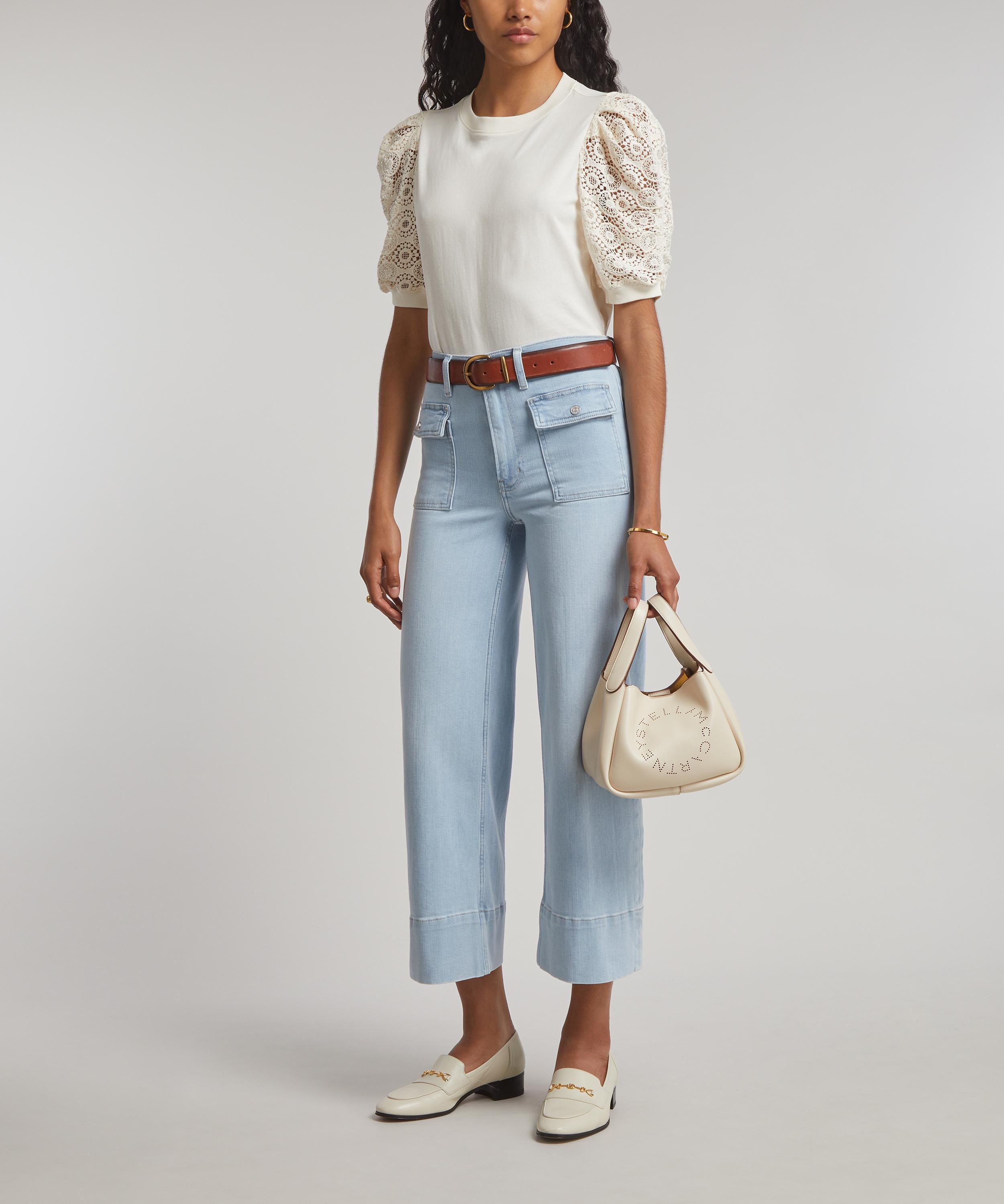 These high-rise jeans are cut from light-wash denim for a straight-leg fit, and have been fitted with wide, cropped hems, and two front patch pockets for a vintage-inspired flair – an effortlessly versatile style, they are perfect for showing off your favourite heels or flats.