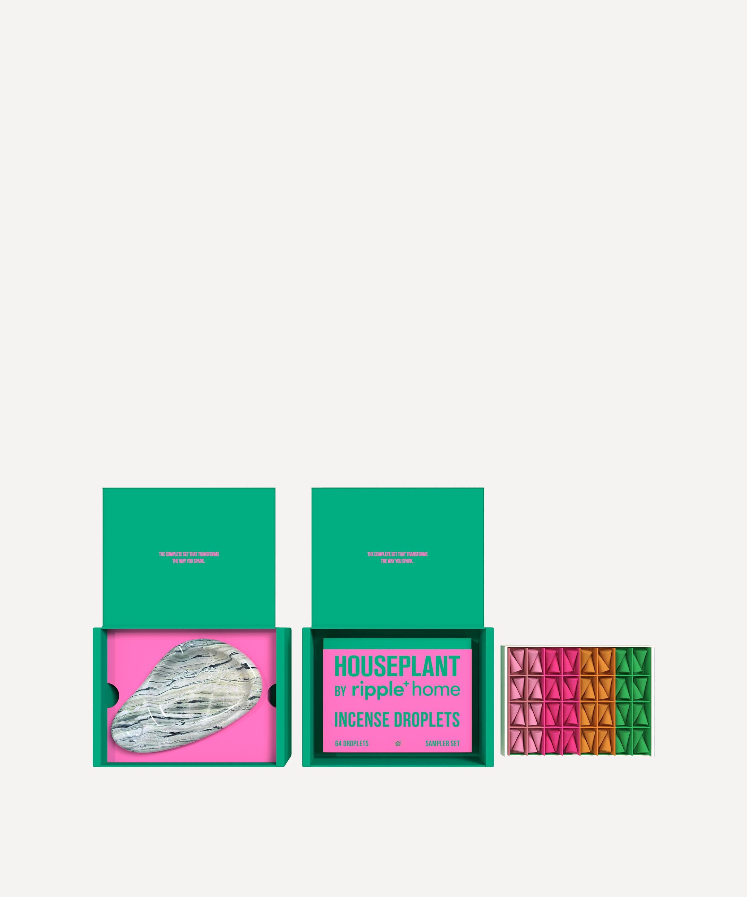 Featuring 48 droplets of incense, paired with a hand-sculpted marble ashtray, the set is bound to deliver 480+ minutes of luxurious, fragrant escape – infused with an ensemble of distinct aromas, ranging from dreamy herbs to warm, baked goods.