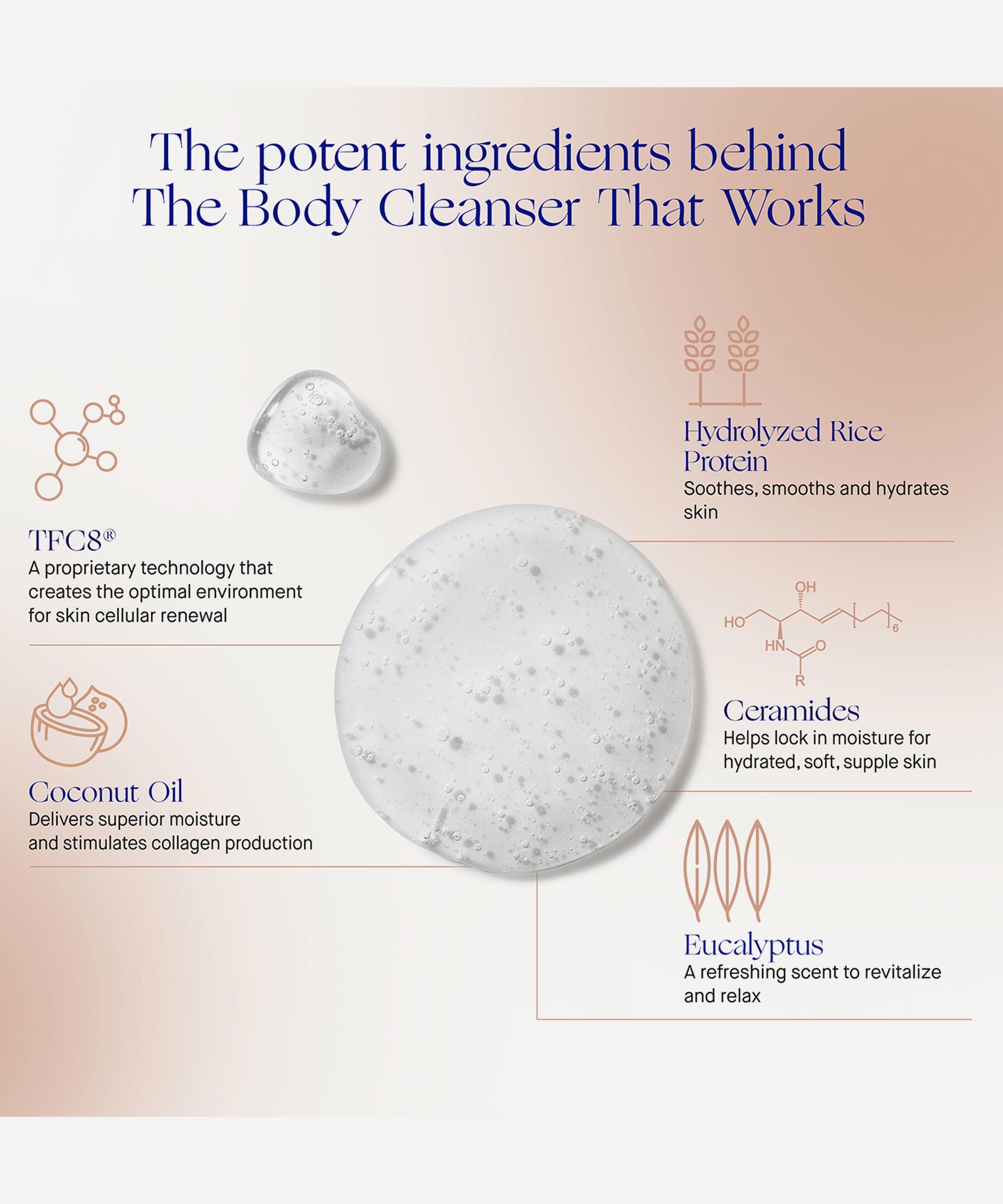 Apply The Body Cleanser to damp skin and gently massage into a lather. Rinse thoroughly and dry skin.