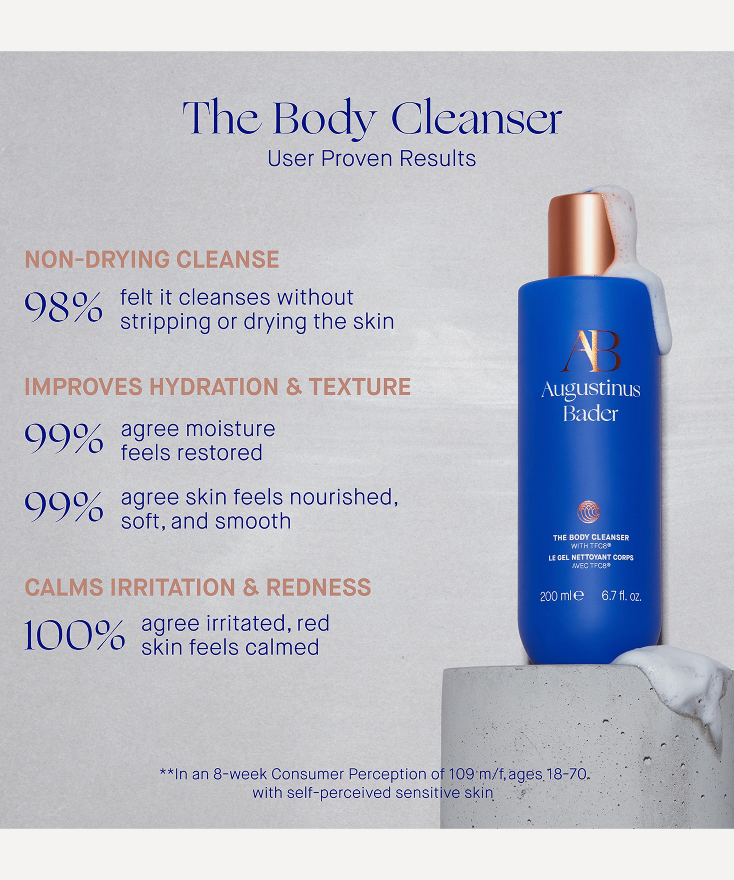 Replenishing your skin with every wash, The Body Cleanser from Augustinus Bader is a gently purifying formula that removes impurities and grime, without drying - restoring your complexion to a silky smooth, youthful state. Bringing cutting-edge science to the masses, this hydrating body cleanser utilises the brand’s exclusive TFC8®, a proprietary blend of amino acids, high-grade vitamins, and synthesised molecules that infuse key nutrients into your skin and support the body’s natural renewal process, while potent plant compounds address the causes of dryness and irritation.