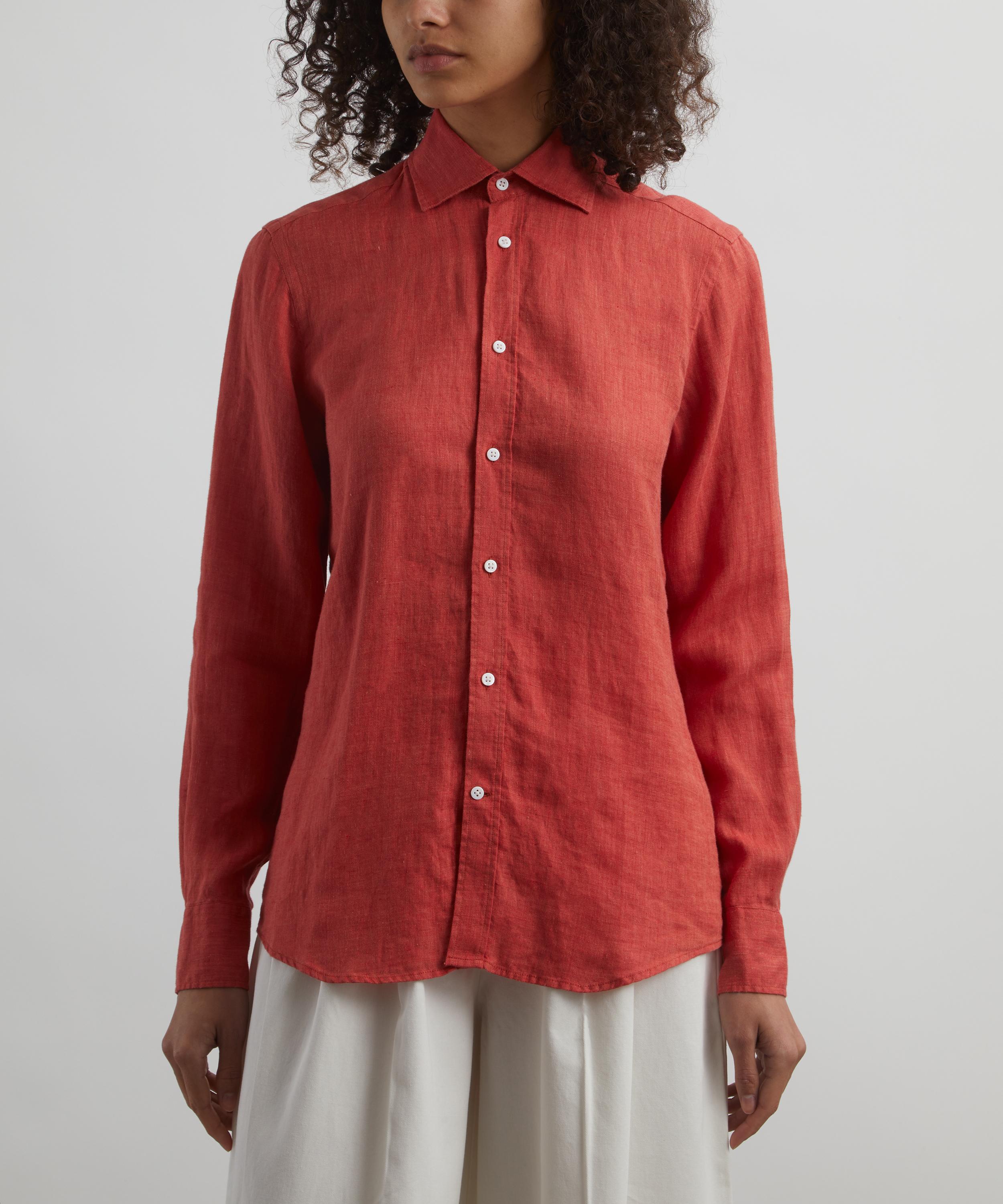 Inspired by British heritage and timeless style, this long-sleeve shirt has been cut from a luxuriously soft and breathable linen to a relaxed fit, featuring slightly dropped shoulders, two pleats across the yoke, and a front button fastening.