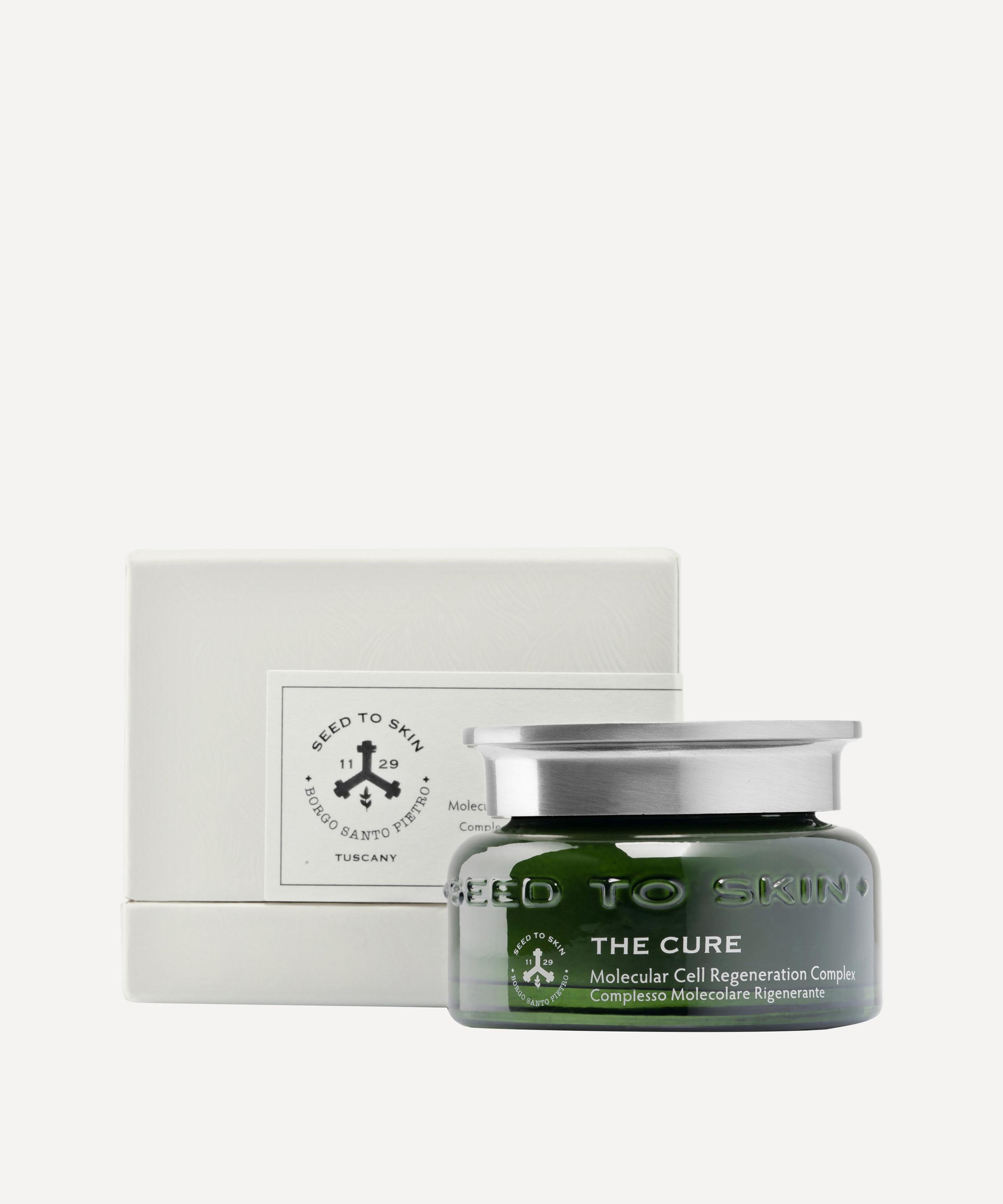 The Cure molecular cell regeneration complex from SEED TO SKIN – the skincare line born of the Tuscan landscape, where every product is pioneered at the onsite laboratory at Borgo Santo Pietro, a restored 13th century villa come five-star boutique retreat, farm and culinary school.