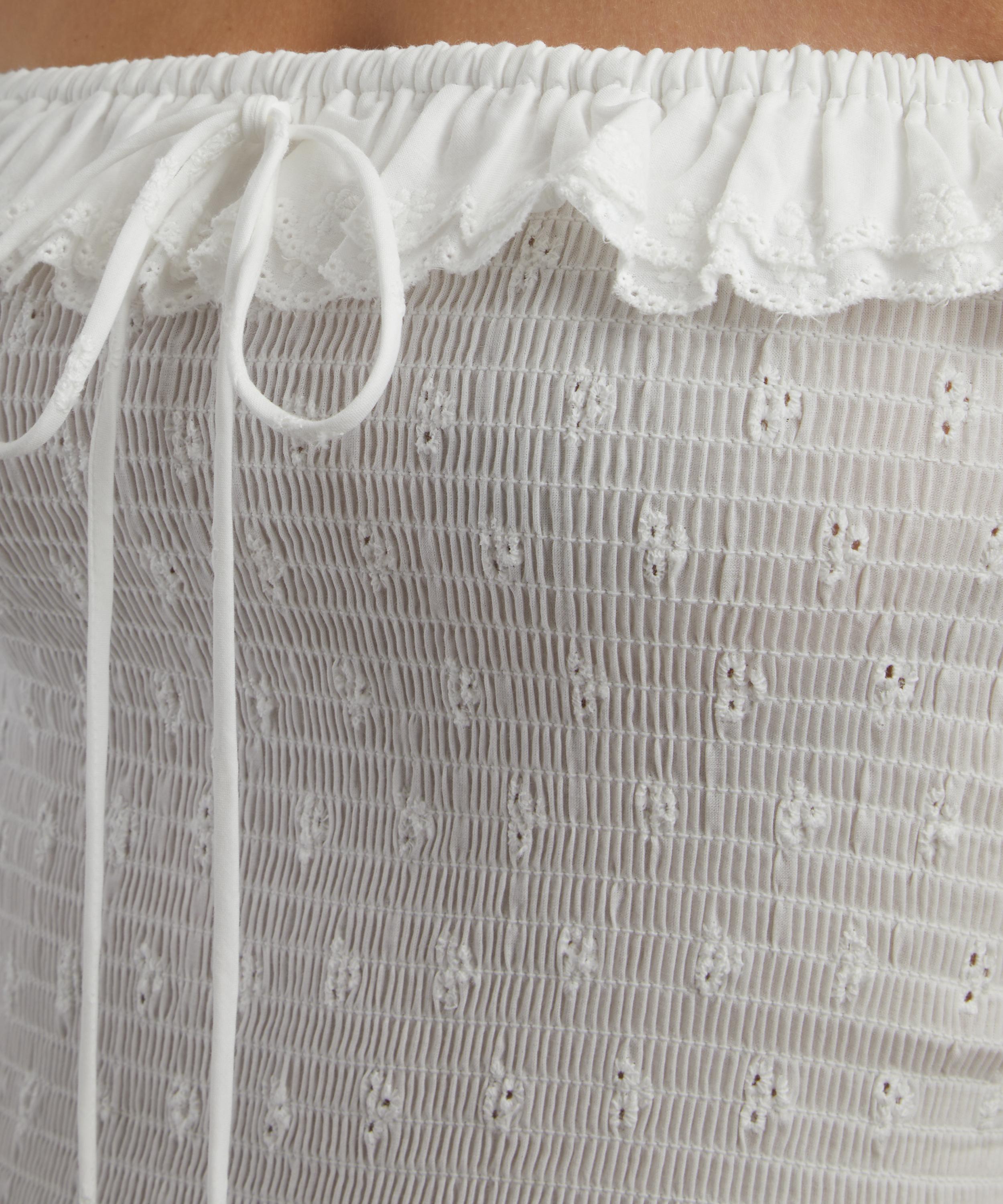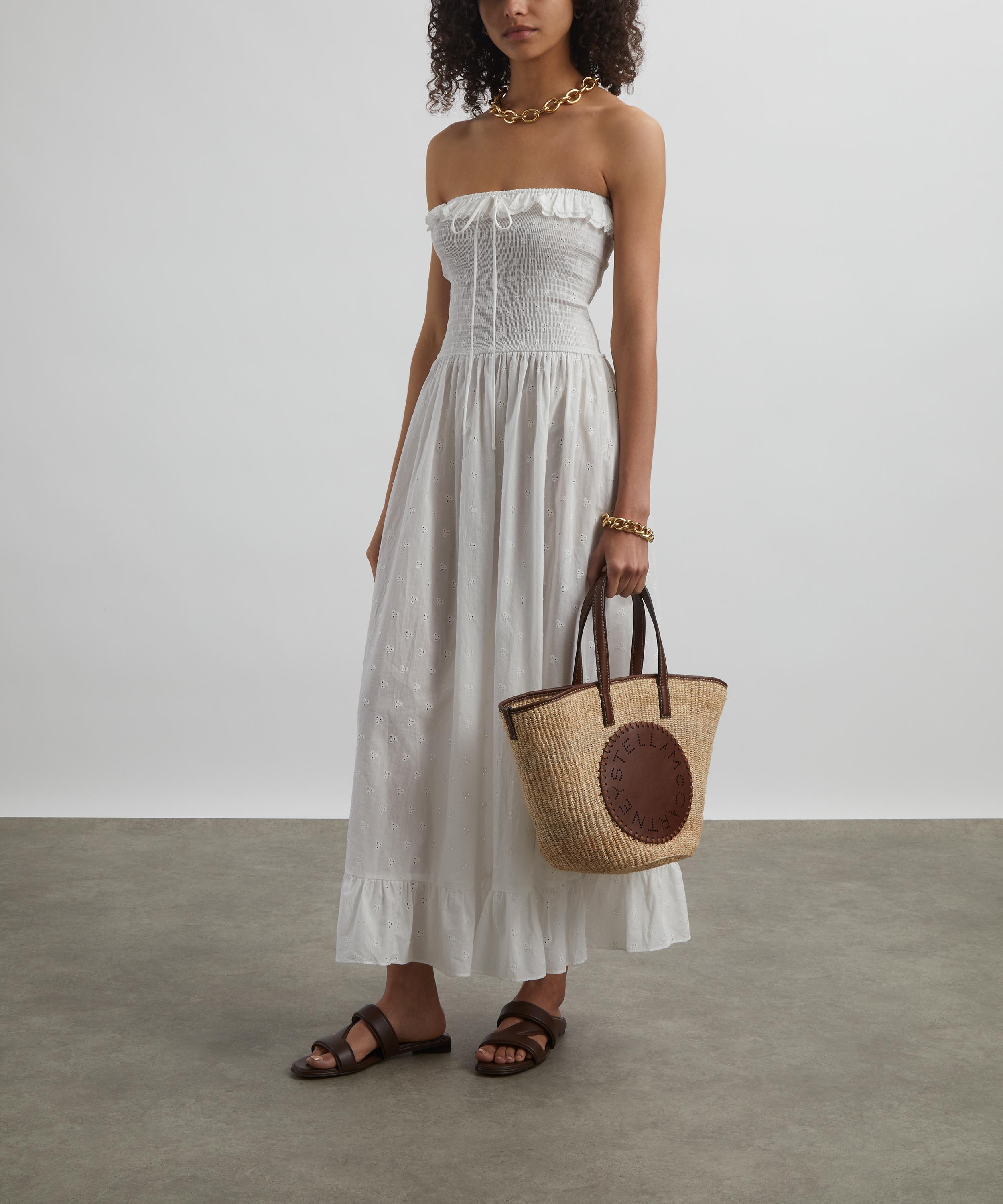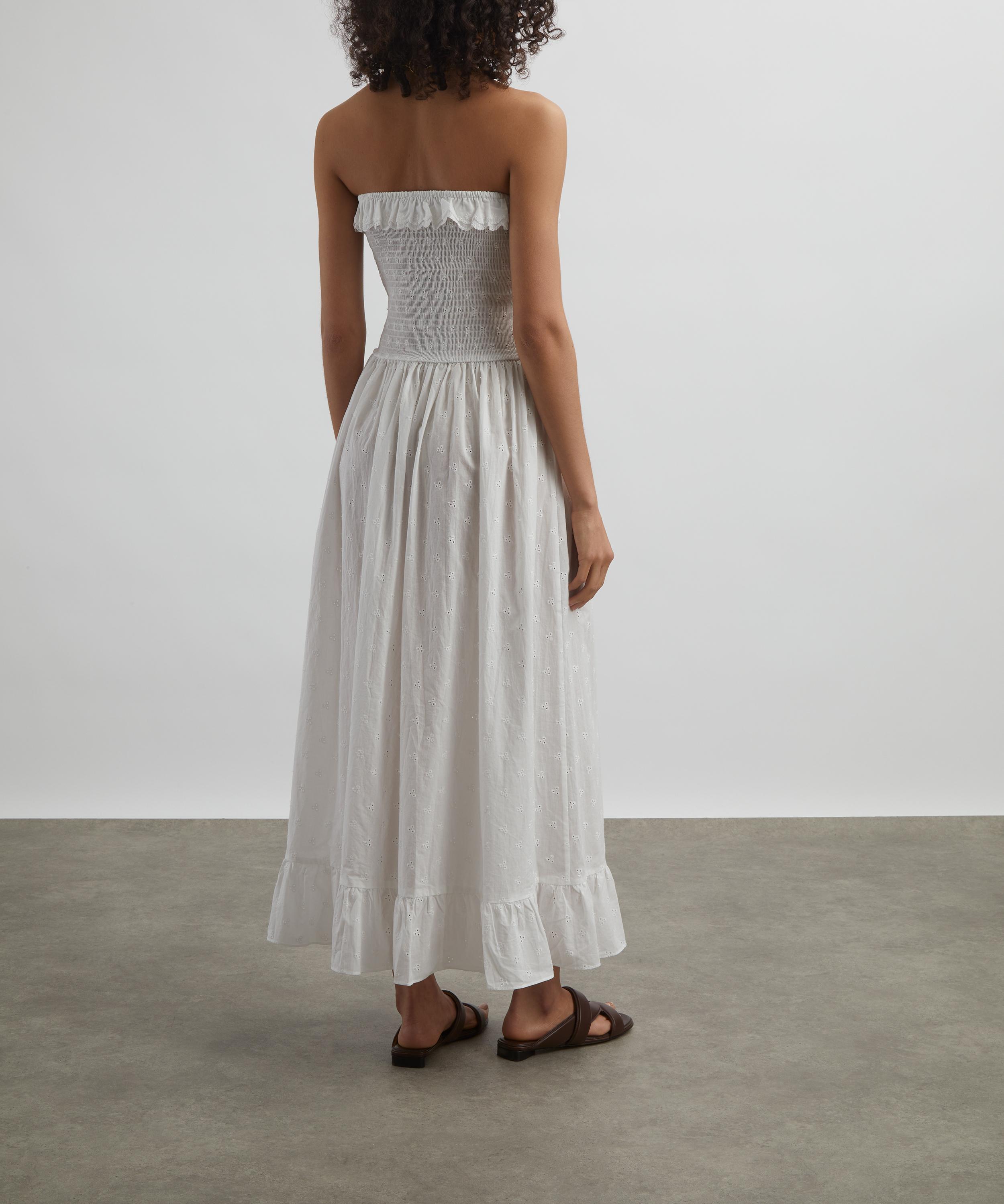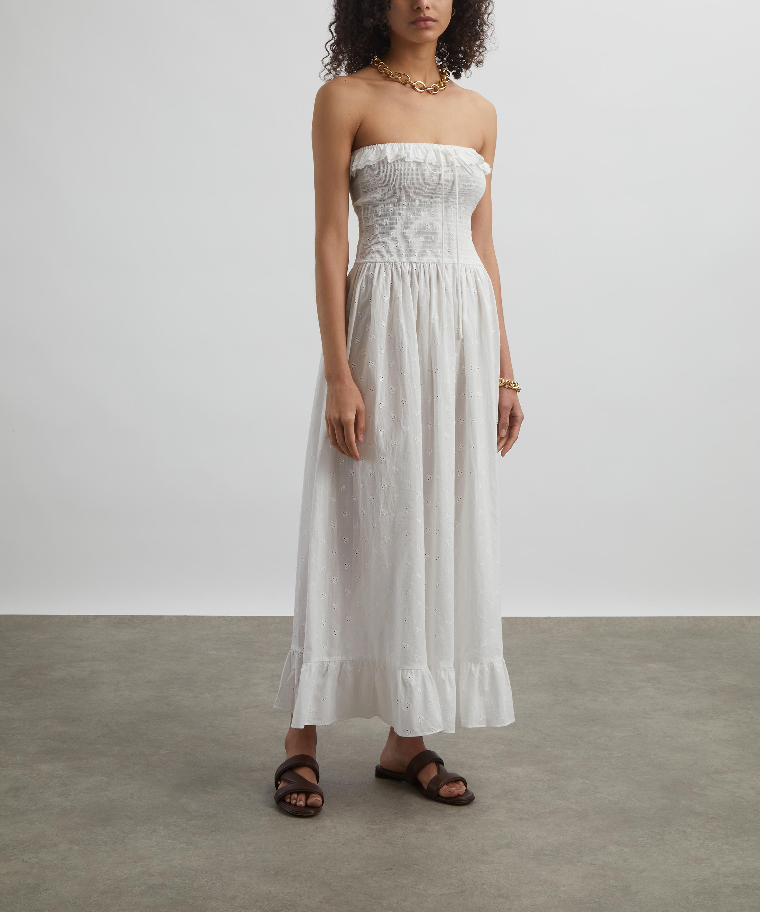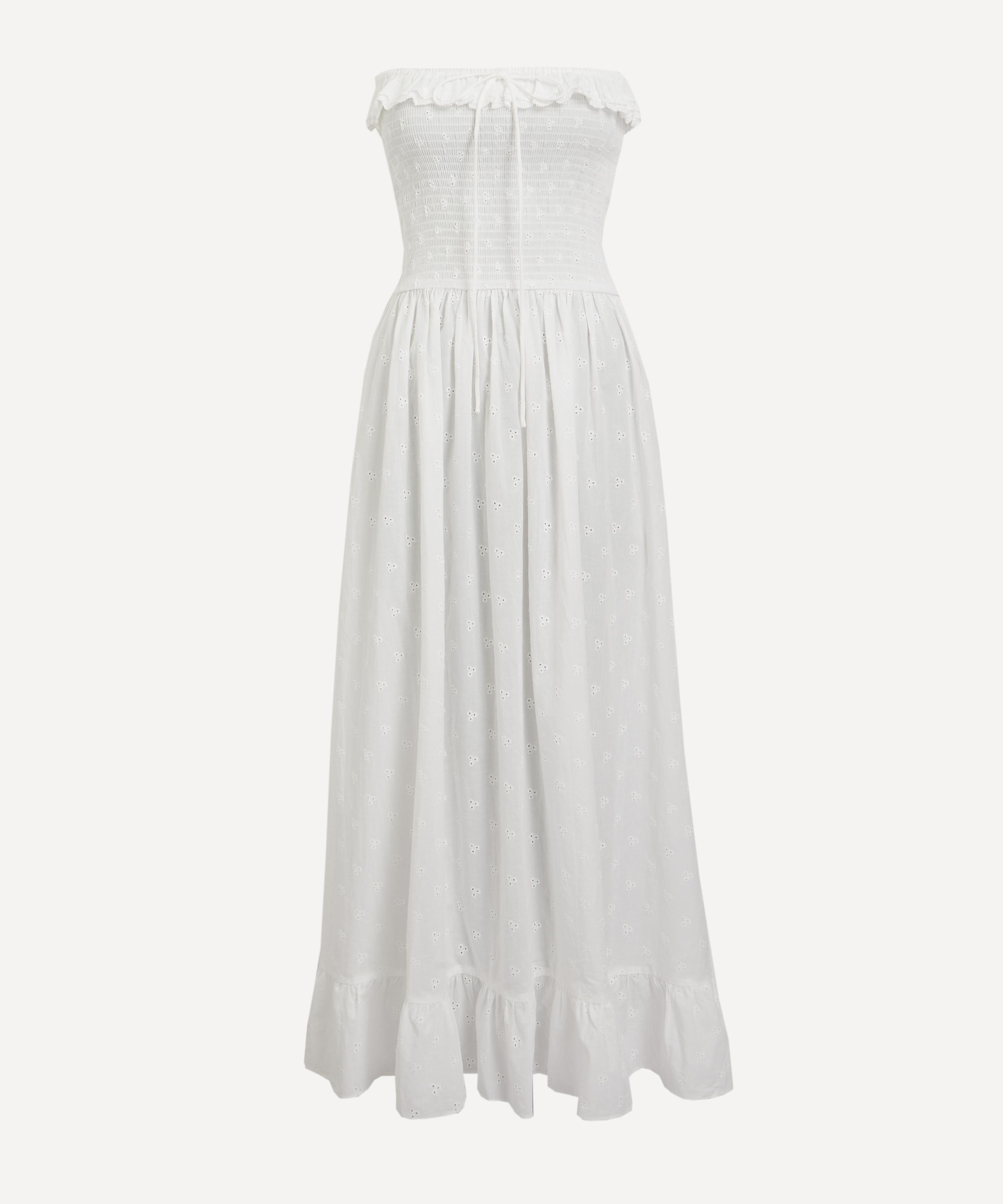 Made for the beach or city strolls on a summer’s day, the Nicole dress is the ultimate summer style with its shirred bandeau top and tiered skirt. Lightweight and easy to wear, it’s crafted from cotton voile eyelet fabric.